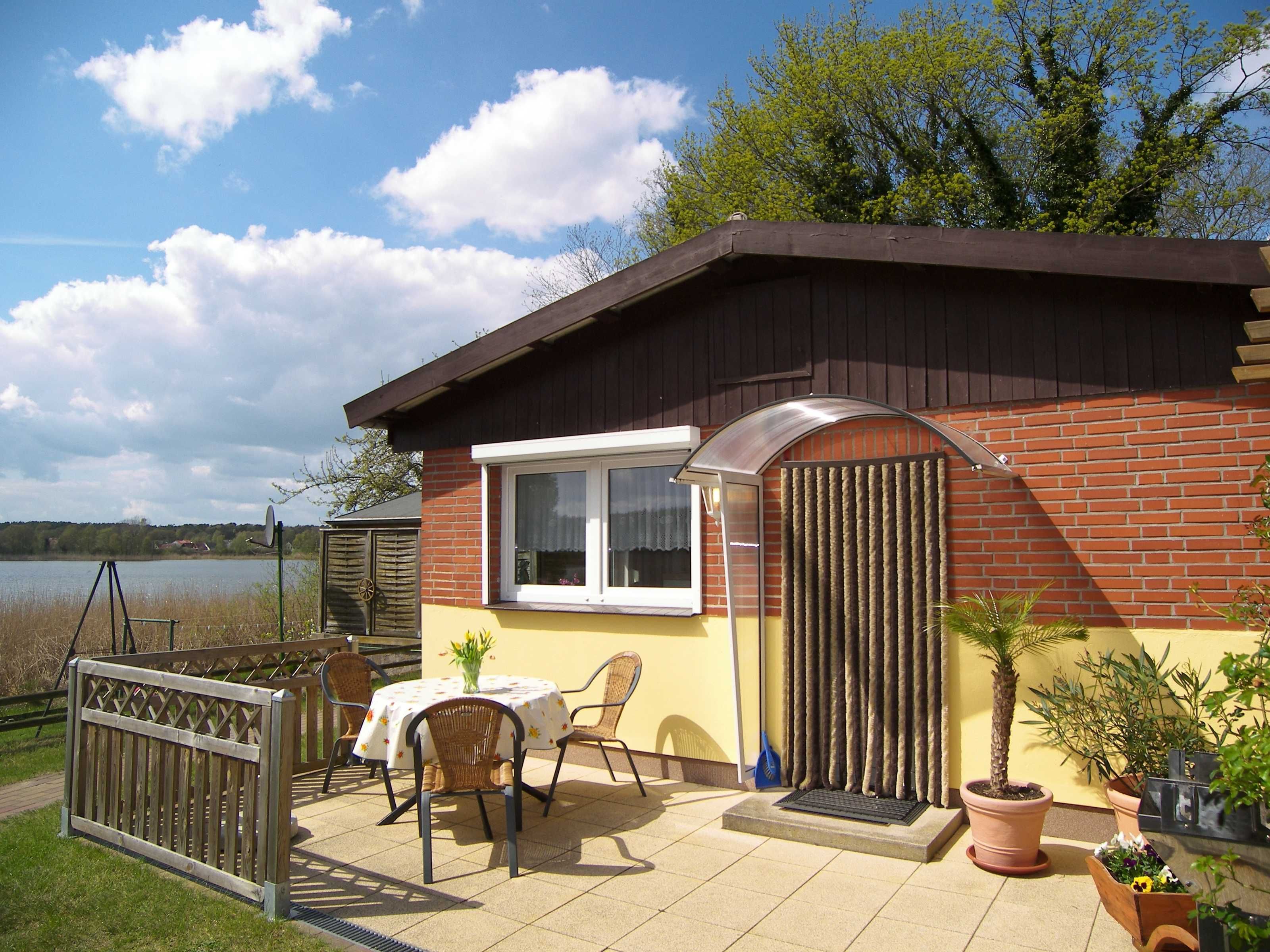 Von der möblierten Terrasse mit Grill, sehen Sie auf den traumhaften Kölpinsee.