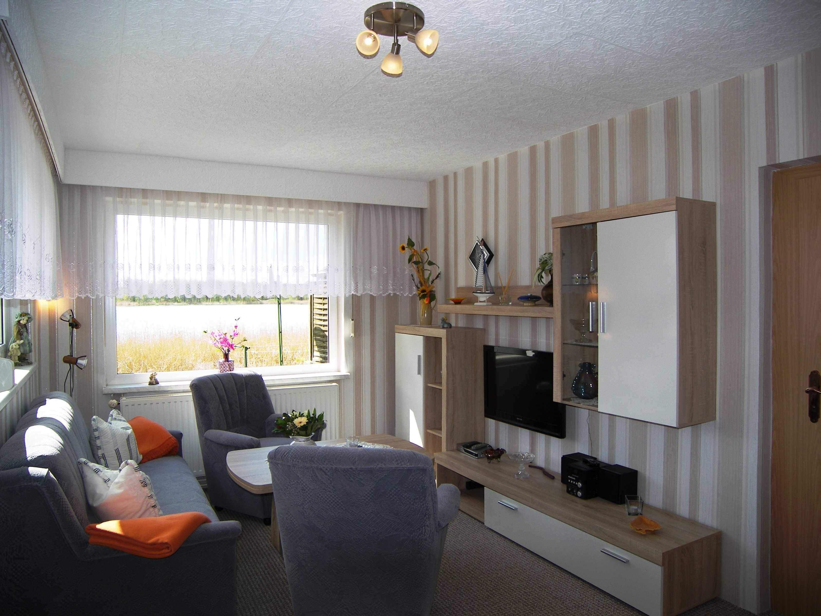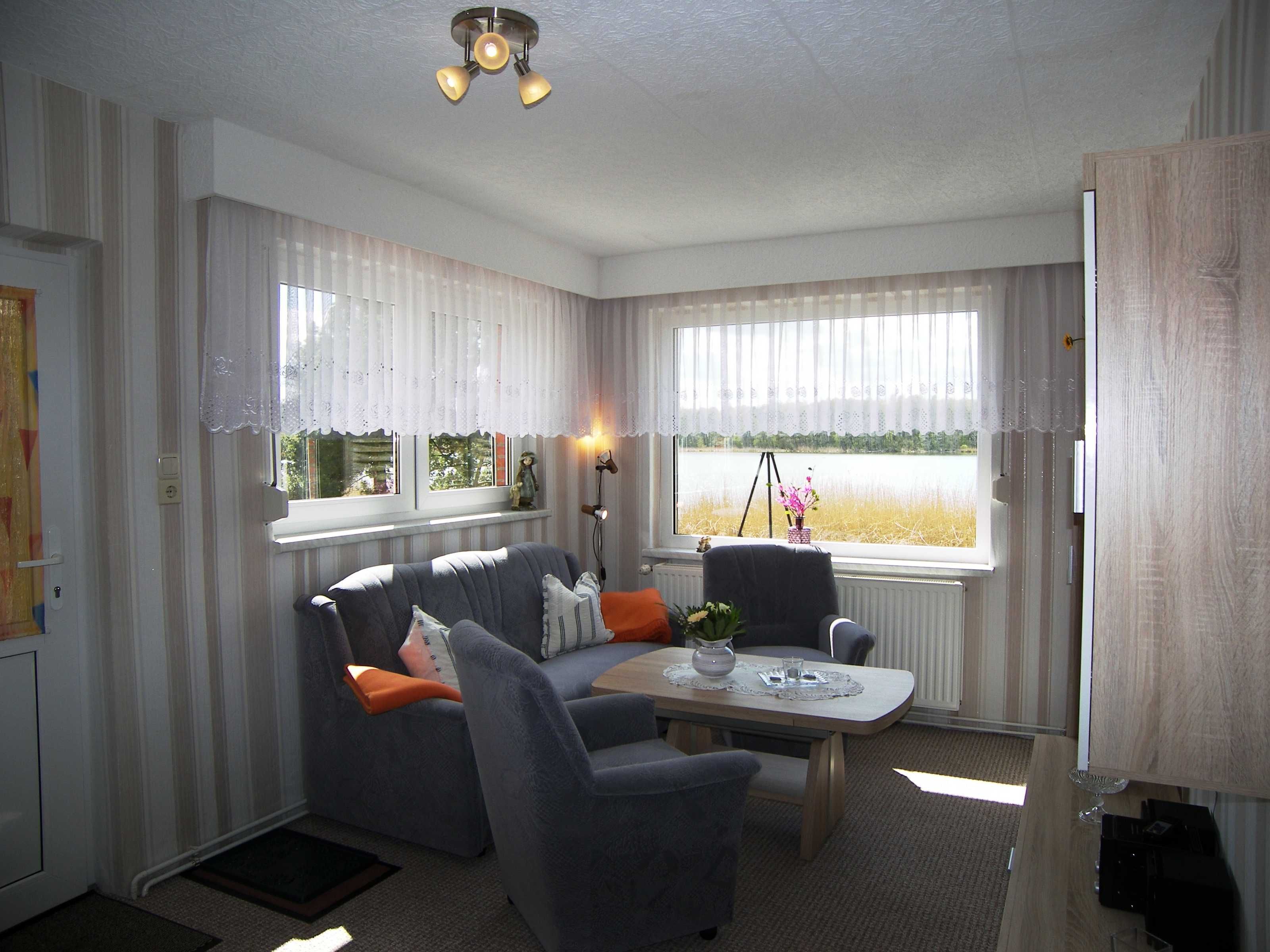 Das Ferienhaus liegt separat auf dem Grundstück der Vermieter und ist ca. 38 m² groß. Vom Wohnzimmer aus können Sie ebenfalls den Blick über den See genießen. Das Wohnzimmer ist ausgestattet mit einer Couchsitzecke, Wohnwand, Flachbildfernseher und Radio. Die offene Küche mit Mikrowelle, Kaffeemaschine, Toaster und Kapselkaffeemaschine integriert sich mit in den Wohnbereich. Das Schlafzimmer verfügt über ein Doppelbett und einen großen Kleiderschrank. Das Badezimmer ist mit einer Dusche ausgestattet. Die Bettwäsche ist bereits im Gesamtpreis enthalten. Handtücher sind bitte selbst mitzubringen. Diese werden nicht zur Verfügung gestellt.