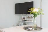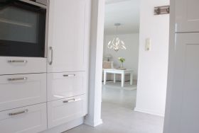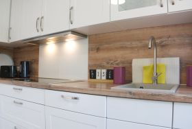 Die voll ausgestattete Küche bietet alles, was Sie für eine Selbstversorgung benötigen, inklusive Herd, Backofen, Kühlschrank, Spülmaschine und Kaffeemaschine. Im Wohnbereich sorgen eine bequeme Couch, ein Flachbild-TV und liebevoll ausgewählte Details für Wohlfühlatmosphäre.