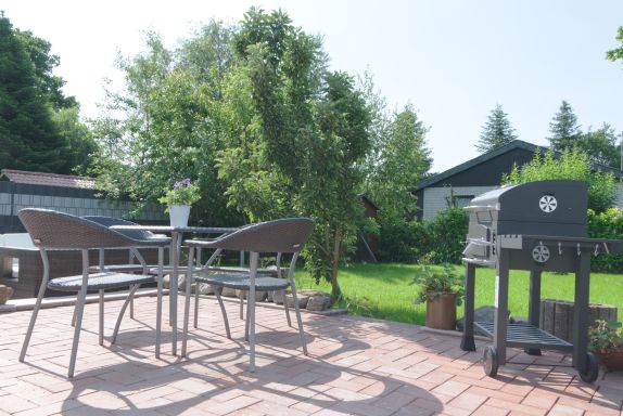 Der Außenbereich lädt mit einer großzügigen Terrasse und einer hochwertigen Lounge-Garnitur zum Entspannen ein. Hier können Sie grillen, lesen oder einfach die Ruhe genießen. Die Unterkunft ist nahezu barrierefrei gestaltet und auch für Rollstuhlfahrer geeignet. Insgesamt eignet sich das Haus ideal für Paare oder kleine Familien, die modernen Komfort und naturnahe Erholung verbinden möchten.