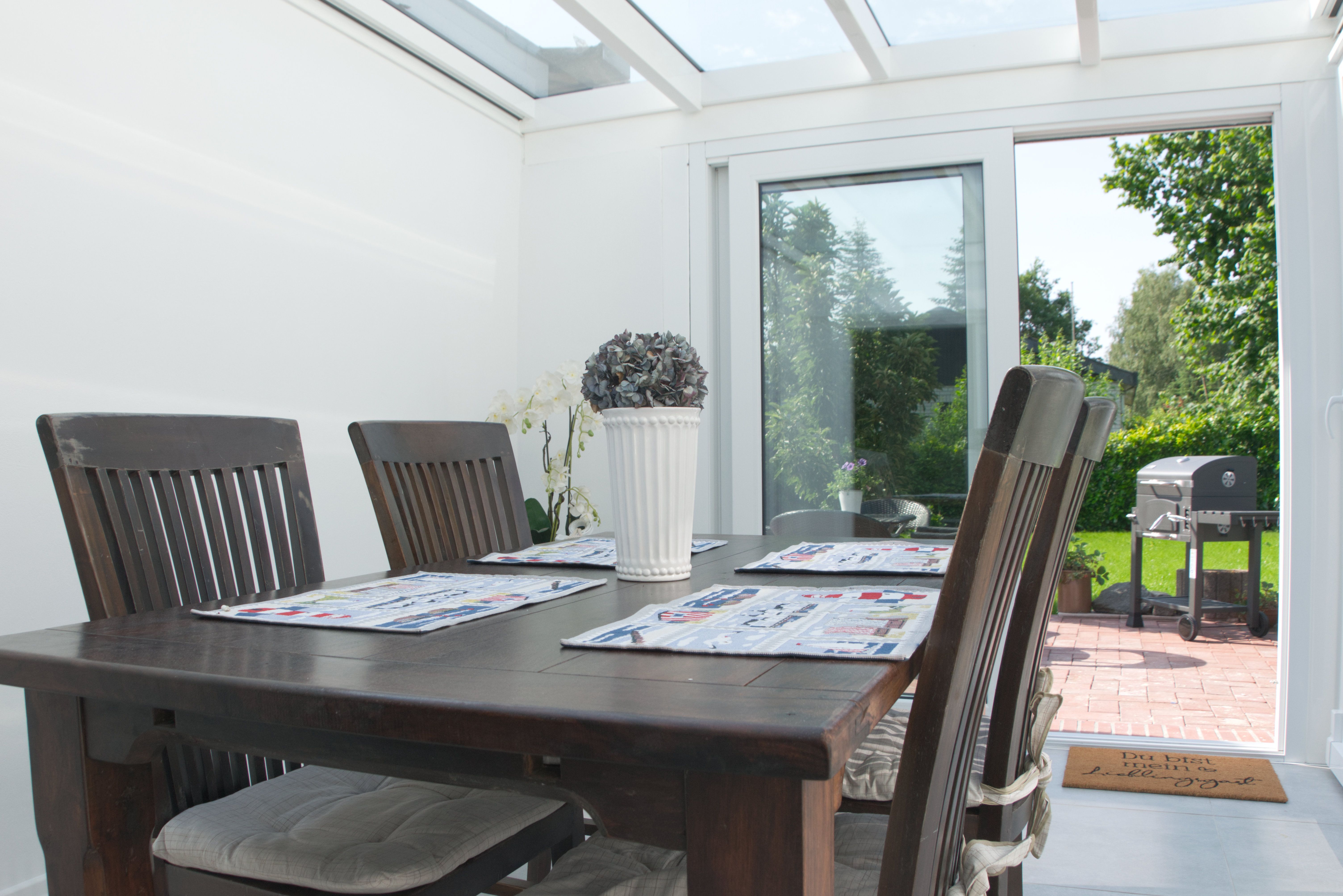 Die stilvoll eingerichtete Ferienunterkunft überzeugt mit einer durchdachten Raumaufteilung und hellen, modern gestalteten Wohnbereichen. Sie verfügt über ein separates Schlafzimmer mit komfortablem Doppelbett, einen offenen Wohn- und Essbereich sowie ein großzügiges Badezimmer mit bodengleicher Dusche. Ein besonderes Highlight ist der lichtdurchflutete Wintergarten mit Essbereich und direktem Zugang zur Terrasse – ideal für gemütliche Mahlzeiten bei jedem Wetter.