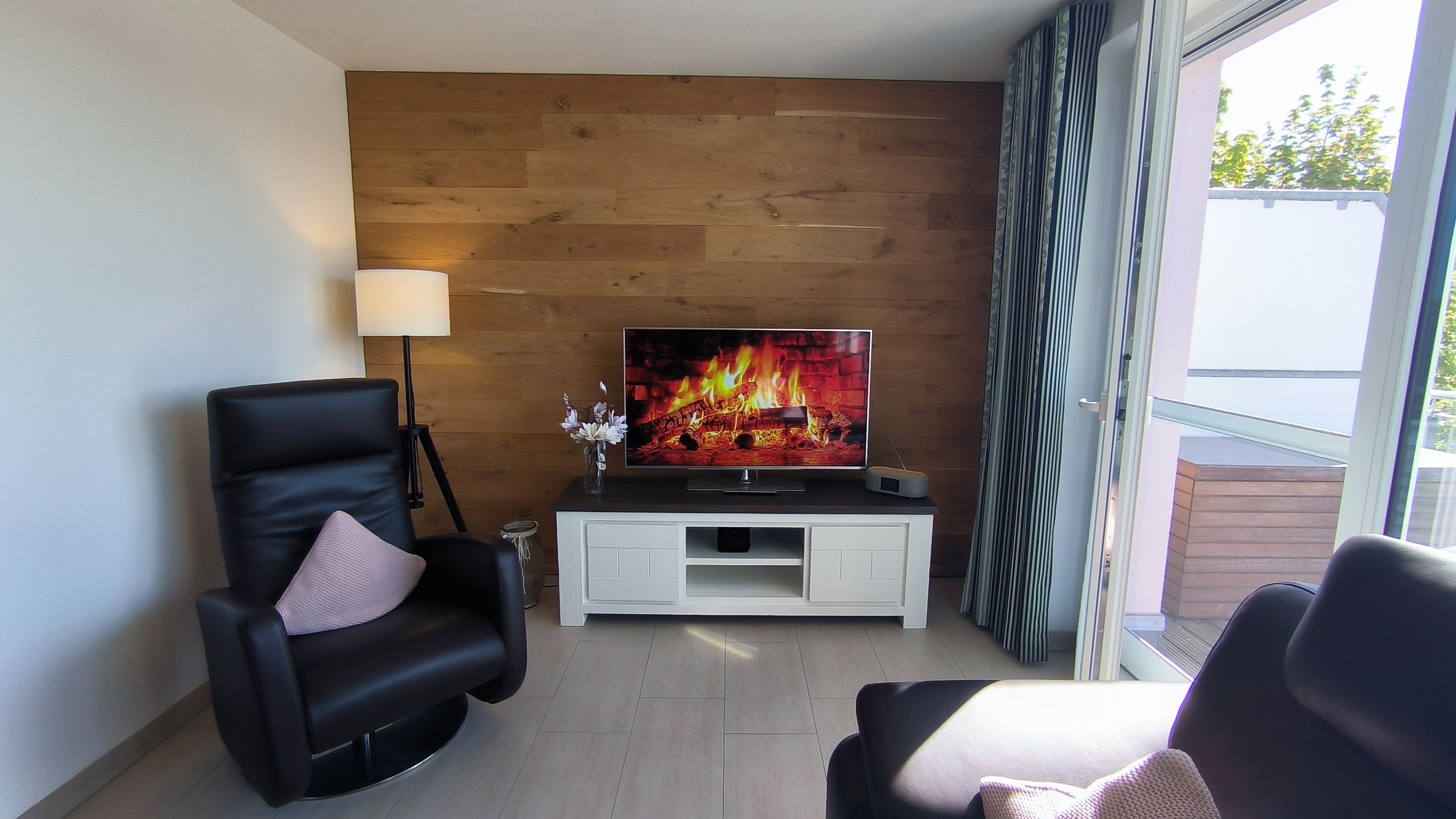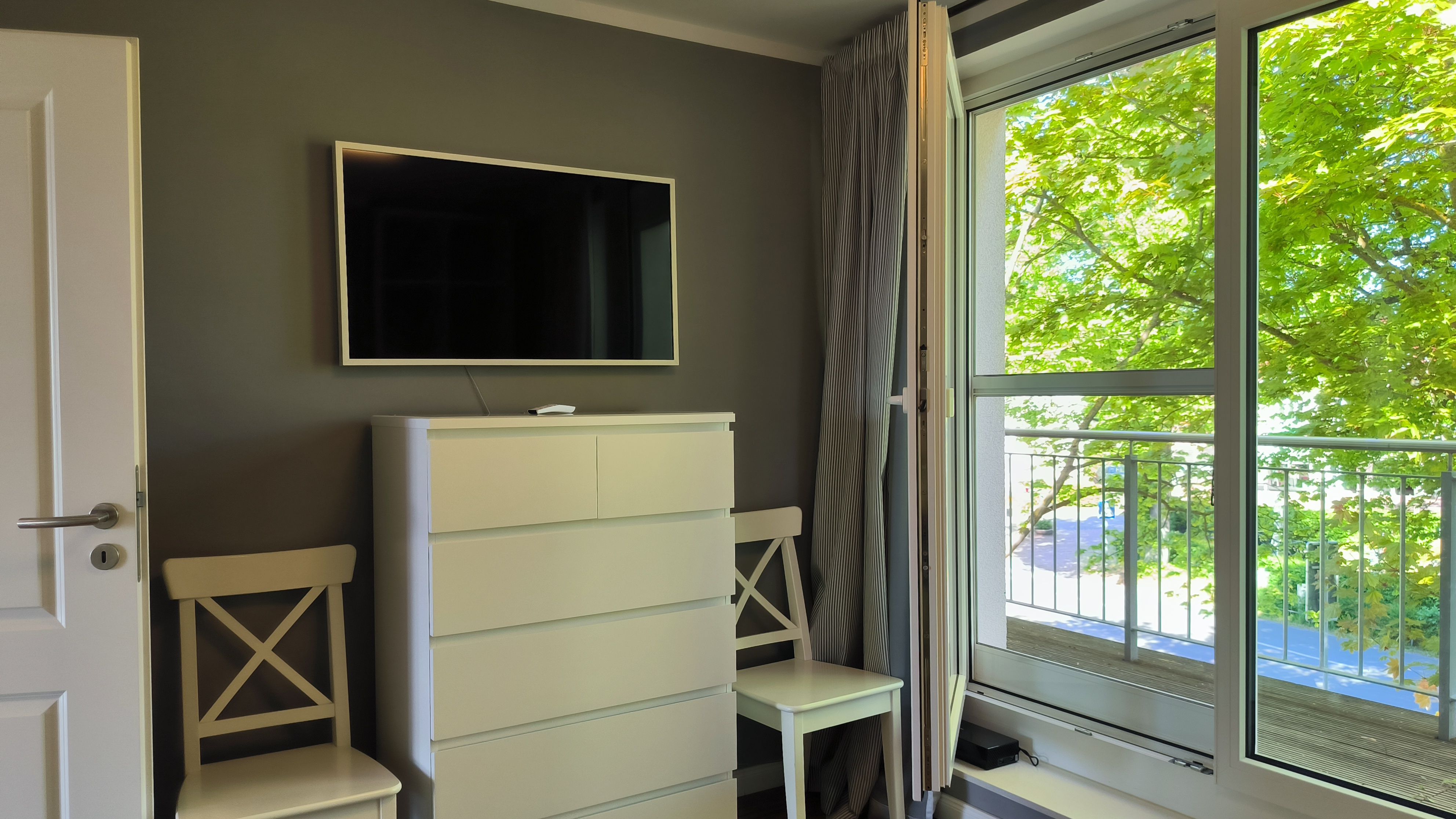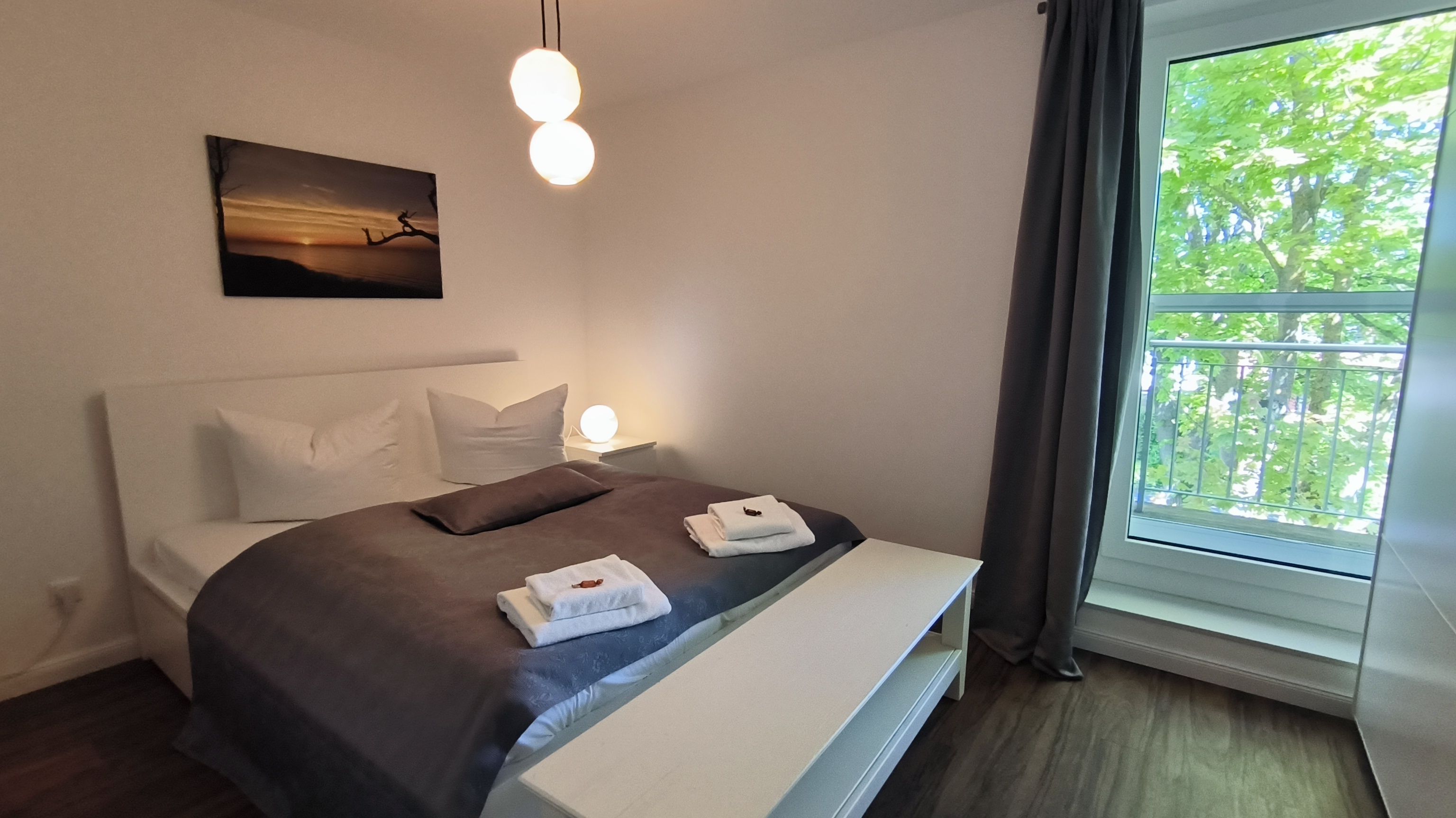Insgesamt 2 Balkone laden zum entspannen und frühstücken ein, wobei der Südbalkon mit kleinem Haffblick über eine Sitzgruppe verfügt.