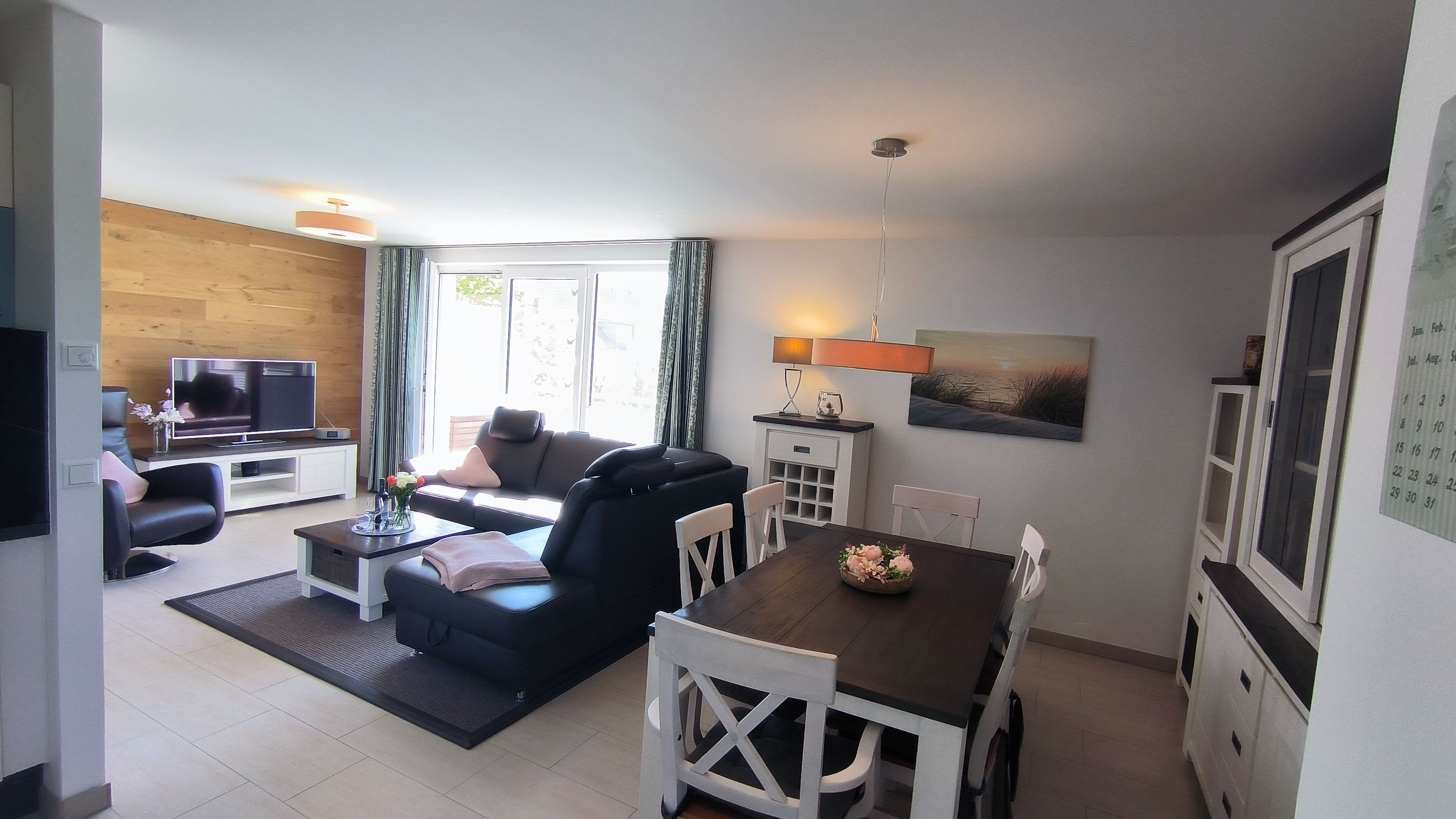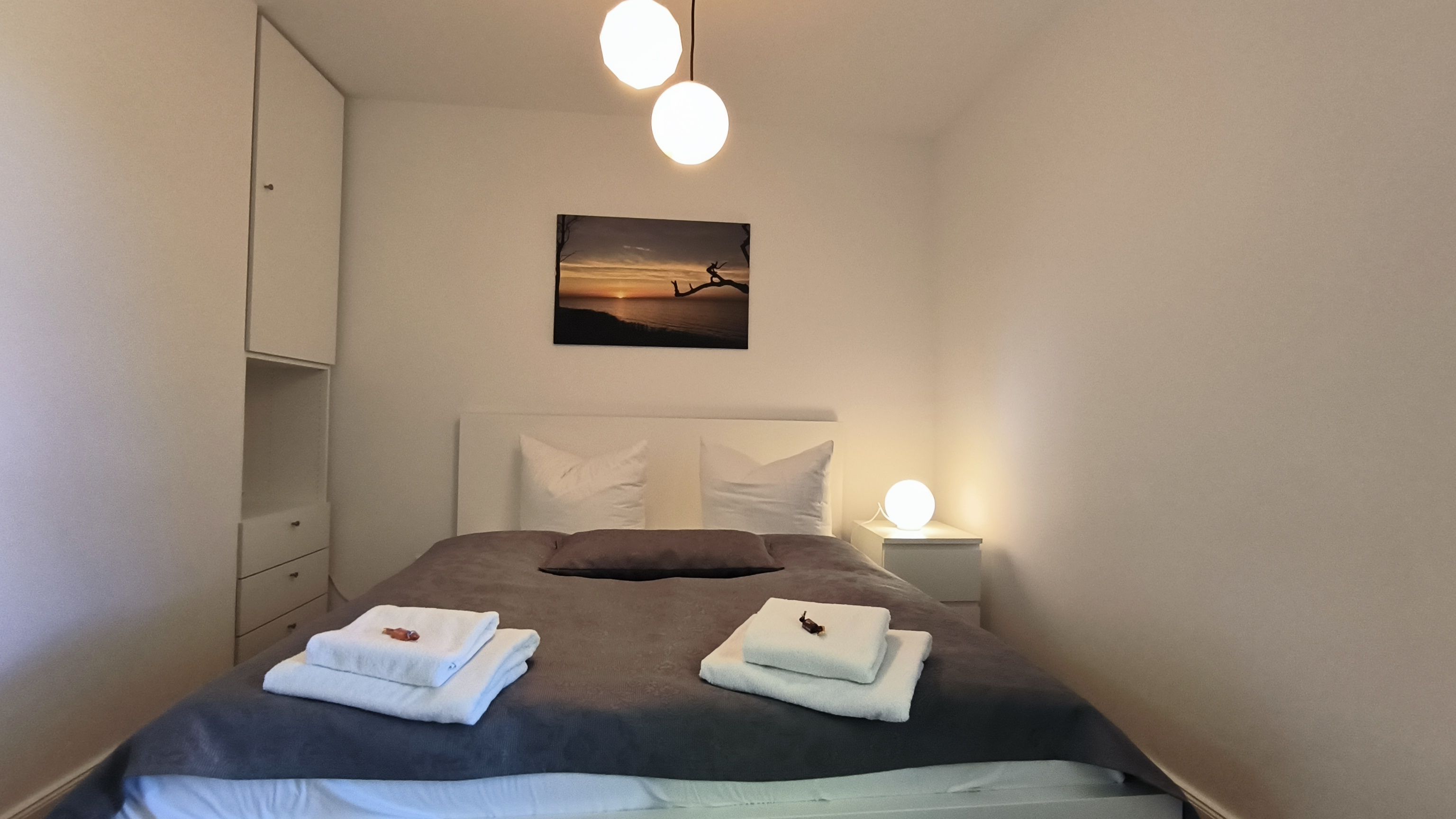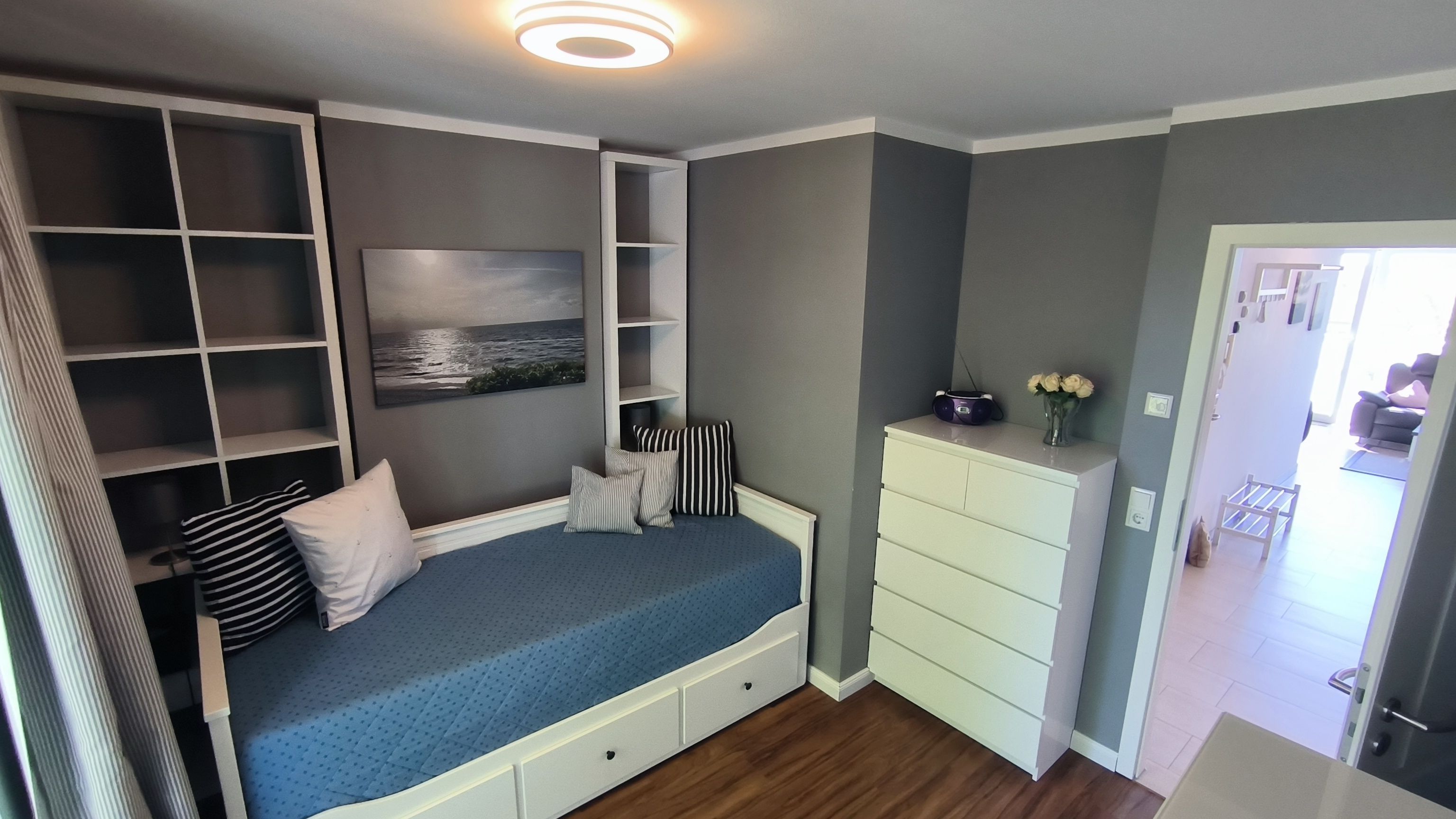 Die Wohnung verfügt über einen großzügigen Wohnbereich mit integrierter Küchenzeile sowie einem komfortablen Essbereich. Sie finden bei uns zwei helle, geräumige Schlafzimmer, die Platz für 2 bis maximal 4 Personen bieten. Ein Schlafzimmer verfügt über ein schönes, komfortables Doppelbett (160x200m). Das andere Schlafzimmer über ein Einzelbett (80x200m), mit einer Ausziehfunktion auf 160x200m.