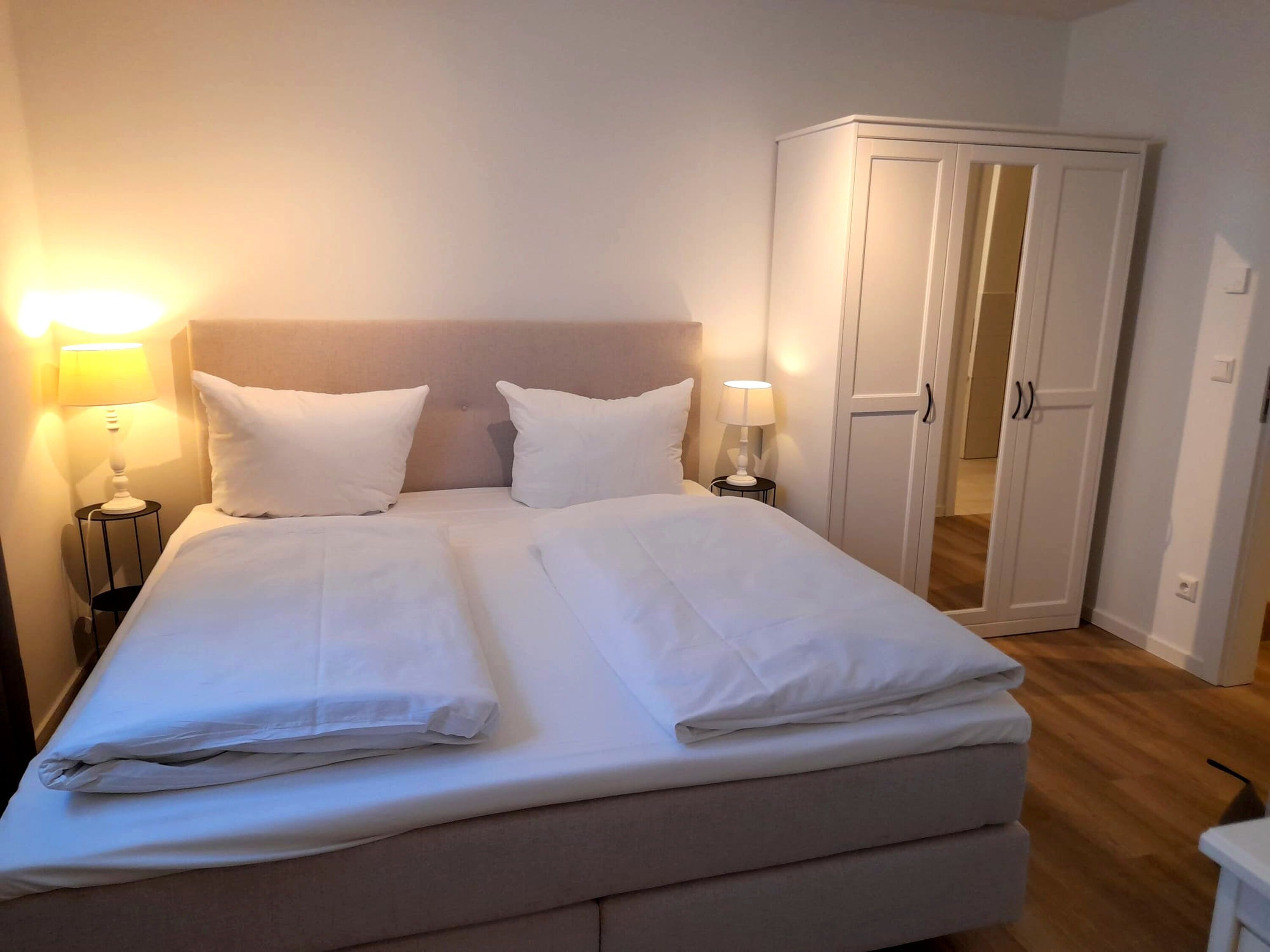Die Ausstattung der Wohnung umfasst unter anderem eine Fahrradabstellmöglichkeit sowie einen Parkplatz direkt am Objekt. Außerdem steht unseren Gästen WLAN / Internet zur Verfügung. Für die Zubereitung von Kaffee sind eine Filterkaffeemaschine sowie eine Pad- / Kapsel-Kaffeemaschine vorhanden. Auch eine Mikrowelle, ein Geschirrspüler, ein Wäschetrockner und eine Waschmaschine gehören zur Ausstattung.