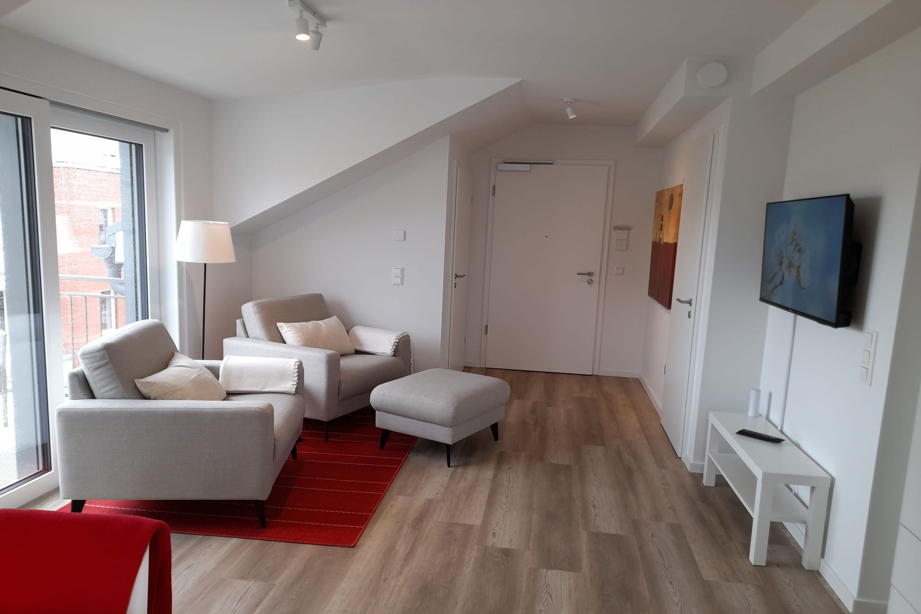 Mit 48 Quadratmetern bietet diese Wohnung ausreichend Platz für zwei Personen ideal für ein Paar, das Ruhe und Entspannung sucht. Der südwestlich ausgerichtete Balkon ist der perfekte Rückzugsort, um die Sonne zu genießen und den Tag bei einem guten Buch oder einem Glas Wein ausklingen zu lassen. Innen erwartet Sie eine moderne und stilvolle Ausstattung, die für Gemütlichkeit und Komfort sorgt. Die Fußbodenheizung sorgt für behagliche Wärme, und das effiziente Lüftungssystem garantiert stets frische Luft und ein angenehmes Raumklima.
