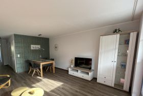 Genießen Sie eine Auszeit in unserer gemütlichen, modern eingerichteten Möwenkoje in unmittelbarer Nähe zum langen Sandstrand von Boltenhagen. Die Ferienwohnung befindet sich im Erdgeschoss in einem ruhig gelegenen Haus in Sackgassenlage. Vom Wohn- und Essbereich gelangen Sie auf die sonnige Süd-West-Terrasse, auf der Sie sichtgeschützt durch eine grüne Hecke Ihren Kaffee genießen können. Die Wohnung verfügt über ein separates Schlafzimmer mit zwei Einzelbetten, die einfach und bequem mit einem Schaumstoffkeil problemlos zu einem großen Bett umfunktioniert werden können. Weitere Schlafplätze bietet ein großes, ausziehbares Schlafsofa im Wohnbereich mit einer Liegefläche von 140 cm x 200 cm. Die vollausgestattete Küche sowie ein großzügiges Duschbad lassen keine Wünsche offen. Alle Fenster haben verstellbare Plissees. Für die bequeme Anreise haben Sie einen PKW-Stellplatz direkt vor der Haustür. Ihre Fahrräder können entweder ebenfalls vor der Haustür oder sogar im abschließbaren Keller abgestellt werden. Hier befinden sich zudem Waschmaschine sowie Trockner (gegen eine kleine Gebühr). Sie können entscheiden, ob Sie zu einem Spaziergang zum 250 m entfernten Sandstrand, zum nahgelegenen Wald, zur Steilküste oder zum Bummeln in die Ostseeallee Boltehagen aufbrechen. Einkaufsmöglichkeiten sind ebenfalls fußläufig in wenigen Minuten zu erreichen.