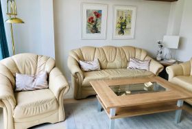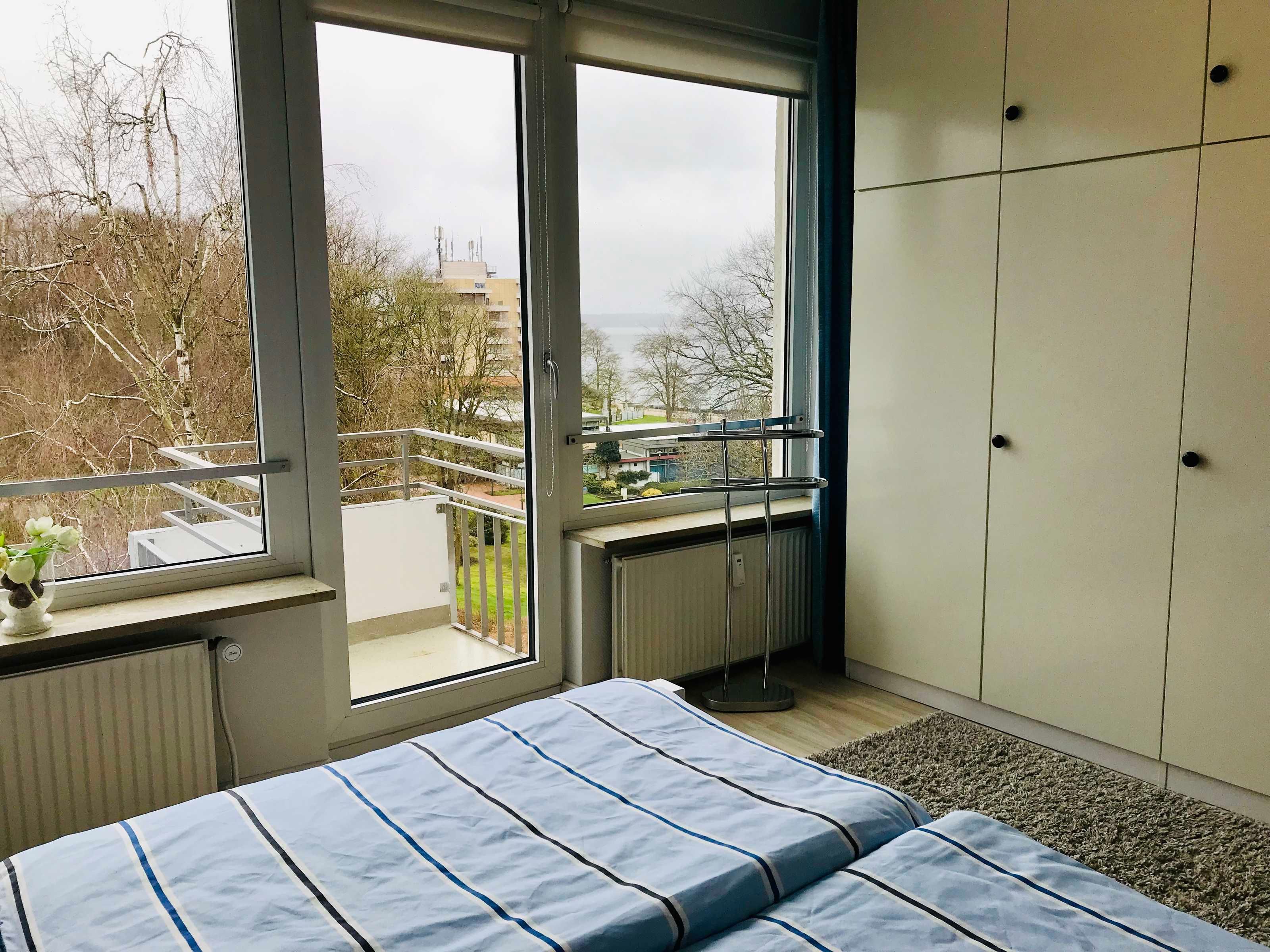 Die helle und neu renovierte 3-Zimmer-Ferienwohnung mit Meerblick befindet sich im zentral gelegen ehemaligen Kurparkhotel in Glücksburg. Die 52m² große Wohnung ist im 4. Stockwerk und verfügt über zwei Schlaf- und ein Wohnzimmer, zwei französische Balkone mit Ostseeblick , eine voll ausgestattete Küche sowie ein modernes Duschbad.