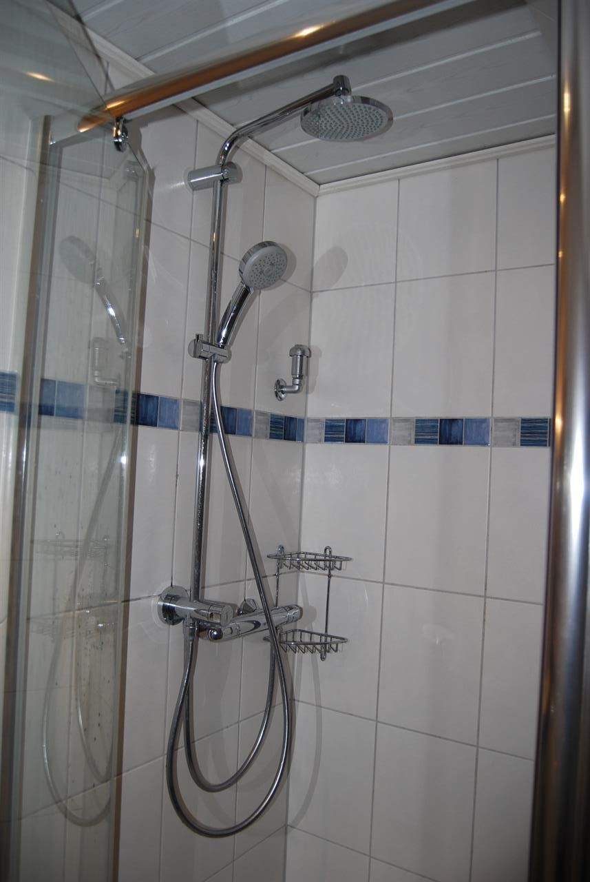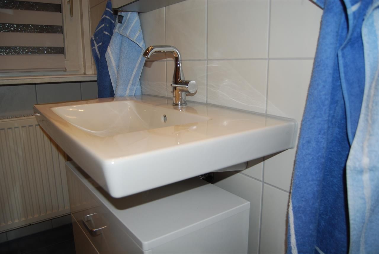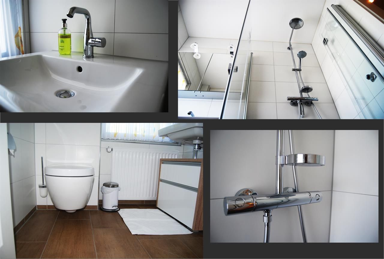 Das Badezimmer wurde in 2017 renoviert und verfügt über eine Premium Grohe-Regendusche (Glaswand mit Keramik Duschwanne), edlem V&B Hänge-WC und einen Premium-Waschtisch von V&B mit hochwertiger Grohe Armatur.