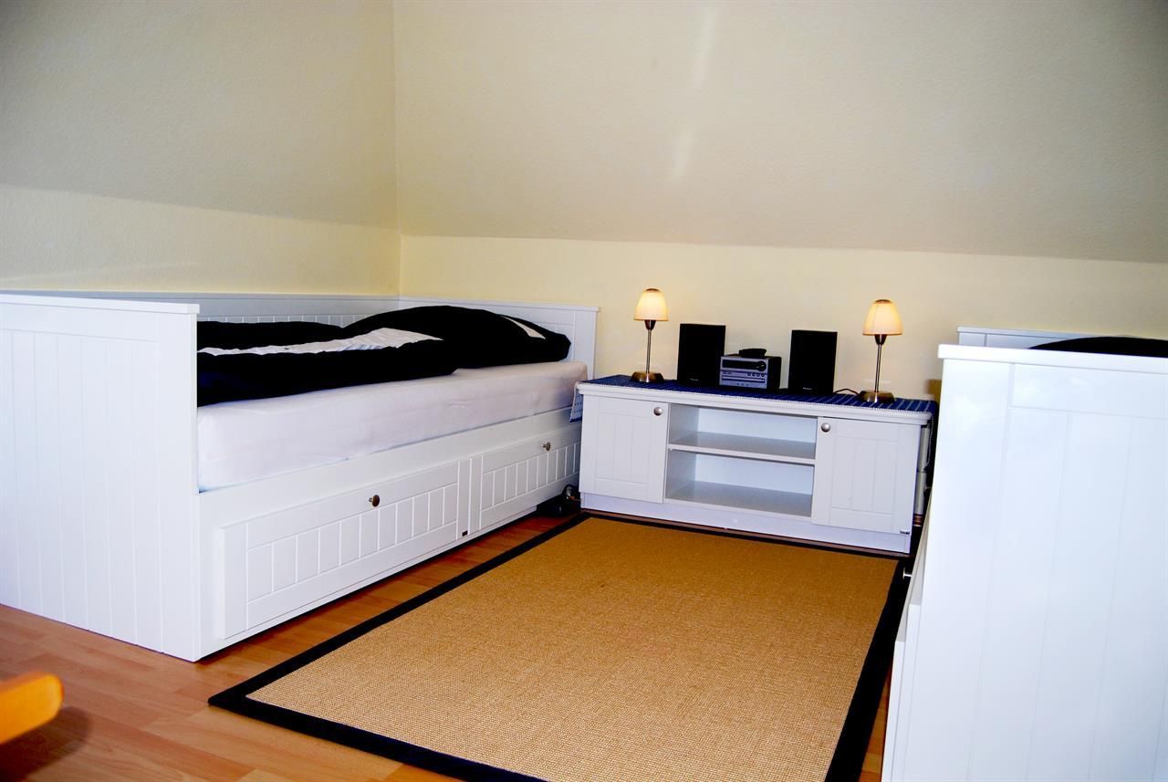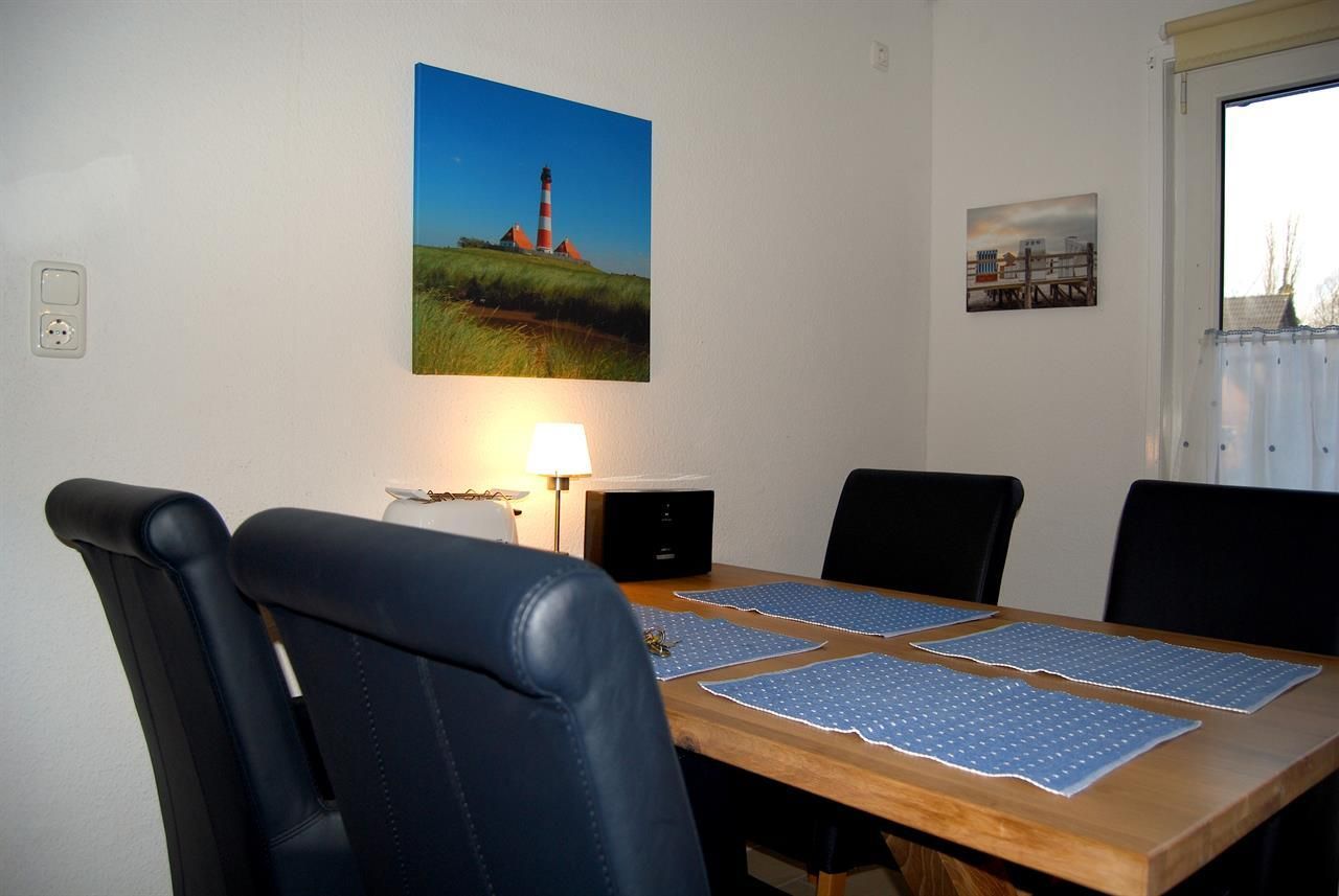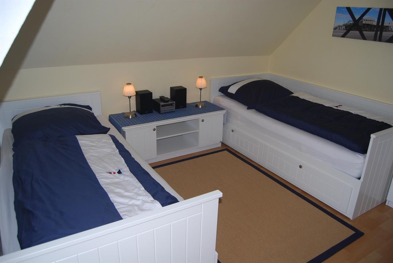 Unsere Obergeschoss-Wohnung ist einfach klasse. 75 qm für bis zu 4 Personen, 2 Schlafzimmer, eine nagelneue Einbauküche mit Granitarbeitsplatte und edlem Essplatz in Buche und Leder. Machen Sie es sich im modernen Wohnzimmer auf der Leder-Sitzgruppe bequem. Schauen Sie HD-Fernsehen mit vielen Kabelkanälen oder spielen Sie Brettspiele mit Ihren Kindern. Wenn das Wetter schön ist, können Sie auf dem grossen Balkon frühstücken oder abends auf dem edlen Weber-Kugelgrill grillen. Oder Sie geniessen dort ein Gläschen im Strandkorb und schauen in die Weite. Das Kinder-Schlafzimmer ist super gemütlich, hat 2 hochwertige Einzelbetten und einen schönen Kleiderschrank, alles in Weiss. Hochwertige Vossen-Handtücher und Irisette-Bettbezüge lassen keine Wünsche offen. Die Dekoration orientiert sich an dem Ambiente des Nordens und der Nordsee.