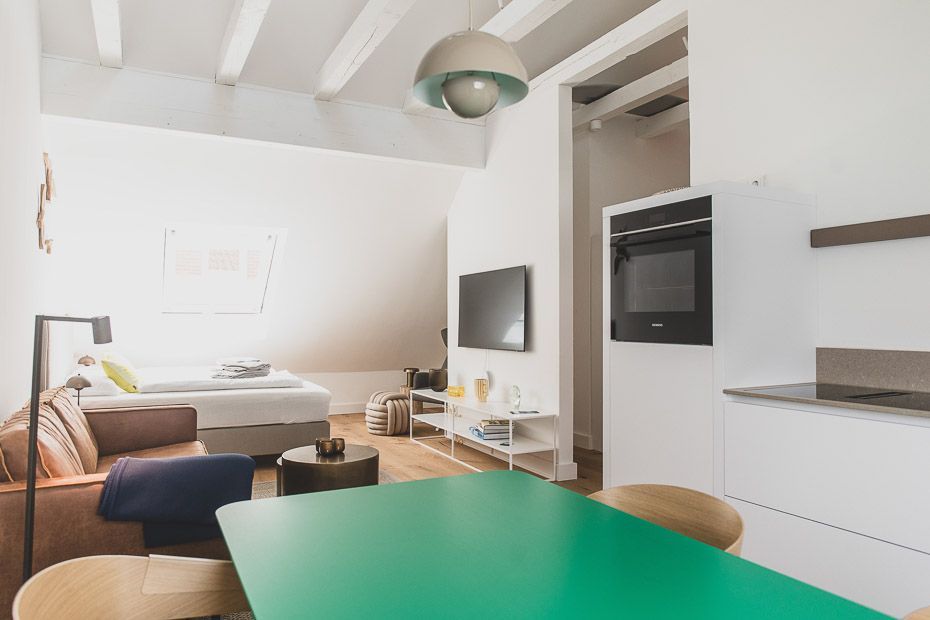 Wohn- und Schlafraum mit integriertem Küchenbereich