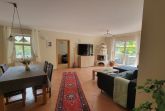 Großer Wohnbereich mit gemütlichem Kamin, TV, Radio sowie einer stilvollen Sitz- und Essecke