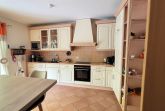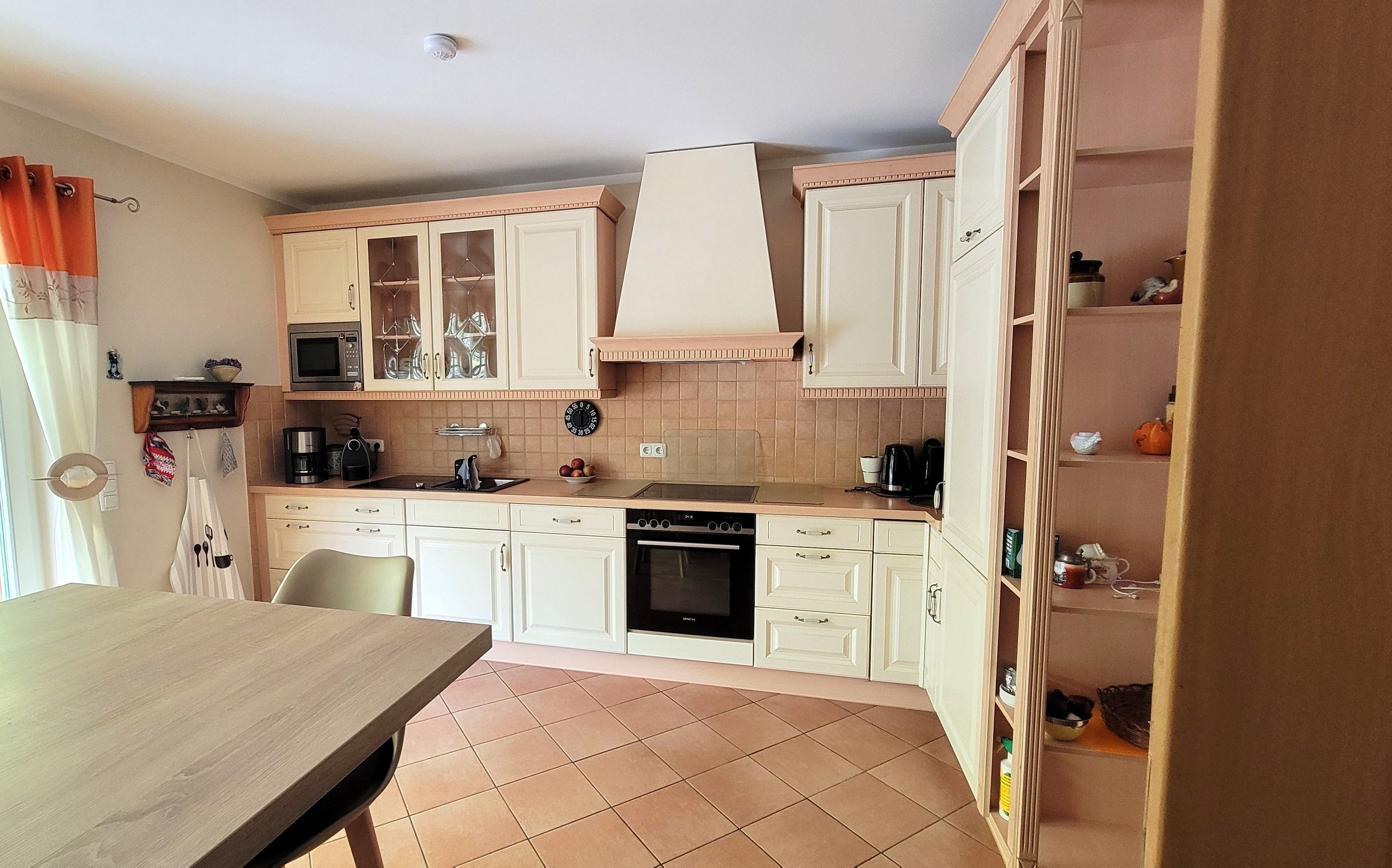 Moderne Landhausküche mit Esstresen, Geschirrspüler, Backofen, Mikrowelle, Kühl-Gefrierschrank u.v.m.