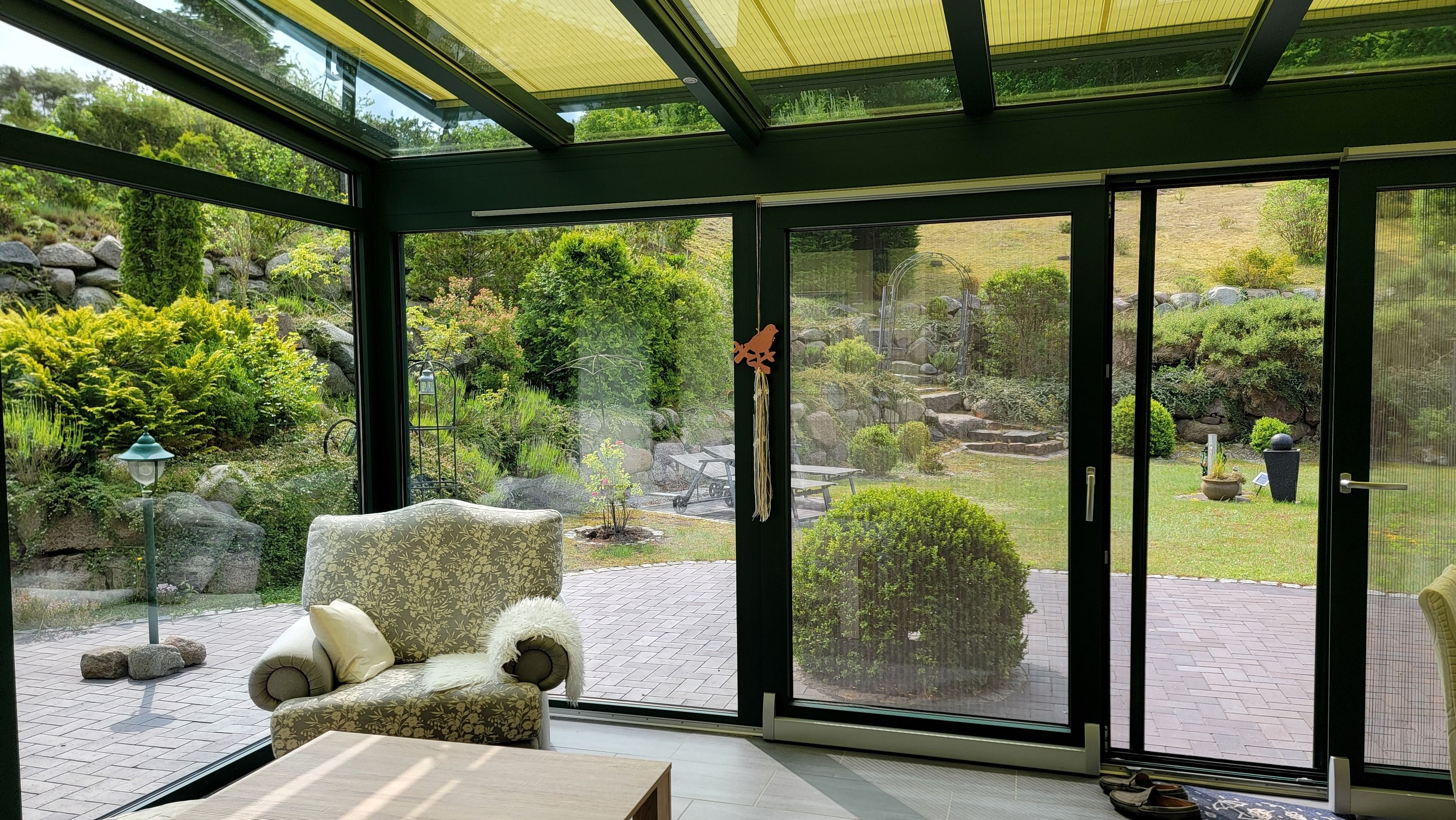 Wintergarten mit zweitem Essbereich und automatischer Beschattung – ideal bei jedem Wetter