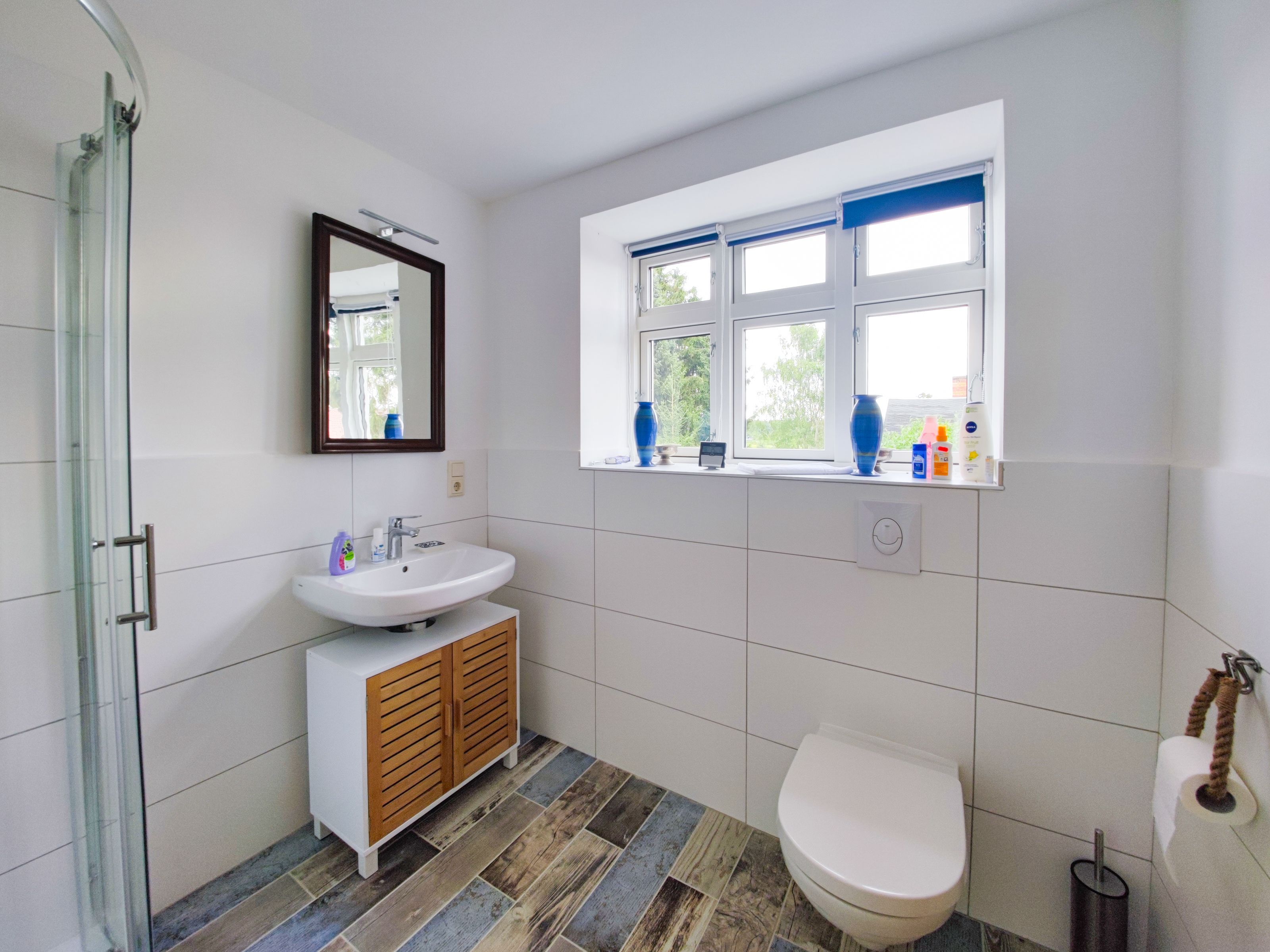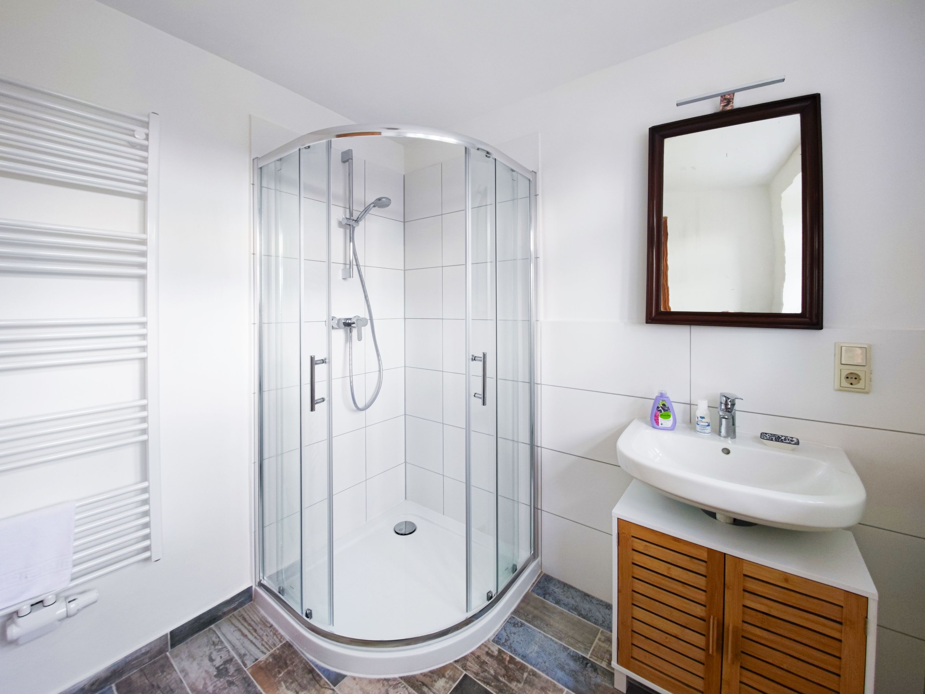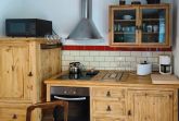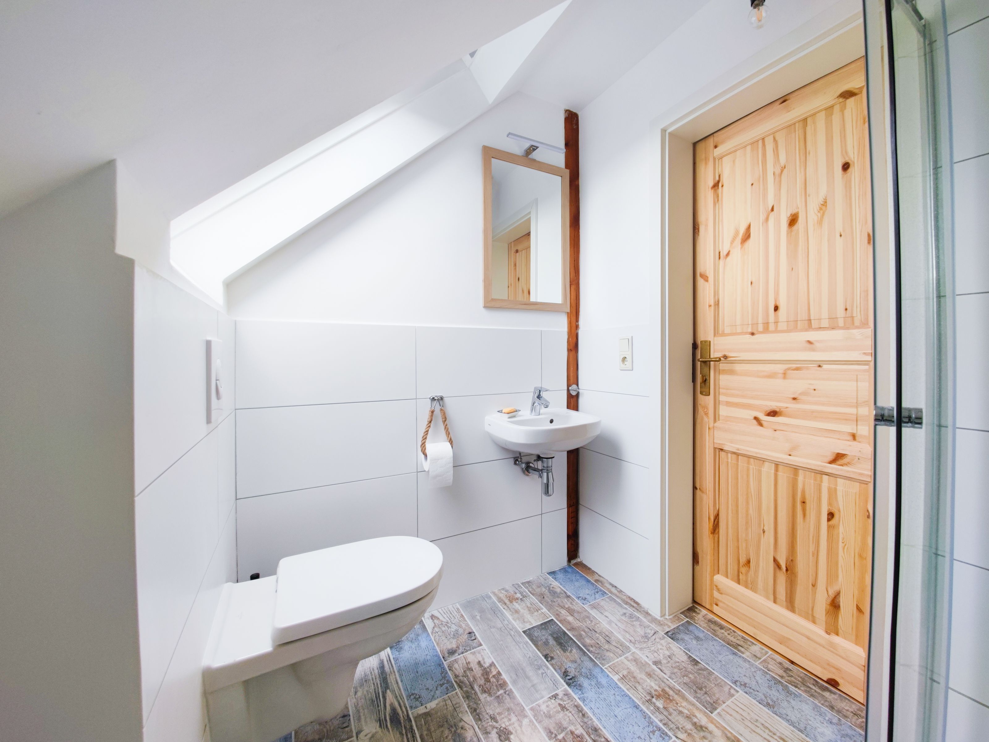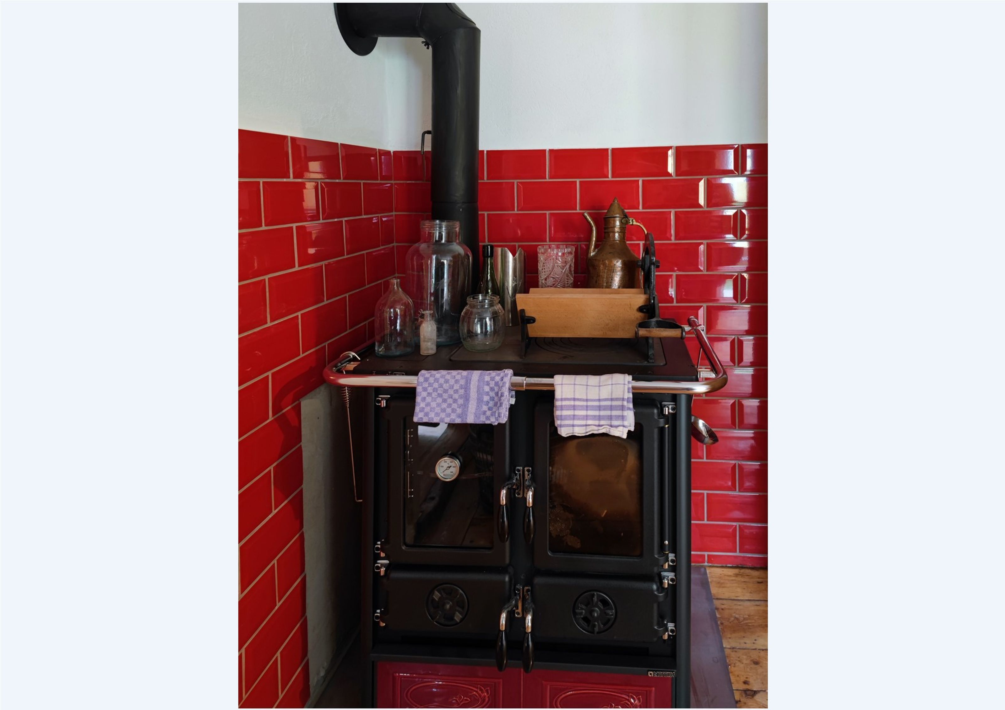 Im Erdgeschoss erwartet Sie eine voll ausgestattete Küche mit rustikalem Kochofen, ein behagliches Wohnzimmer mit Kachelofen und ein Badezimmer mit Dusche, WC sowie Waschmaschine. Eine steile Holztreppe (bitte beachten Sie, dass diese nicht für Kleinkinder geeignet ist) führt in das Obergeschoss, wo sich zwei Schlafzimmer mit jeweils einem Doppelbett und ein weiteres Badezimmer mit Dusche und WC befinden.