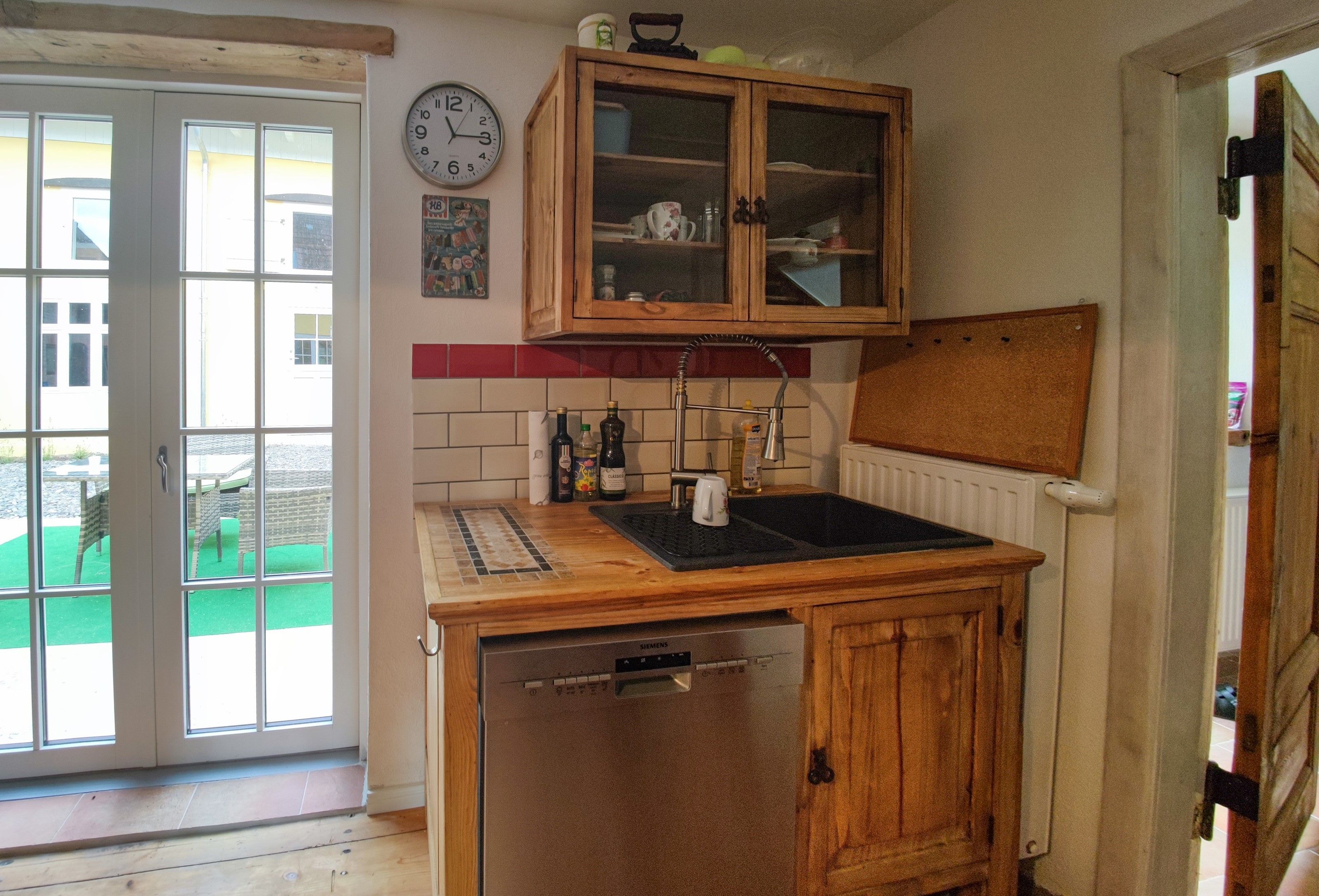 Das Haus verfügt über zwei Schlafzimmer, zwei Badezimmer, eine Küche und ein Wohnzimmer, welche über zwei Etagen verteilt sind. Es ist liebevoll mit Vollholzmöbeln und Antiquitäten eingerichtet.