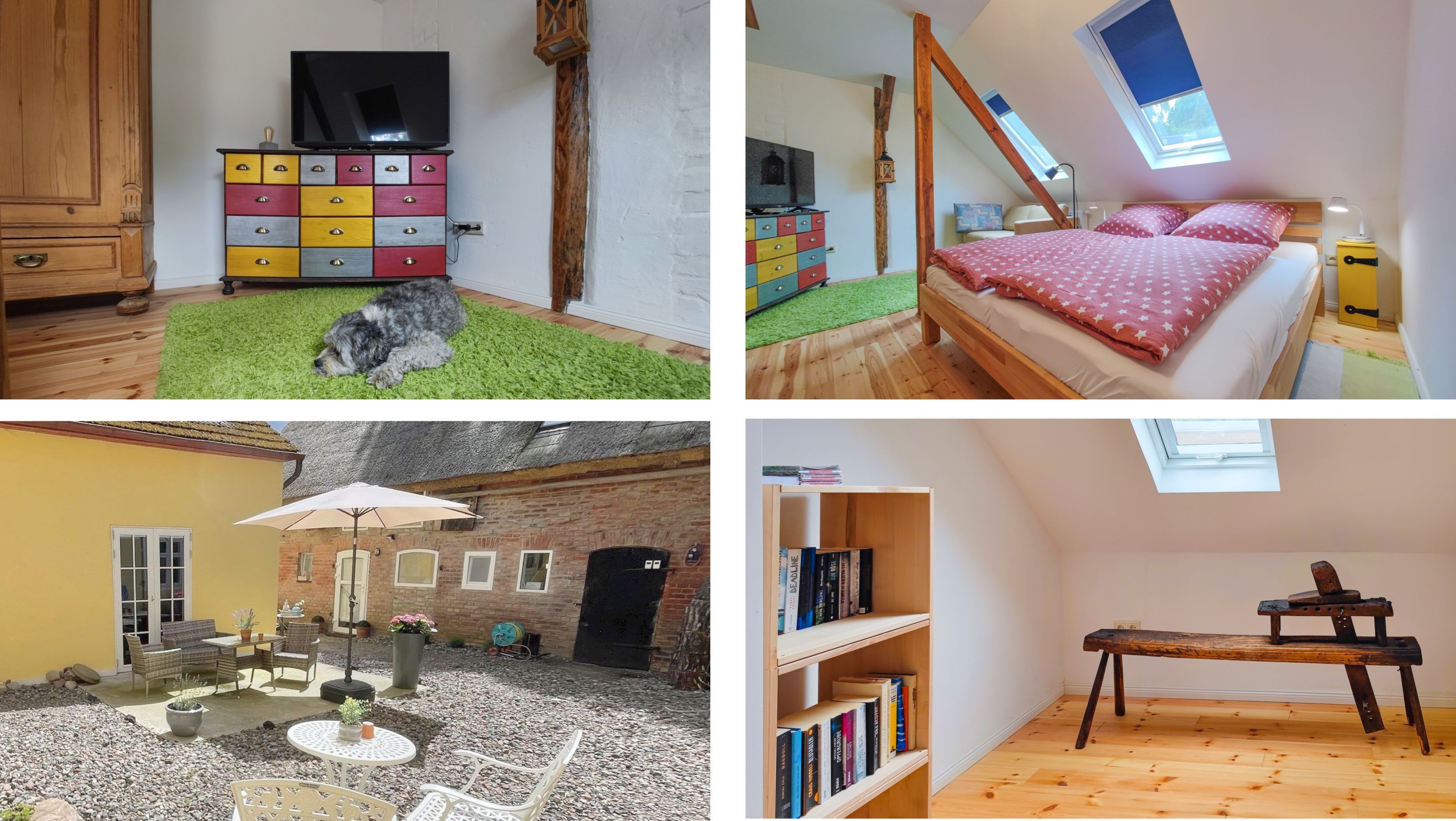Die Ferienhäuser können einzeln gemietet werden: Ellas Gehöft und Antons Remise bieten Platz für jeweils 4 Personen, Vincents Scheune für 3 Personen. Für größere Gruppen oder Familien besteht die Möglichkeit, alle drei Häuser gemeinsam zu buchen.