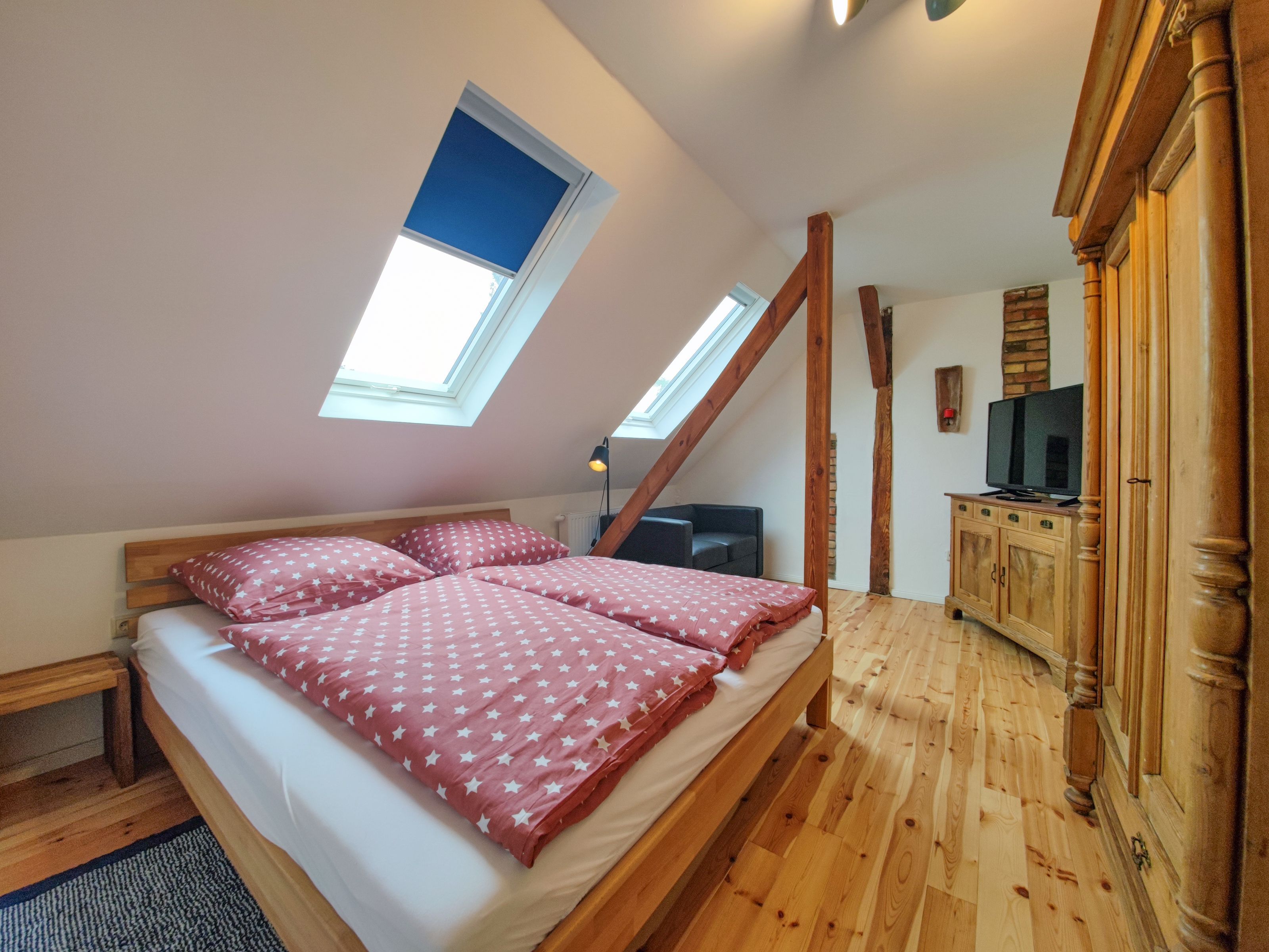 „Ellas Gehöft“ ist das vordere Haus des charmant sanierten Vierkanthofs und bietet auf zwei Etagen ein gemütliches Zuhause für Ihre Auszeit.