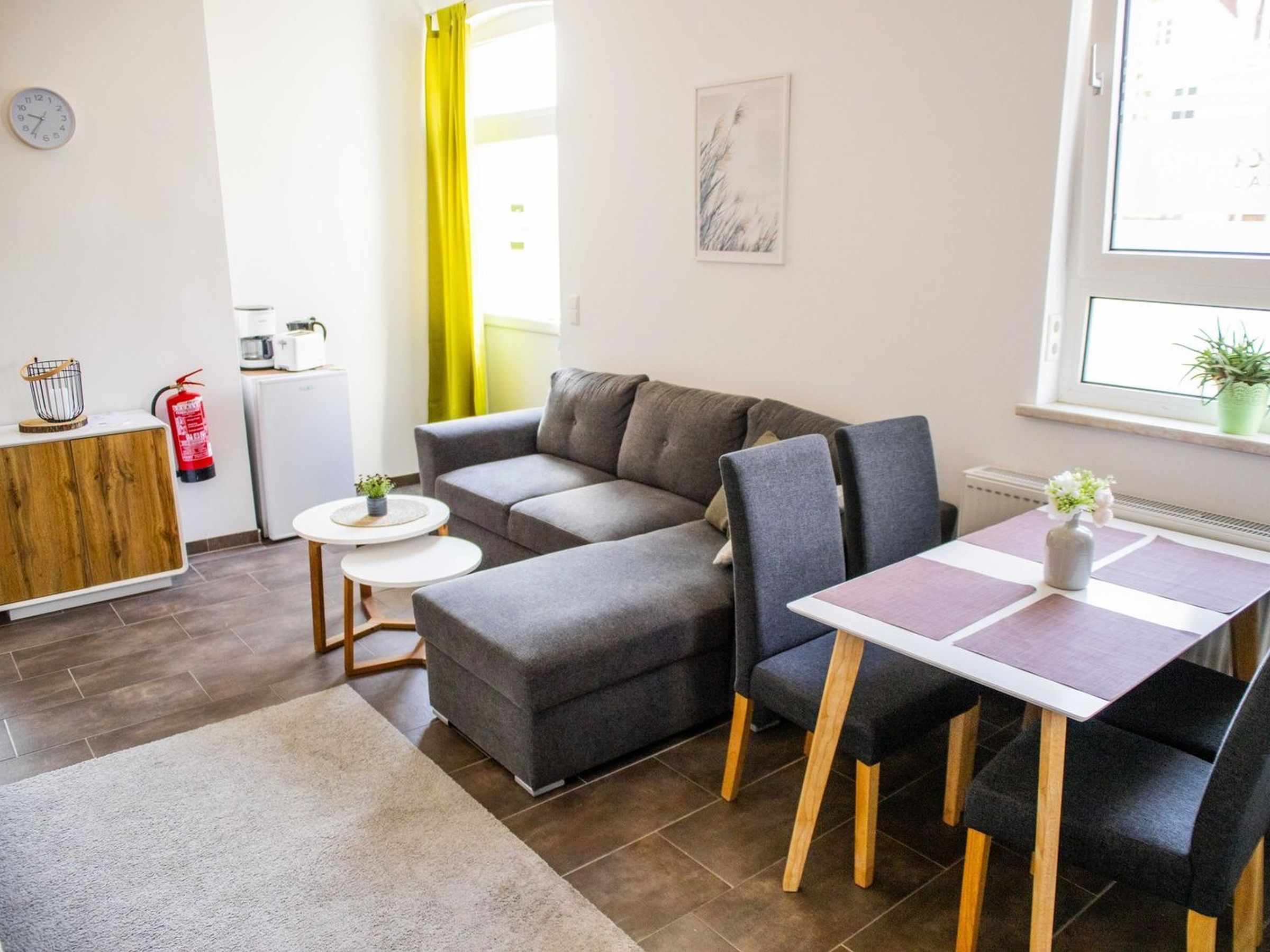 Willkommen im Peenecamp Neukalen! Unser Haupthaus bietet zwei charmante Ferienwohnungen für 2 bis 6 Personen. Entspannen Sie in modernen Wohnräumen mit Doppelbetten, Schlafcouch und Esstisch. In der größeren Wohnung genießen Sie zusätzlichen Komfort mit einem separaten Schlafraum. Gemütliche Sitzecken und der Grillplatz vor den Wohnungen laden zum Verweilen ein. Parken Sie bequem direkt am Haus. Die Ausstattung umfasst Radio, SAT-TV, Kaffeemaschine, Toaster und Wasserkocher – alles, was Sie für einen angenehmen Aufenthalt benötigen. Die gut ausgestattete Küche des Campingplatzes steht Ihnen zum Kochen und Abwaschen zur Verfügung. Freuen Sie sich auf kostenfreies WLAN in den Wohnungen. Komfortable Schlafcouchen sorgen für erholsame Nächte. Gut erzogene Haustiere sind auf Anfrage willkommen. Genießen Sie entspannte Tage inmitten wunderschöner Natur!