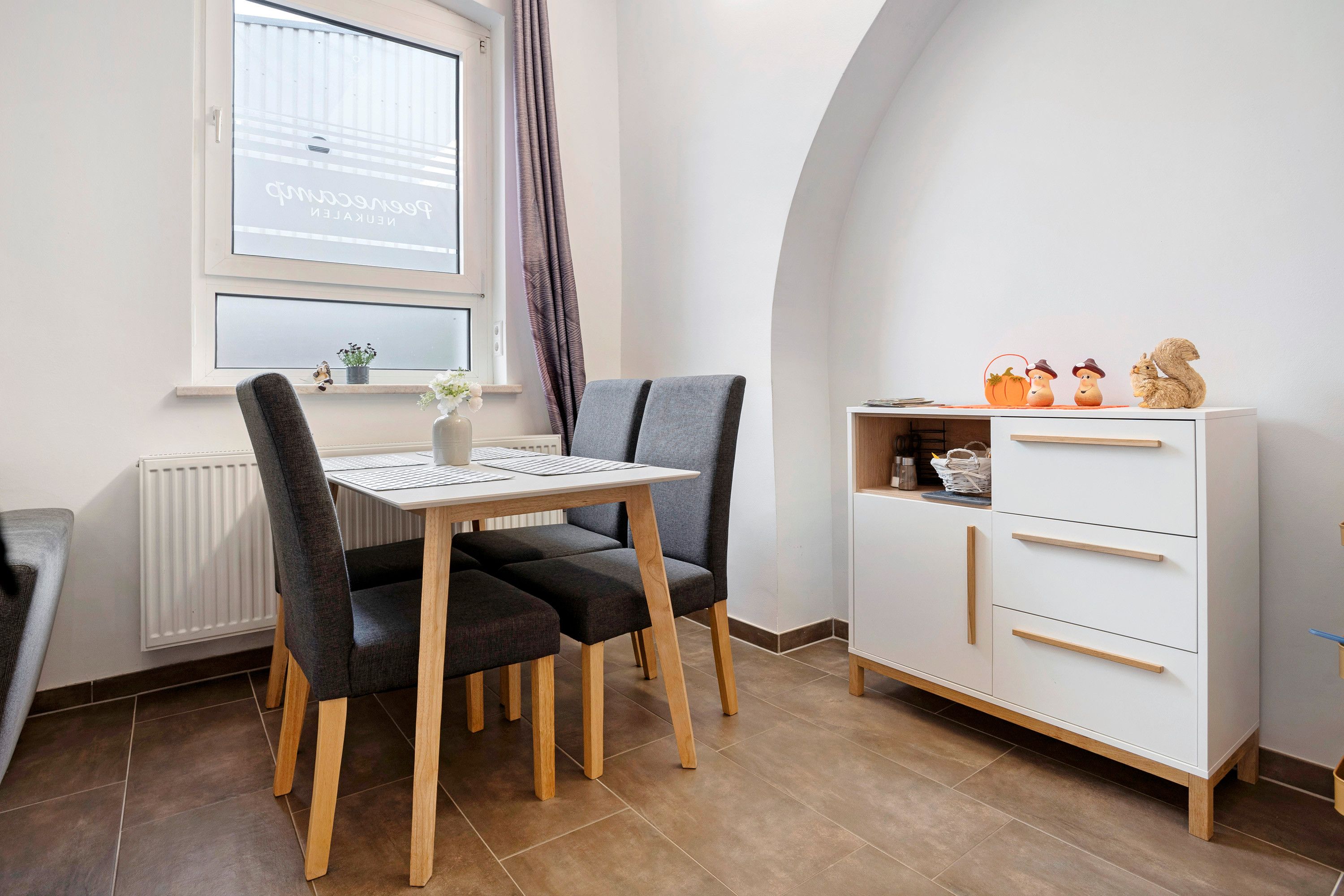 Willkommen im Peenecamp Neukalen! Unser Haupthaus bietet zwei charmante Ferienwohnungen für 2 bis 6 Personen. Entspannen Sie in modernen Wohnräumen mit Doppelbetten, Schlafcouch und Esstisch. In der größeren Wohnung genießen Sie zusätzlichen Komfort mit einem separaten Schlafraum. Gemütliche Sitzecken und der Grillplatz vor den Wohnungen laden zum Verweilen ein. Parken Sie bequem direkt am Haus. Die Ausstattung umfasst Radio, SAT-TV, Kaffeemaschine, Toaster und Wasserkocher – alles, was Sie für einen angenehmen Aufenthalt benötigen. Die gut ausgestattete Küche des Campingplatzes steht Ihnen zum Kochen und Abwaschen zur Verfügung. Freuen Sie sich auf kostenfreies WLAN in den Wohnungen. Komfortable Schlafcouchen sorgen für erholsame Nächte. Gut erzogene Haustiere sind auf Anfrage willkommen. Genießen Sie entspannte Tage inmitten wunderschöner Natur!