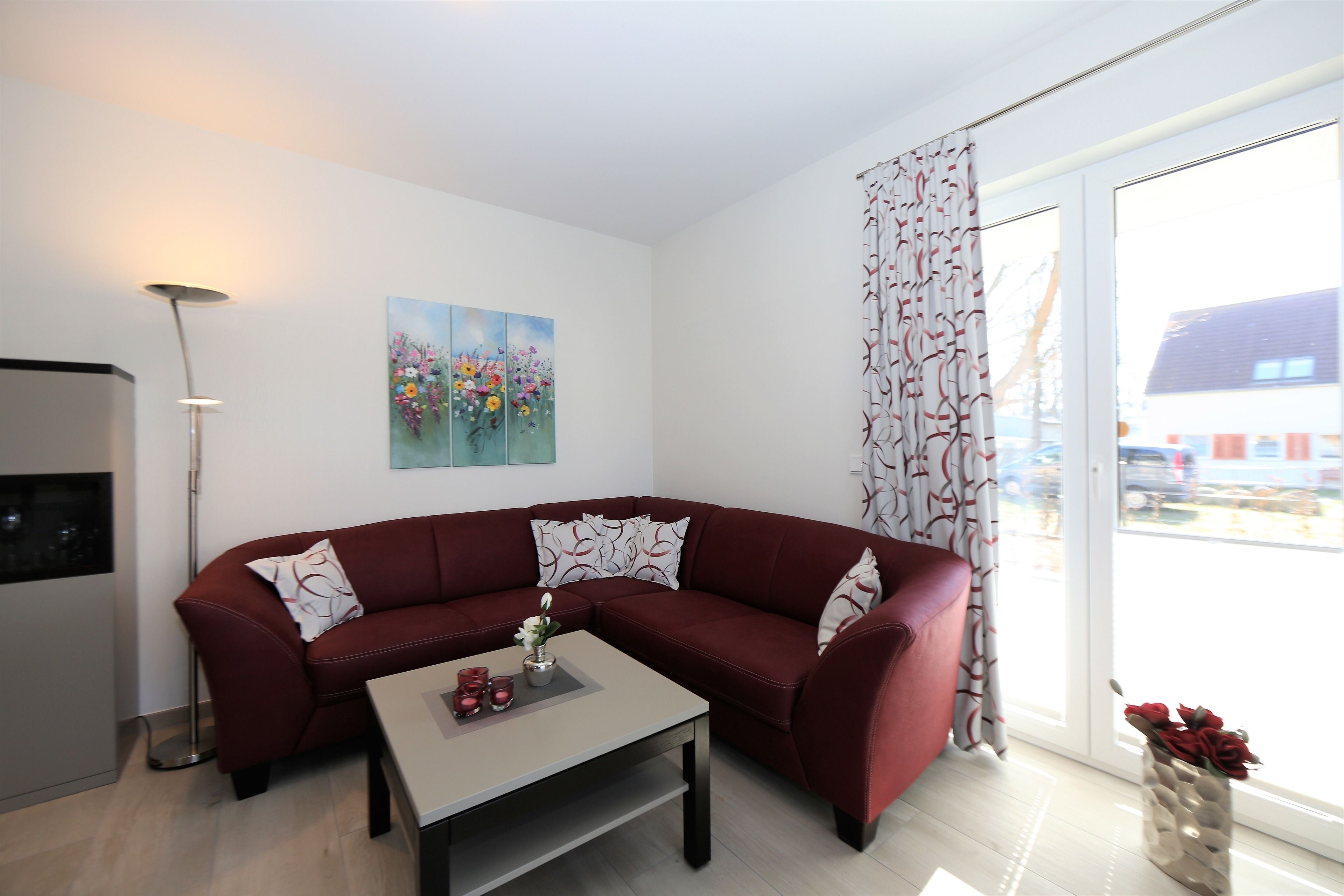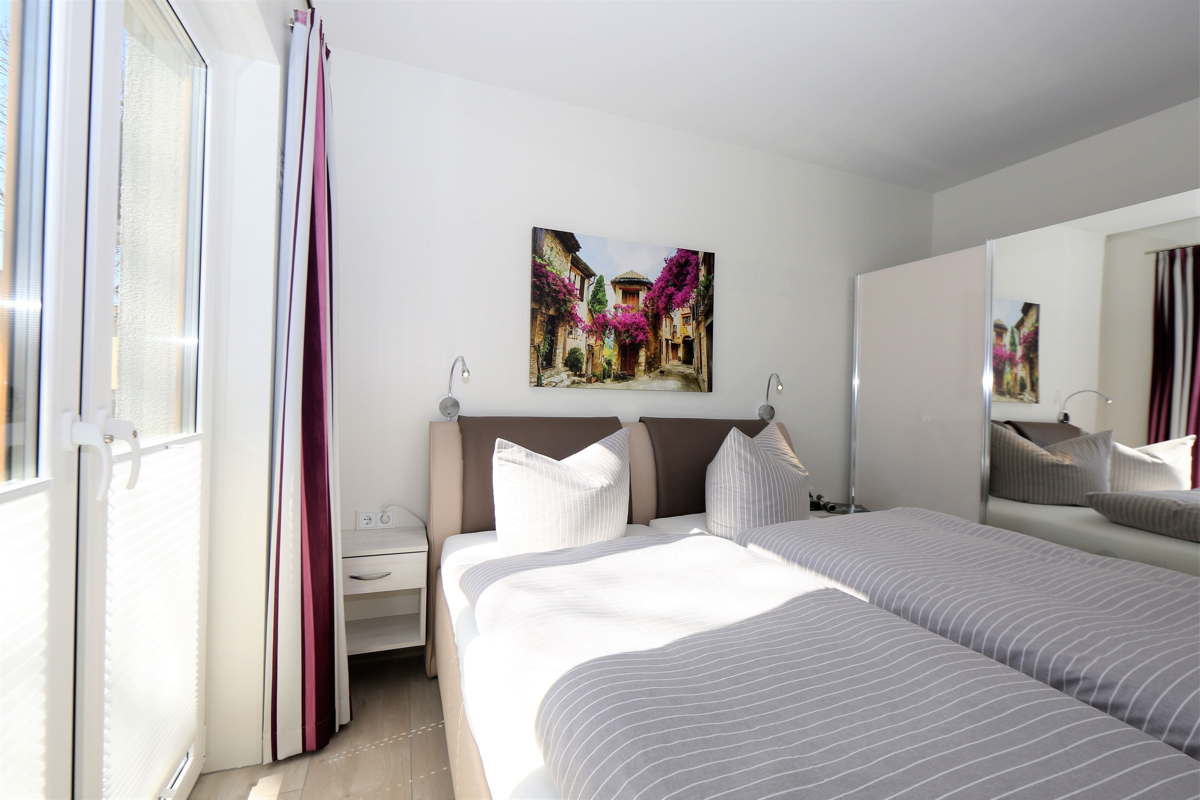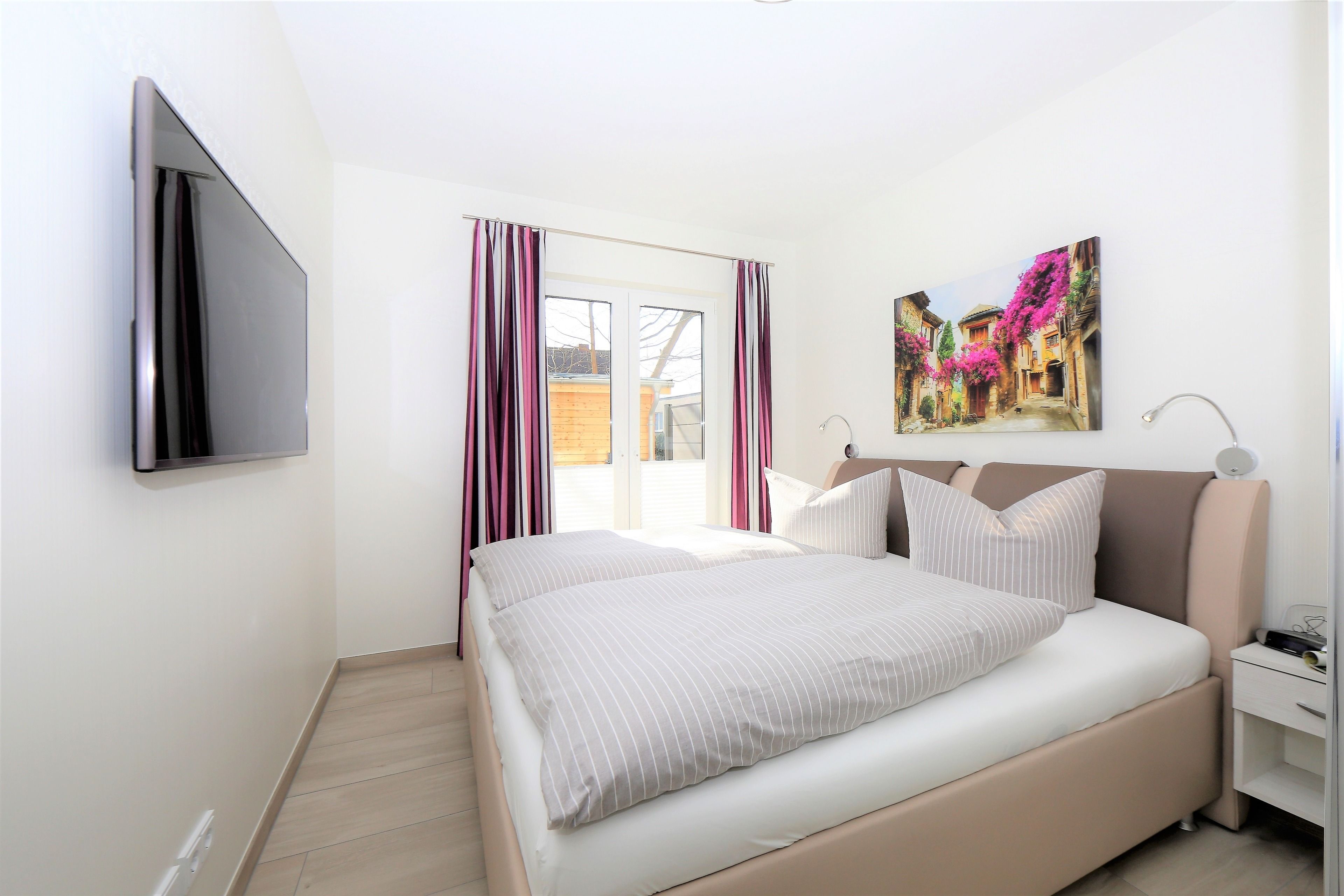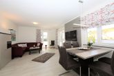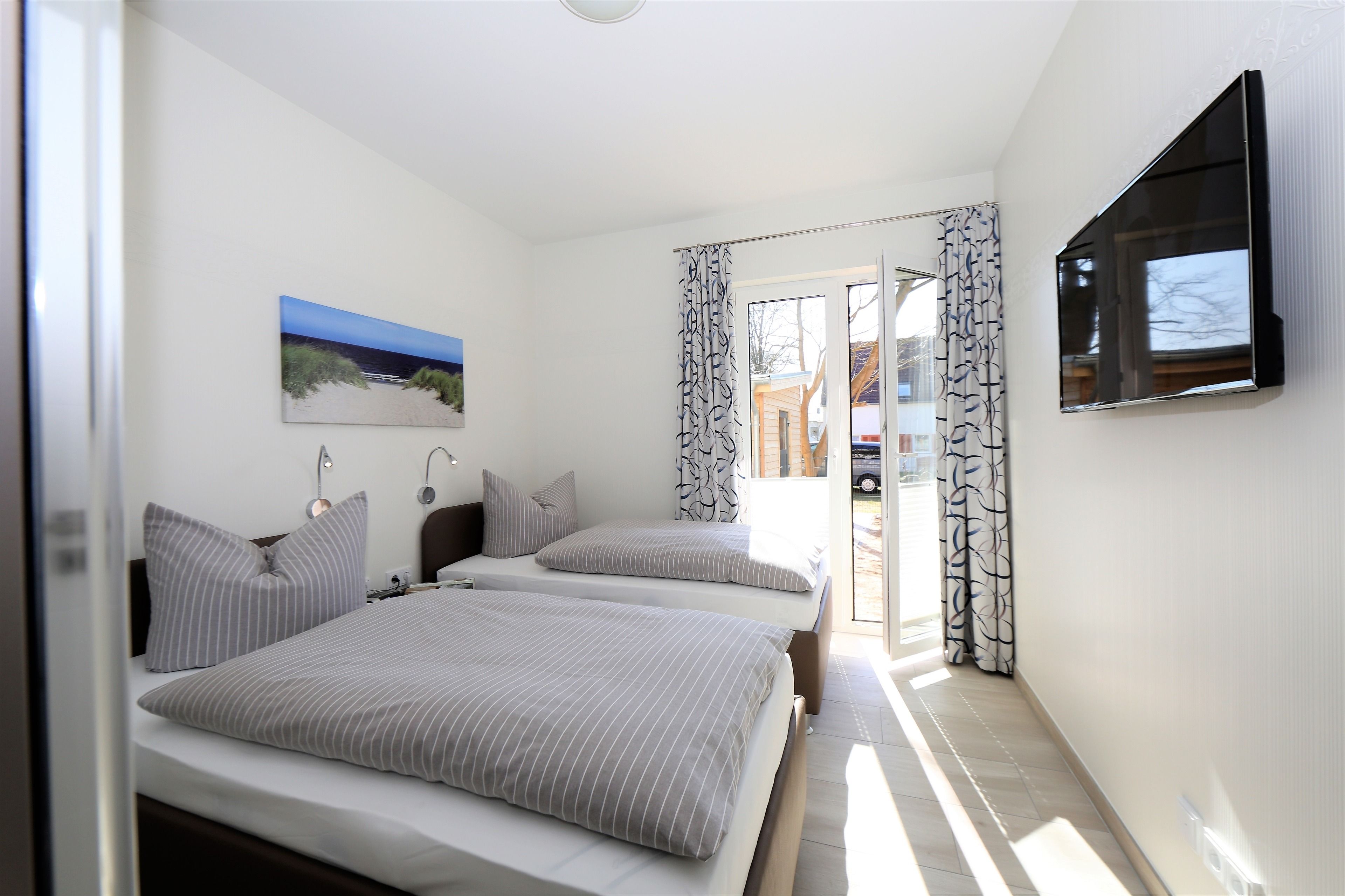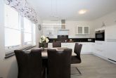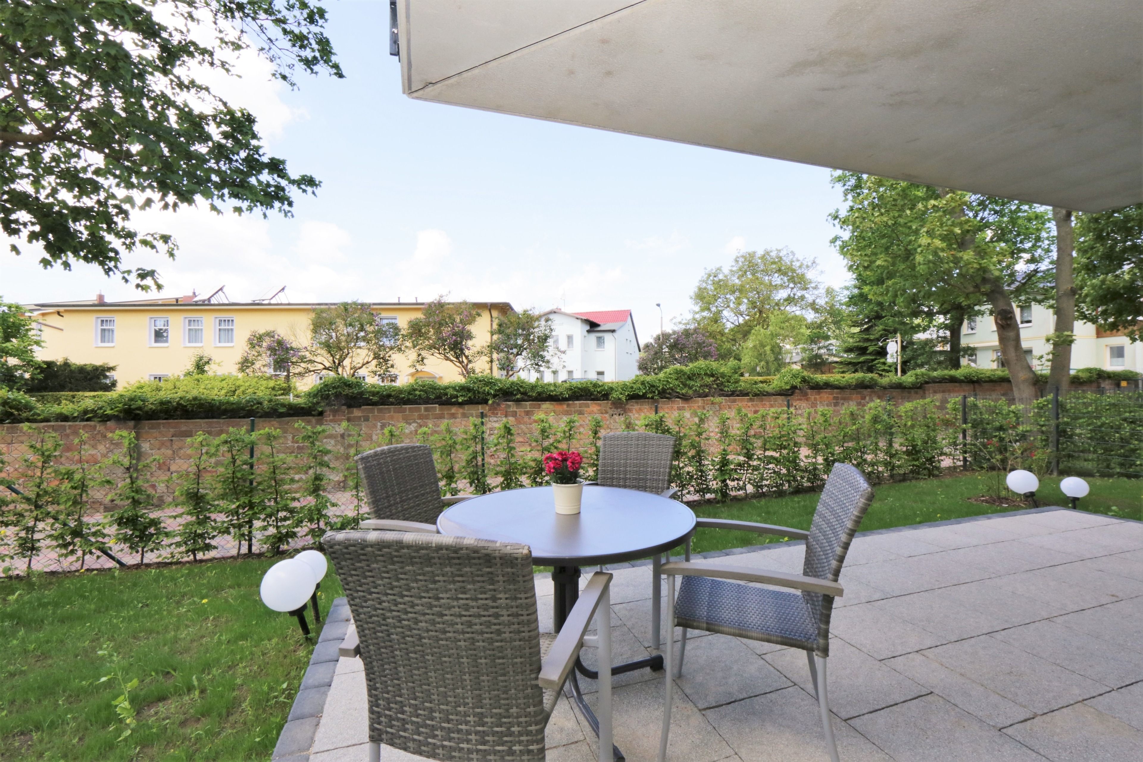 Dieses hochwertig und moderne 3-Zimmer Appartement ist 82 qm groß und befindet sich im Erdgeschoss der 2016 neu erbauten Ahlbecker Suiten. Die Wohnung ist für 2-4 Personen perfekt geeignet. Im hell eingerichteten Wohnbereich erwartet sie eine behagliche Polstergarnitur zum Relaxen, ein moderner Couchtisch sowie ein Esstisch und einem Flat-TV mit Radio. Die im Wohnraum integrierte und moderne Küchenzeile ist mit Cerankochfeld, Backofen, Mikrowelle, Geschirrspülmaschine und Kühlschrank ausgestattet. Die hellen Schlafzimmer verfügen über komfortable Betten, einem großzügigen Kleiderschrank und einen TV. Ein Schlafzimmer ist ausgestattet mit einem Doppelbett mit getrennten Matratzen (90x200), das zweite Schlafzimmer verfügt über 2 Einzelbetten (je 90 x190). Im modernen und freundlichen ausgestatteten Badezimmer finden Sie eine ebenerdige Echtglasdusche, einen schönen Waschtisch und WC. Zusätzlich befindet sich in der Wohnung ein Gäste-WC. Ebenso steht den Gästen im Appartement eine Waschmaschine und ein Trockner zur Verfügung. Für eine behagliche Wärme an kälteren Tagen sorgt in der kompletten Wohnung die Fußbodenheizung. Über den Wohnbereich und die beiden Schlafzimmer erreichen Sie die Terrasse.