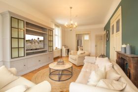 Willkommen in dieser traumhaften 3-Raum-Wohnung im 2. Obergeschoss im Herzen eines charmanten Altbaus! Die Wohnung begrüßt Sie mit einem geräumigen Eingangsbereich mit glänzenden Holzdielen, die den eleganten Charakter dieses Zuhauses unterstreichen. Die Wohnung erstreckt sich über großzügige 95 Quadratmeter und bietet Platz für 2 – 4 Personen. Lassen Sie sich von einem modernen Flair und einer geschmackvollen Einrichtung verzaubern. Zwei geräumige Schlafzimmer bieten reichlich Stauraum und Gemütlichkeit für erholsame Nächte, jeweils ausgestattet mit einem komfortablen Doppelbett in der Größe von 180x200cm. Ein Zimmer ist zusätzlich mit einem gemütlichen Boxspringbett in gleicher Größe ausgestattet, um Ihren Aufenthalt noch angenehmer zu gestalten. Das helle und einladende Wohnzimmer lädt zum Verweilen ein, mit einer bequemen Couch und zwei großzügigen Sesseln, von denen aus Sie einen kleinen Blick auf die Ostsee erhaschen können. Durch die majestätischen Flügeltüren des Wohnzimmers gelangen Sie in die moderne offene Küche, die mit hochwertigen Geräten und einem Esstisch für bis zu 5 Personen ausgestattet ist. Hier finden Sie alles, was das Herz begehrt: Induktionskochfeld, Kühlschrank, Gefrierschrank, Geschirrspüler, Mikrowelle und eine Kaffeemaschine – perfekt für gesellige Kochabende und kulinarische Genüsse. Das absolute Juwel dieser Wohnung ist das großzügige Vintage-Badezimmer, das mit einer freistehenden Badewanne und einer geräumigen Eckdusche zum Entspannen einlädt. Hier können Sie den Alltag hinter sich lassen und in luxuriösem Ambiente zur Ruhe kommen.