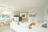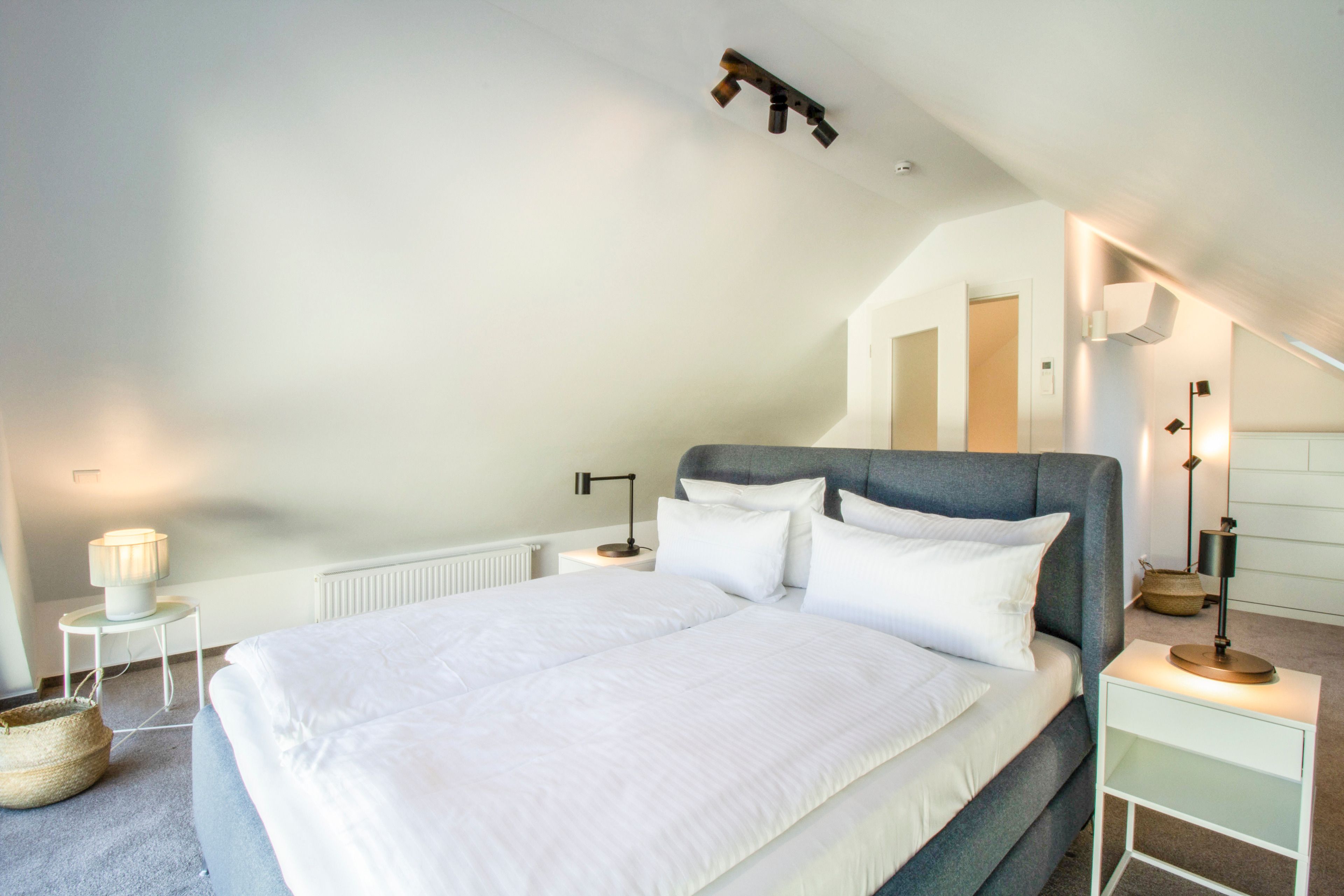 Herzlich willkommen in unserem exquisiten Ferienhaus Up de Insel, einem wahrhaft modernen Rückzugsort für Ihre kommende Auszeit! Mit großzügigen 140 m2 Wohnfläche auf einem weitläufigen 1000 m2 Grundstück ist dieses neugebaute Domizil der Inbegriff von Luxus, Stil und Komfort. Schon beim Betreten dieser Oase wird Ihnen die hochmoderne, lichtdurchflutete Einrichtung ins Auge fallen, die eine einladende und entspannende Atmosphäre schafft. Die Klimaanlage in allen Räumen sorgt dafür, dass Sie stets eine angenehme Raumtemperatur genießen können, unabhängig von der Witterung. Der weitläufige Wohn- und Essbereich ist das Herzstück der Wohnung. Ein großer Esstisch für bis zu 8 Personen lädt zu gemeinsamen Mahlzeiten und geselligem Beisammensein ein. Ein gemütliches Ecksofa und ein Flachbildfernseher sorgen für unterhaltsame Abende. Die moderne Küche ist komplett ausgestattet und verfügt über einen großzügigen Geschirrspüler, Backofen, Mikrowelle und einem Induktionskochfeld mit integriertem Abzug. Hier können Sie Ihre kulinarischen Fähigkeiten entfalten und sich wie zu Hause fühlen. Vom Wohnbereich gelangen Sie auf die großzügige Terrasse, die von einem liebevoll gepflegten Garten umgeben ist. Hier finden Sie auch einen Elektrogrill, der perfekt für entspannte Grillabende im Freien ist. Die Saunaliebhaber unter Ihnen werden die Fasssauna lieben, die nach einem erlebnisreichen Tag pure Entspannung verspricht. Im Obergeschoss und im Studio unter dem Dach erwarten Sie vier wundervolle Schlafzimmer – drei mit gemütlichen Boxspringbetten (1,60 m x 2 m) und eines mit zwei Einzelbetten (0,90 m x 2 m) – alle liebevoll gestaltet, um Ihnen erholsame Nächte zu bescheren. Für Ihr absolutes Wohlbefinden stehen zwei Badezimmer zur Verfügung. Das großzügige Obergeschoss beherbergt ein luxuriöses Badezimmer mit ebenerdiger Dusche, einer großzügigen Badewanne und einem Doppelwaschtisch. Im Erdgeschoss finden Sie ein weiteres Bad mit Dusche für zusätzlichen Komfort. Für Ihre Fahrzeuge stehen zwei komfortable Parkplätze zur Verfügung. Wenn Sie die Region gerne auf zwei Rädern erkunden, bieten wir Ihnen die Möglichkeit, Ihre Fahrräder und E-Bikes in einem modern gestalteten Container sicher aufzubewahren und aufzuladen.