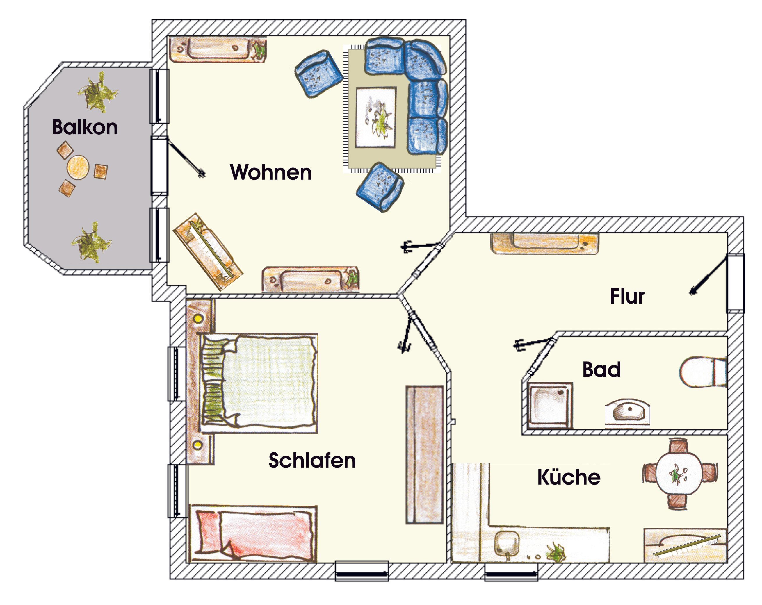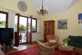 Dieses 55 qm große 2 Zimmer Appartement liegt im 2. Obergeschoss und eignet sich für 2-4 Personen. Der großzügige Wohnbereich bietet Ihnen eine Wohnlandschaft mit Flat-TV. Vom Wohnzimmer gelangen Sie auf den sonnigen Balkon zur Labahnstraße mit östlicher Ausrichtung. In der separaten Küche mit großem Dachfenster steht den Gästen ein Esstisch für gemeinsame Mahlzeiten zur Verfügung. Die Einbauküche verfügt über Kühlschrank, Ceranfeld, Backofen, Mikrowelle etc. Das großzügige Schlafzimmer ist mit einem Doppelbett mit getrennten Matratzen (90 x 200), einem Tandembett für zwei Kinder (90 x 200) sowie reichlich Schrankraum eingerichtet. Das innenliegende Bad ist mit Dusche und Waschtisch/WC ausgestattet. Außerdem steht den Gästen Waschmaschine/Trocker zur Verfügung. Ein Pkw-Stellplatz steht auf dem Grundstück ebenfalls zur Verfügung und ist der Wohnung zugeordnet.