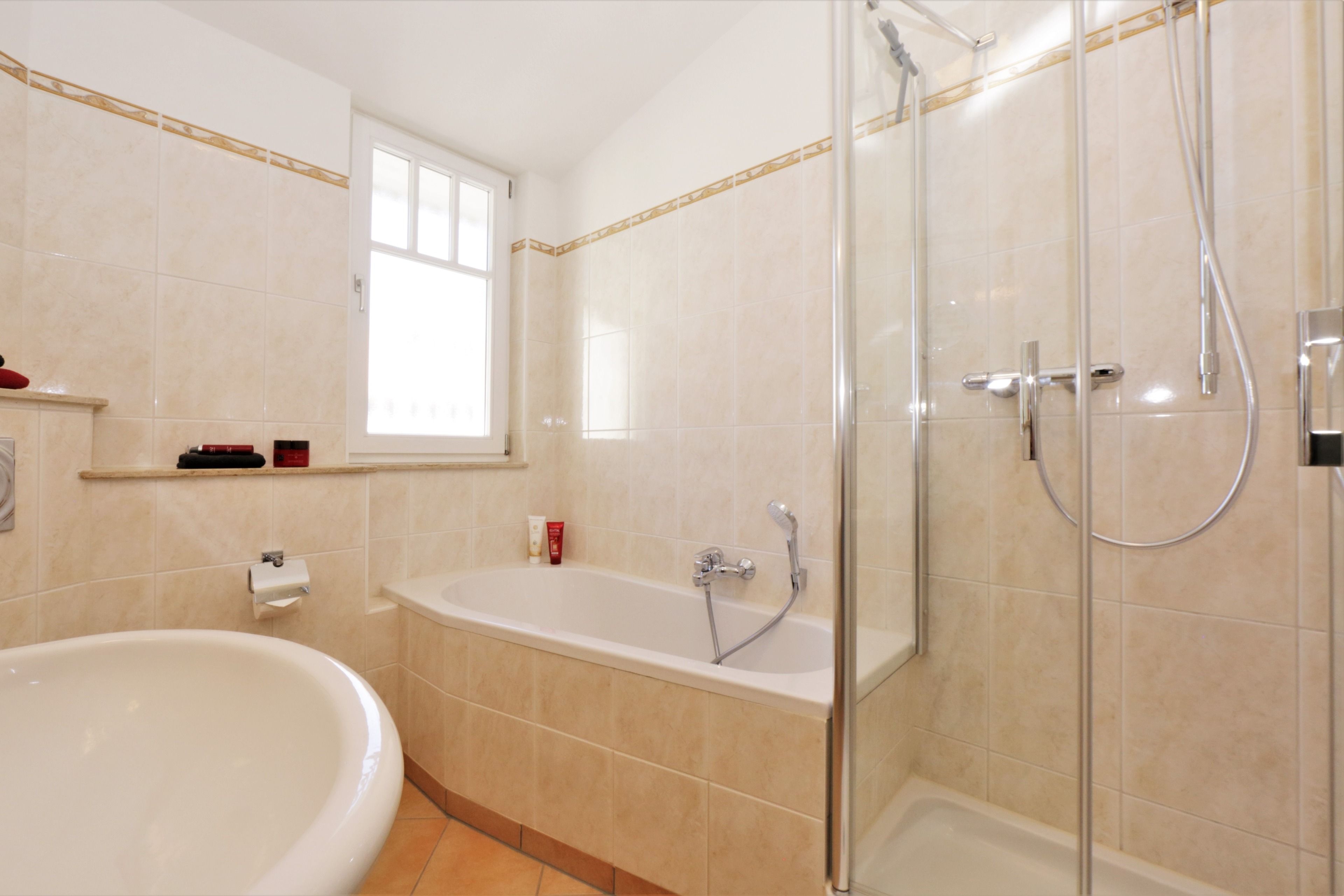 Diese modern eingerichtete 3-Zimmer Wohnung ist 67 qm groß und liegt im 2. Obergeschoss. Sie bietet 4 Personen viel Platz für einen erholsamen Ostseeaufenthalt. Der helle Wohnraum verfügt über eine Couch, Couchtisch und zwei gemütliche Sessel sowie einen großen Flat TV. Offen im Wohnraum integriert wurde die Vollküche incl. Geschirrspüler, Ceranfeld, Backofen, Mikrowelle, Kühlschrank etc. Der Essplatz am Fenster lädt zu gemeinsamen Mahlzeiten ein. Auf dem Balkon zum Süden, der von einem der Schlafzimmer begehbar ist, ist Sonne garantiert. Die Schlafzimmer sind jeweils mit einem komfortablen Doppelbett mit getrennten Matratzen (90 x 200), ausreichend Schrankraum und Kofferablage eingerichtet. Ein Schlafzimmer bietet den Gästen einen zusätzlichen Flat-TV. Das Bad mit Fenster ist sowohl mit Badewanne als auch mit Dusche und Waschtisch/WC ausgestattet. Ein Pkw-Stellplatz, der der Wohnung zugeordnet ist, steht den Gästen am Haus zur Verfügung. Der Fahrradraum als auch Waschmaschine und Trockner im Keller kann von den Gästen genutzt werden.