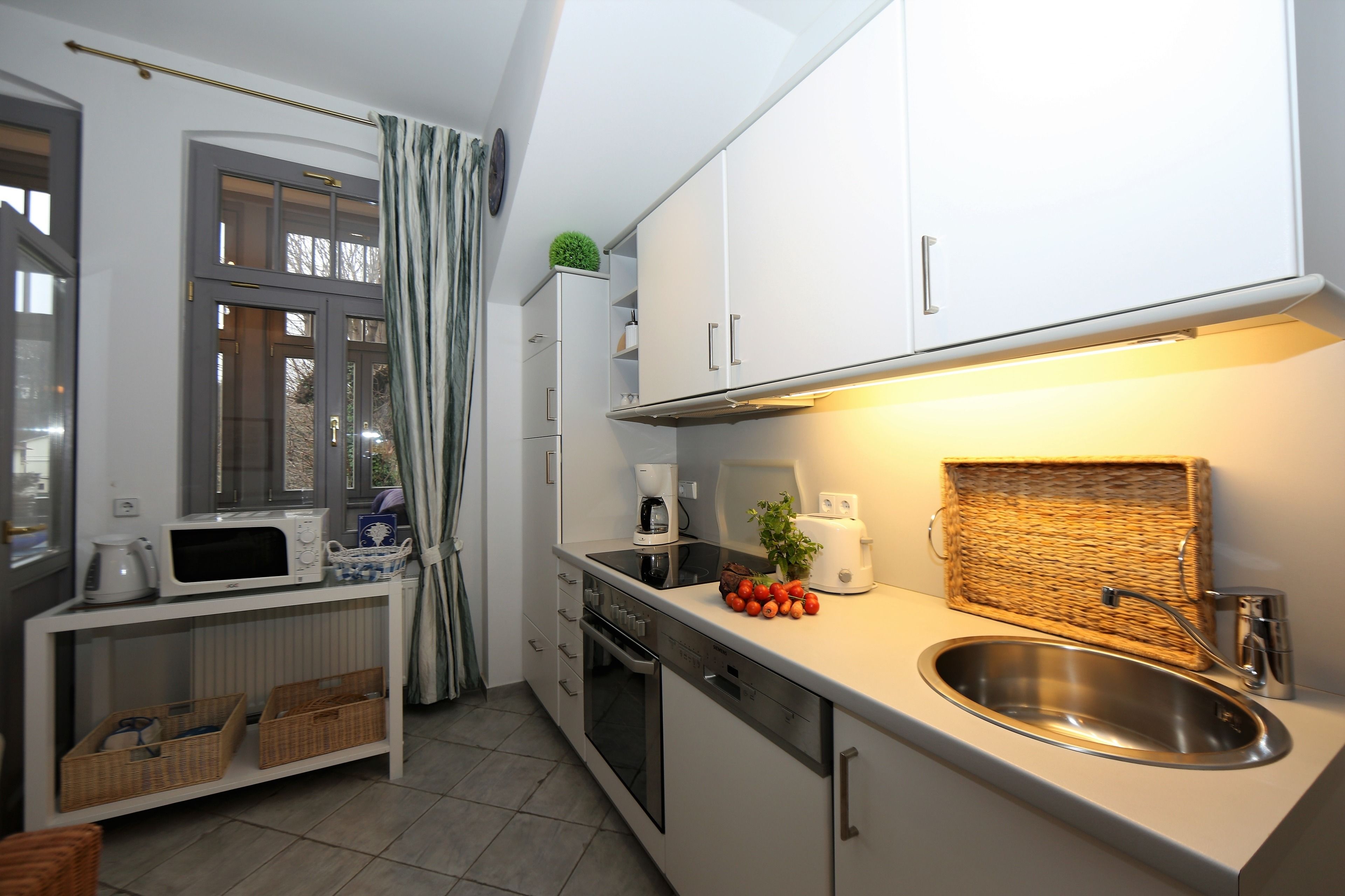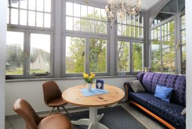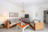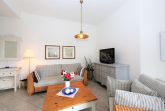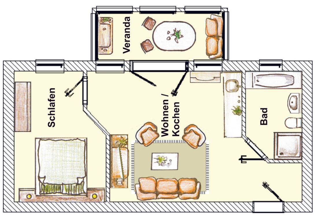 Dieses hochwertig und mit viel Liebe eingerichtete 53 qm große 2-Zimmer-Appartement liegt im 1. Obergeschoss und eignet sich für 2 bis 3 Personen. Der helle Wohnraum ist mit einer gemütlichen Sitzecke (mit Schlaffunktion 160 x 200) und Flat TV eingerichtet. Die Vollküche incl. Geschirrspüler, Cerankochfeld, Backofen, Mikrowelle, Kühlschrank etc. ist ebenfalls offen im Wohnraum integriert. Der Essplatz befindet sich in der hellen südlich ausgerichteten, geschlossenen Loggia (Fenster lassen sich öffnen), die direkt an den Wohnraum grenzt. Hier lädt ein zusätzliches Sofa zum Lesen und Relaxen ein. Das großzügige Schlafzimmer verfügt über ein Doppelbett mit getrennten Matratzen (90 x 200) und einen großen Kleiderschrank. Nach einer erholsamen Nacht lädt hier ein Schaukelstuhl zum Weiterträumen ein. Das Bad bietet seinen Gästen sowohl Dusche als auch Badewanne sowie Waschbecken/WC und ist mit einem Fenster ausgestattet.