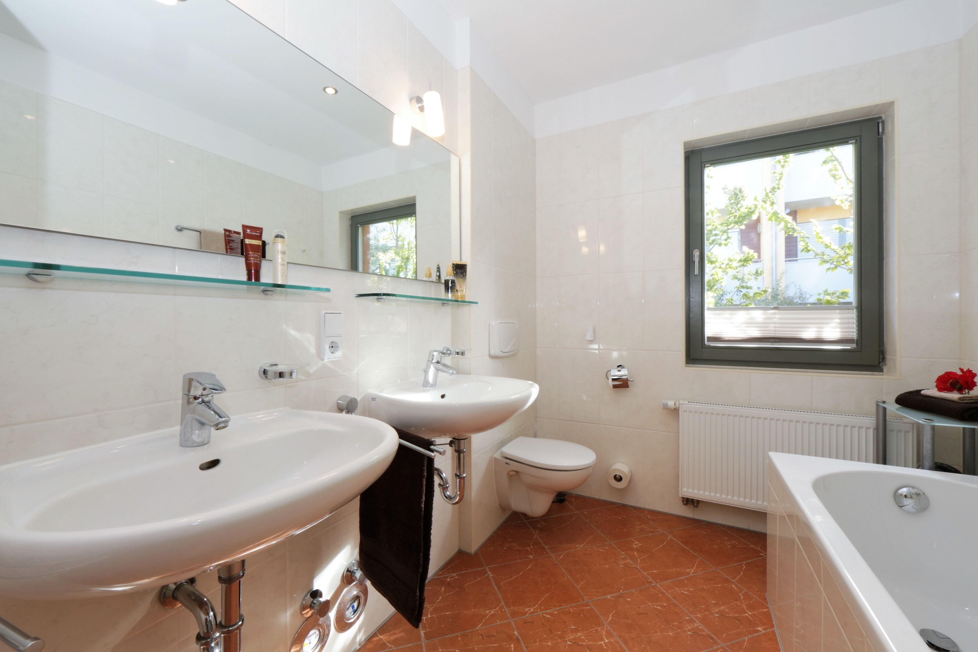 Alle Appartements der Villa Jasmin verfügen über einen Balkon und eine Terrasse oder eine Loggia. Kinder freuen sich über den kleinen Spielplatz auf dem Grundstück. Es sind nur ca. 100m bis zum breiten, feinsandigen Strand von Heringsdorf, wo man einen Strandkorb mieten und herrlich baden kann. In nur wenigen Fußminuten erreichen Sie das lebendige Ortszentrum mit seinen zahlreichen Cafés, Restaurants und Einkaufsmöglichkeiten. Von hier aus gelangen Sie umgehend zur Heringsdorfer Seebrücke. Sie ist mit 508 m die längste Seebrücke Deutschlands. Außerdem befinden sich im Zentrum die beliebte Konzertmuschel und der größte Strandkorb der Welt! Waschmaschine und Trockner gegen Gebühr sind im Keller untergebracht. In der Villa Jasmin können Sie einen Fahrradkeller sowie gegen Gebühr Waschmaschine und Trockner nutzen.