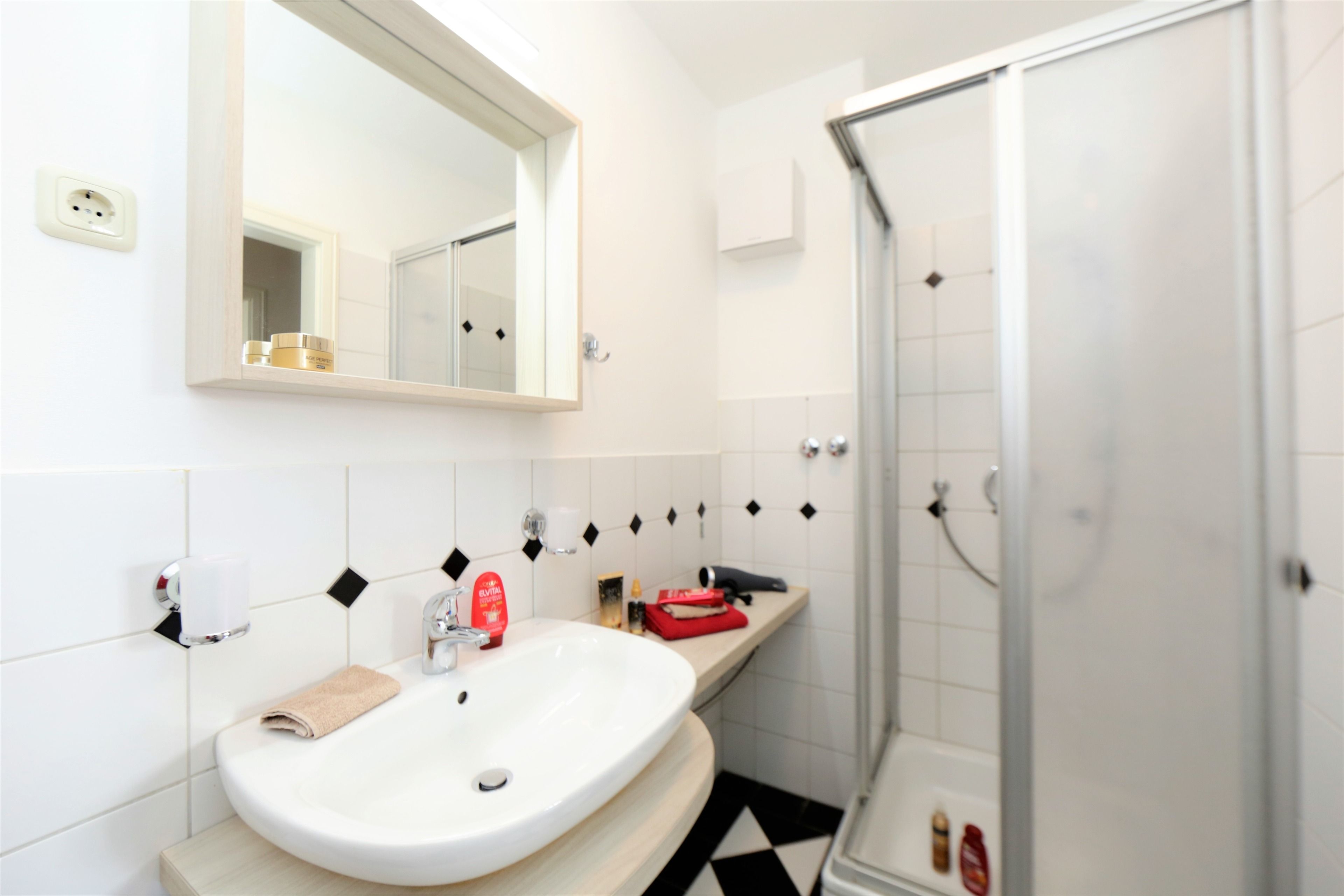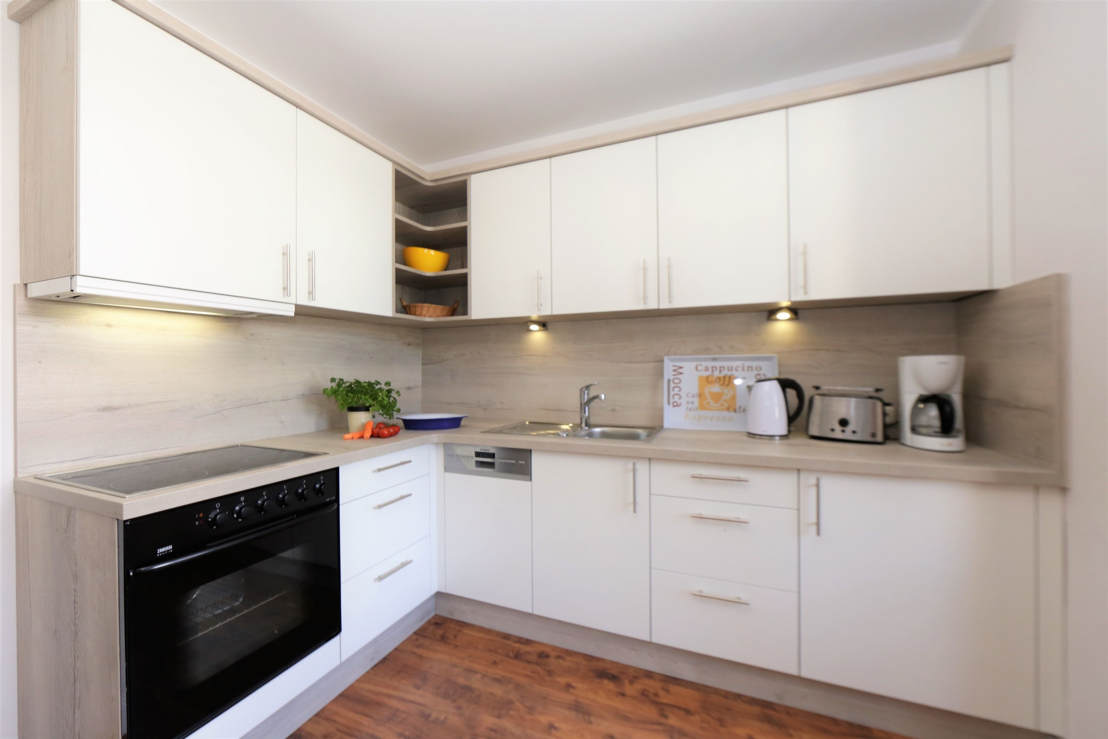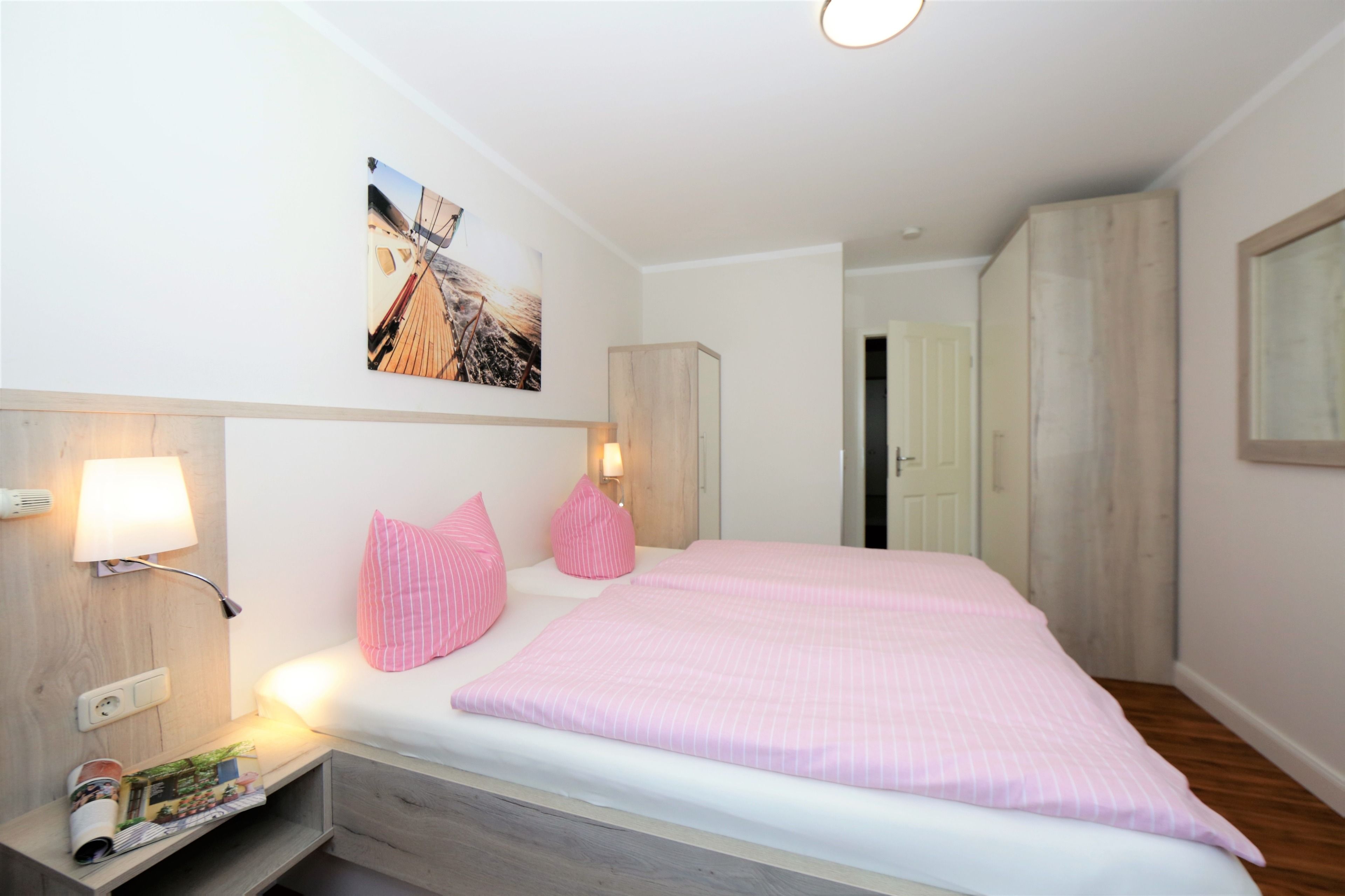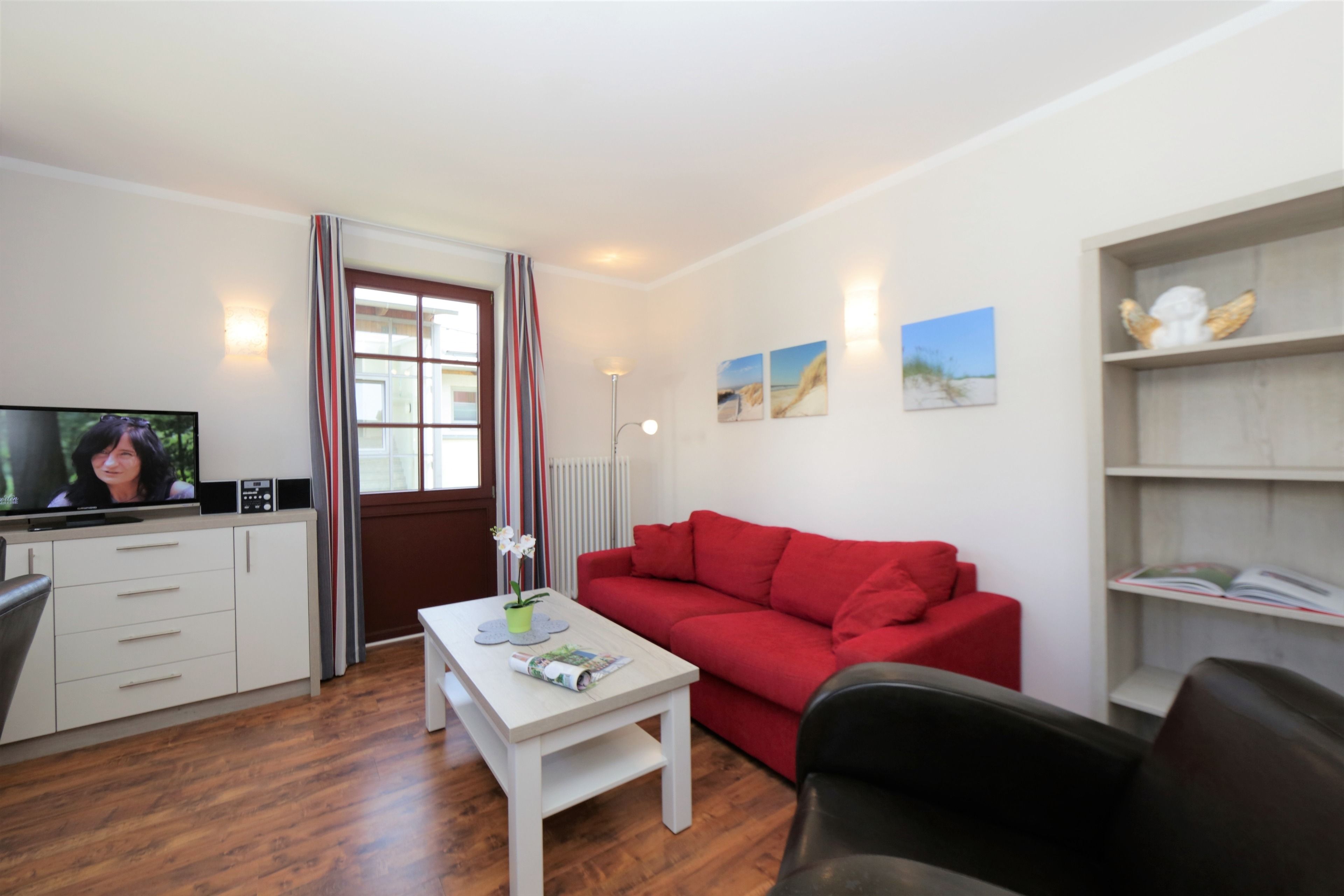 Dieses gemütliche 45 qm große Zwei-Zimmer-Appartement befindet sich im 1. Obergeschoss und ist für 2-4 Personen geeignet. Der Wohnraum verfügt über eine Sitzecke mit Couch incl. Schlaffunktion (Matratze 160x200), Couchtisch und Flat TV sowie einen Essplatz für 4 Personen. Der möblierte westlich ausgerichtete Balkon ist vom Wohnraum begehbar. Die Vollküche inkl. Backofen/Ceranfeld, Geschirrspüler, Kühlschrank etc. ist ebenfalls offen im Wohnraum integriert und bietet einen zweiten Zugang auf den Balkon. Das Schlafzimmer ist mit einem komfortablen Doppelbett mit getrennten Matratzen (90x200) und genügend Schrankraum eingerichtet. Im Bad stehen Ihnen Dusche und Waschtisch/WC zur Verfügung.