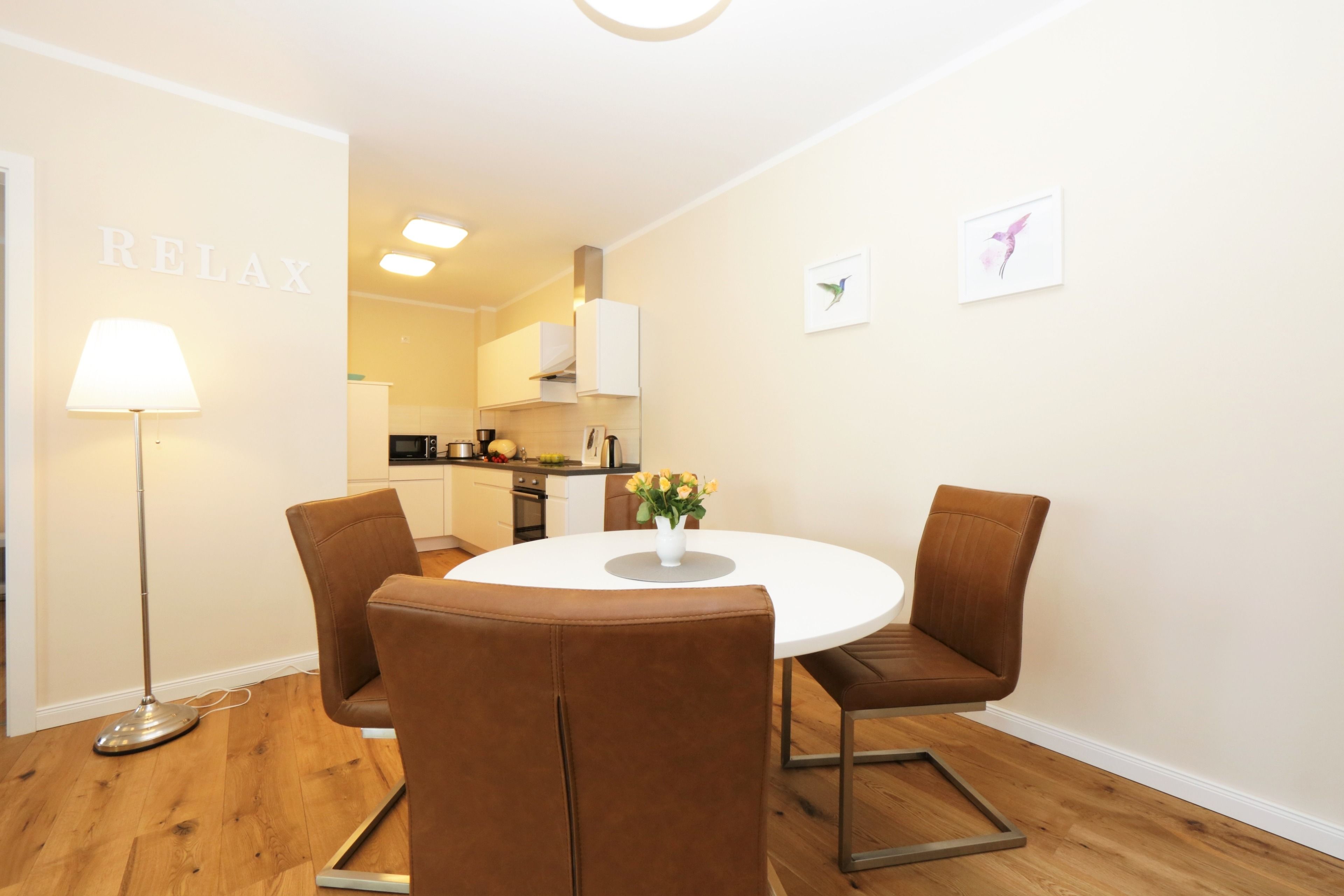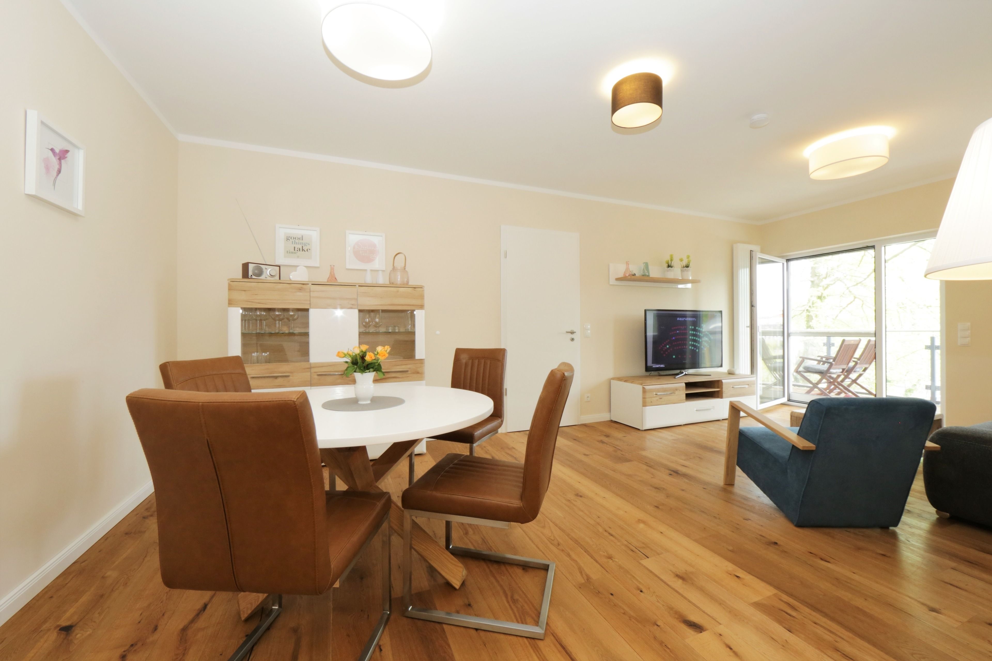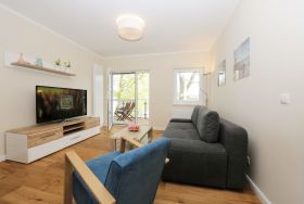 Dieses hochwertige und moderne 2-Zimmer Appartement ist 67 qm groß und befindet sich im 1. Obergeschoß des 2017 neu erbauten Haus Maxim. Die Wohnung ist für 2-4 Personen geeignet. Im hell eingerichteten Wohnbereich erwartet Sie eine behagliche Polstergarnitur mit Schlaffunktion zum Relaxen, ein moderner Couchtisch sowie ein Esstisch und einem Flat- TV mit integriertem Radio. Die im Wohnraum integrierte Küchenzeile ist mit Cerankochfeld, Backofen, Geschirrspülmaschine und Kühlschrank mit Gefrierfach ausgestattet. Das helle Schlafzimmer verfügt über ein komfortables Doppelbett mit getrennten Matratzen (0,90x2,00m) und einen Kleiderschrank. Das moderne Tageslichtbadezimmer ist mit einer ebenerdigen Dusche, einem Waschtisch, WC und Haartrockner ausgestattet. Über den Wohnbereich erreichen Sie den nach nord-osten ausgerichteten Balkon mit Blick auf den Ort.