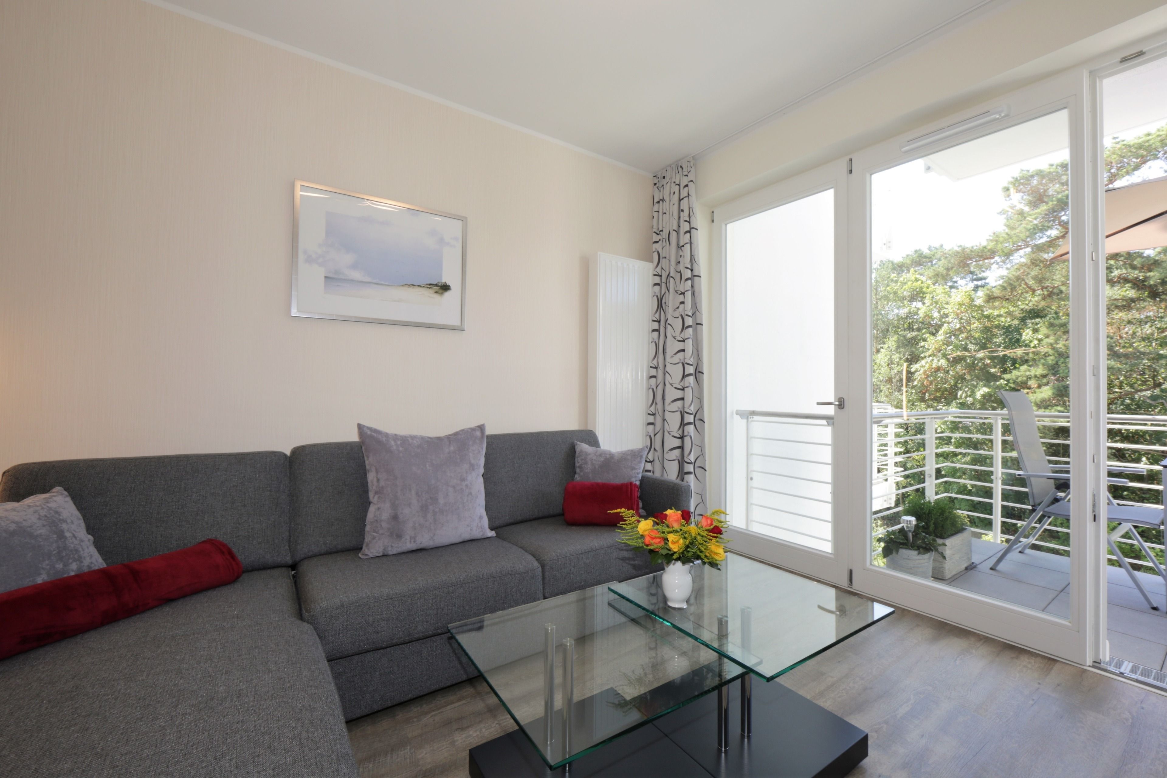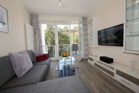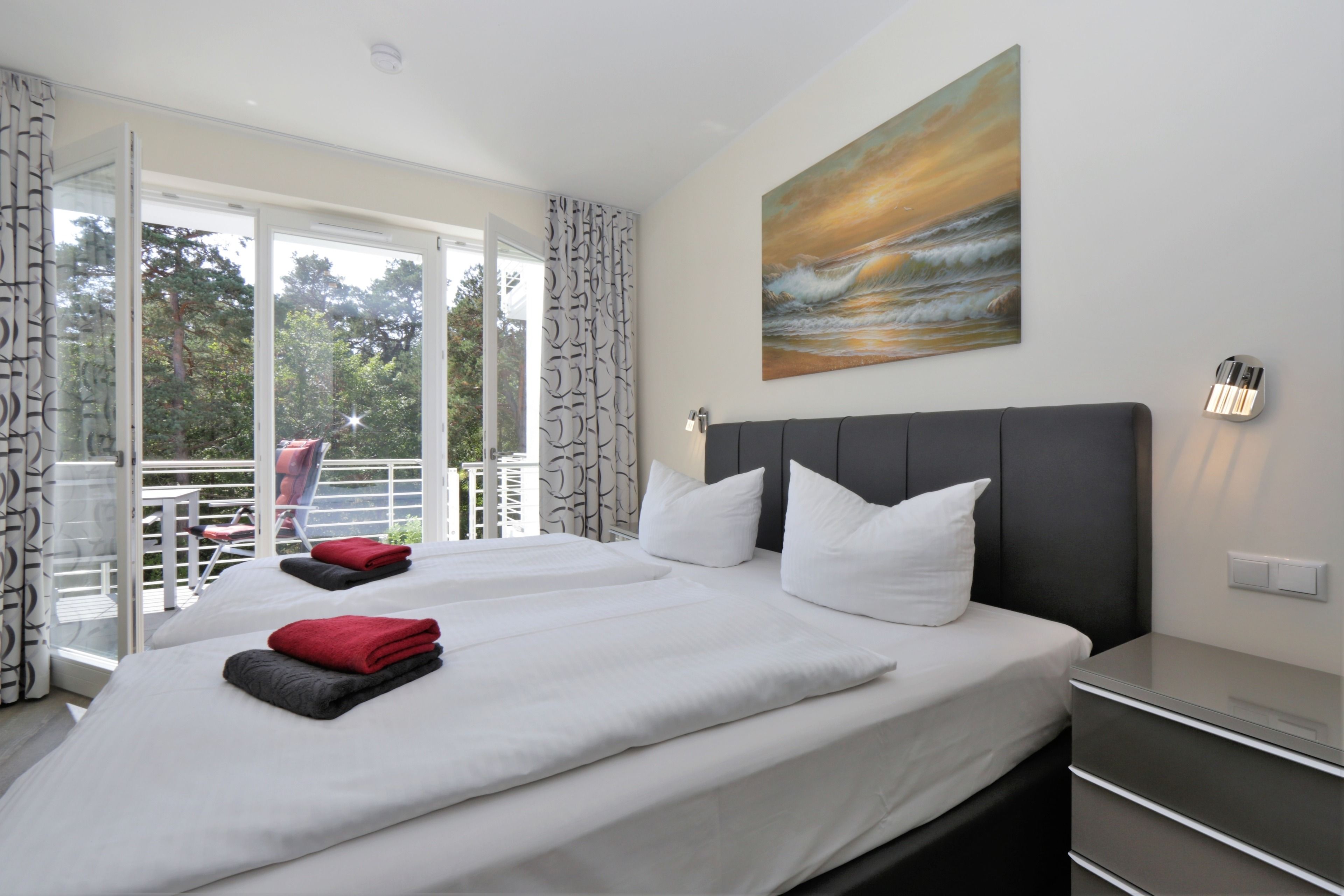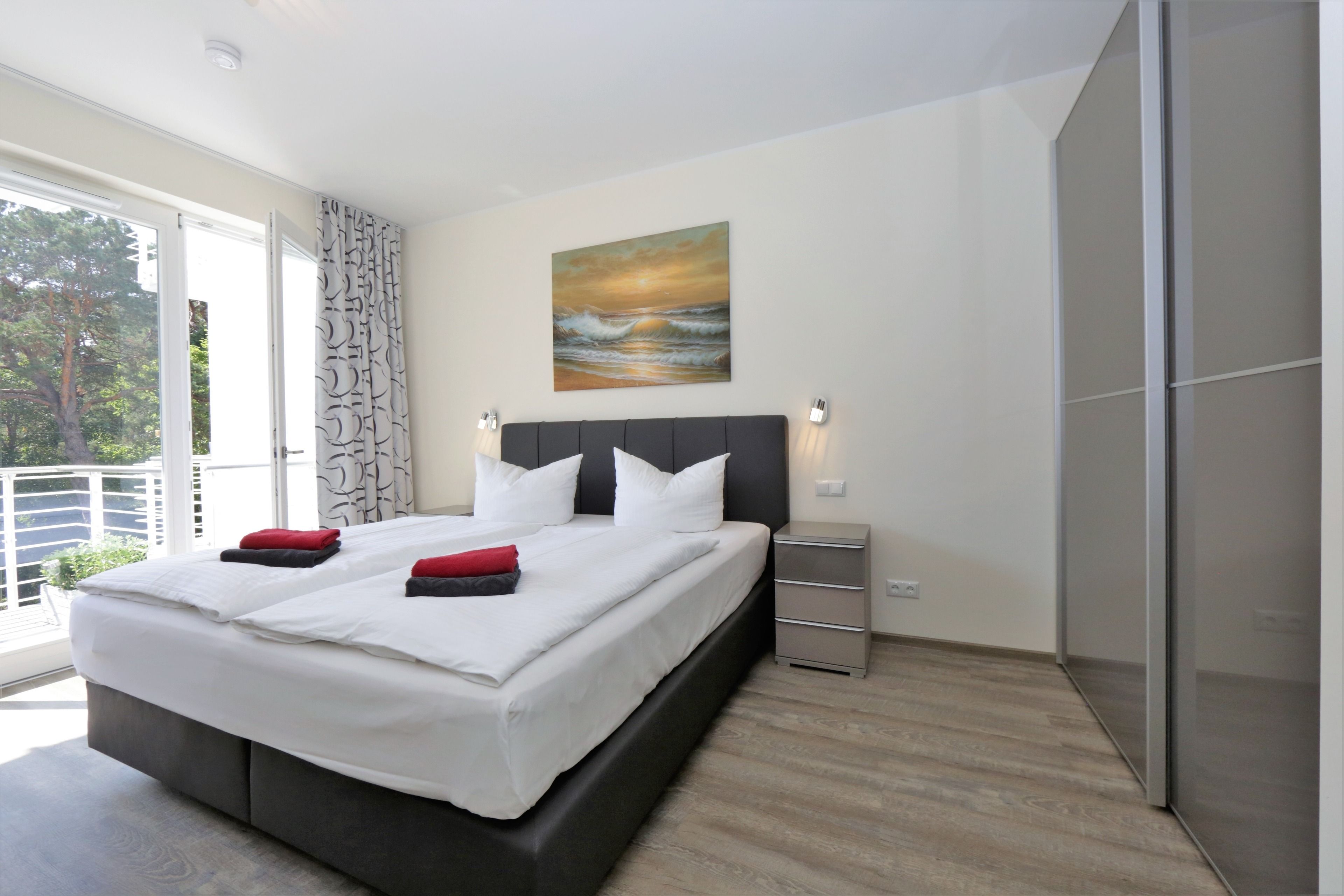Dieses moderne 2-Zimmer Appartement ist 55 qm groß und befindet sich im 2. Obergeschoss der 2018 neu erbauten Strandresidenz. Die Wohnung ist für 2-4 Personen geeignet. Im Wohnbereich erwartet Sie eine bequeme Polstergarnitur mit Schlaffunktion (Liegefläche 1,50 m x 1,90 m), Couchtisch und Flat TV sowie ein Esstisch für gemeinsame Mahlzeiten. Die moderne Küche mit Cerankochfeld, Backofen, Mikrowelle, Geschirrspülmaschine, Kühlschrank, Tiefkühlschrank etc. ist ebenfalls offen im Wohnraum integriert. Über den Wohnbereich sowie das Schlafzimmer erreichen Sie den zum Süden ausgerichteten überdachten Balkon, der viele Sonnenstunden verspricht. Das Schlafzimmer verfügt über ein komfortables Boxspringbett (1,80 m x 2,00 m), einen Kleiderschrank und Flat TV. Das großzügige moderne Badezimmer ist mit einer bodengleichen Dusche mit Echtglasabtrennung und Waschtisch/WC ausgestattet.