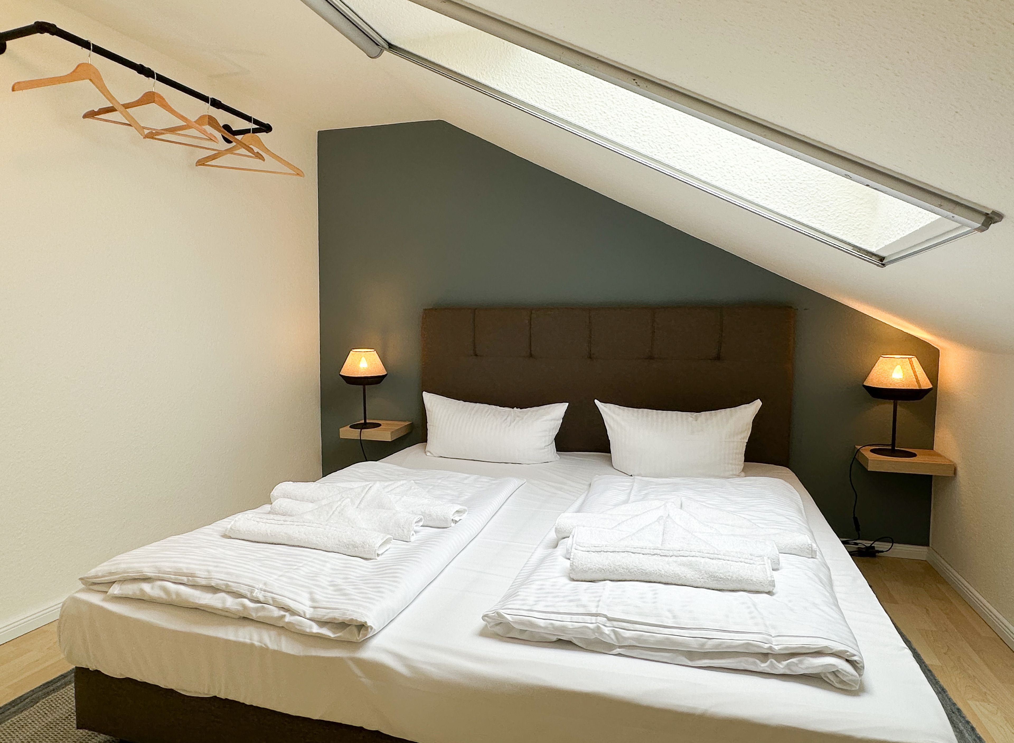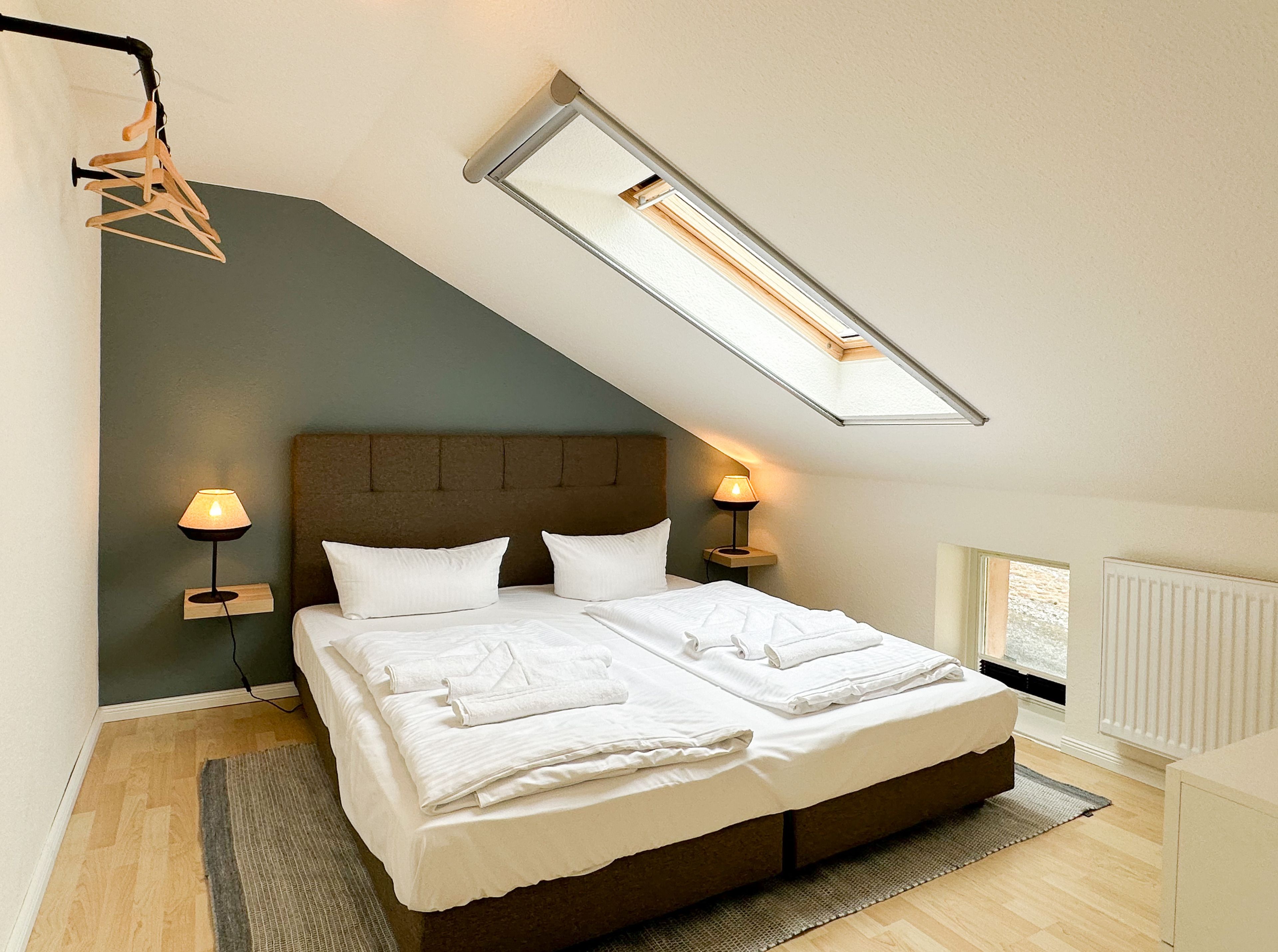Diese interessante, großzügige Dachgeschoss-Wohnung (Achtung eingeschränkte Deckenhöhe) im 2. Obergeschoß, über den Dächern von Ahlbeck, bietet Ihnen zwei gemütliche Wohnräume, drei Schlafräume und 2 Loggien. Ein heller freundlicher Wohnraum empfängt Sie mit einer großzügigen Polstergruppe (Schlafplatz für die 6. Person) und Flat TV. Die angrenzende Loggia lädt auf ein Gläschen Wein oder zum Lesen und Spielen ein. Im kleineren Wohnraum, ebenfalls mit Sitzgruppe und TV, ist die moderne Küche incl. Geschirrspüler, Cerankochfeld, Backofen Kühlschrank offen integriert. Ein separater Esstisch steht Ihnen in der angrenzenden Loggia mit schönem Blick über die Dächer von Ahlbeck zur Verfügung. Zwei Schlafräume sind mit einem Doppelbett mit getrennten Matratzen (90x200) und ein Schlafzimmer mit einem Einzelbett (90 x 190) eingerichtet. Das kleine Schlafzimmer mit dem Einzelbett ist ein Durchgangszimmer. Zwei gleichwertige Bäder mit Dachfenster bieten eine Dusche und Waschbecken/WC.