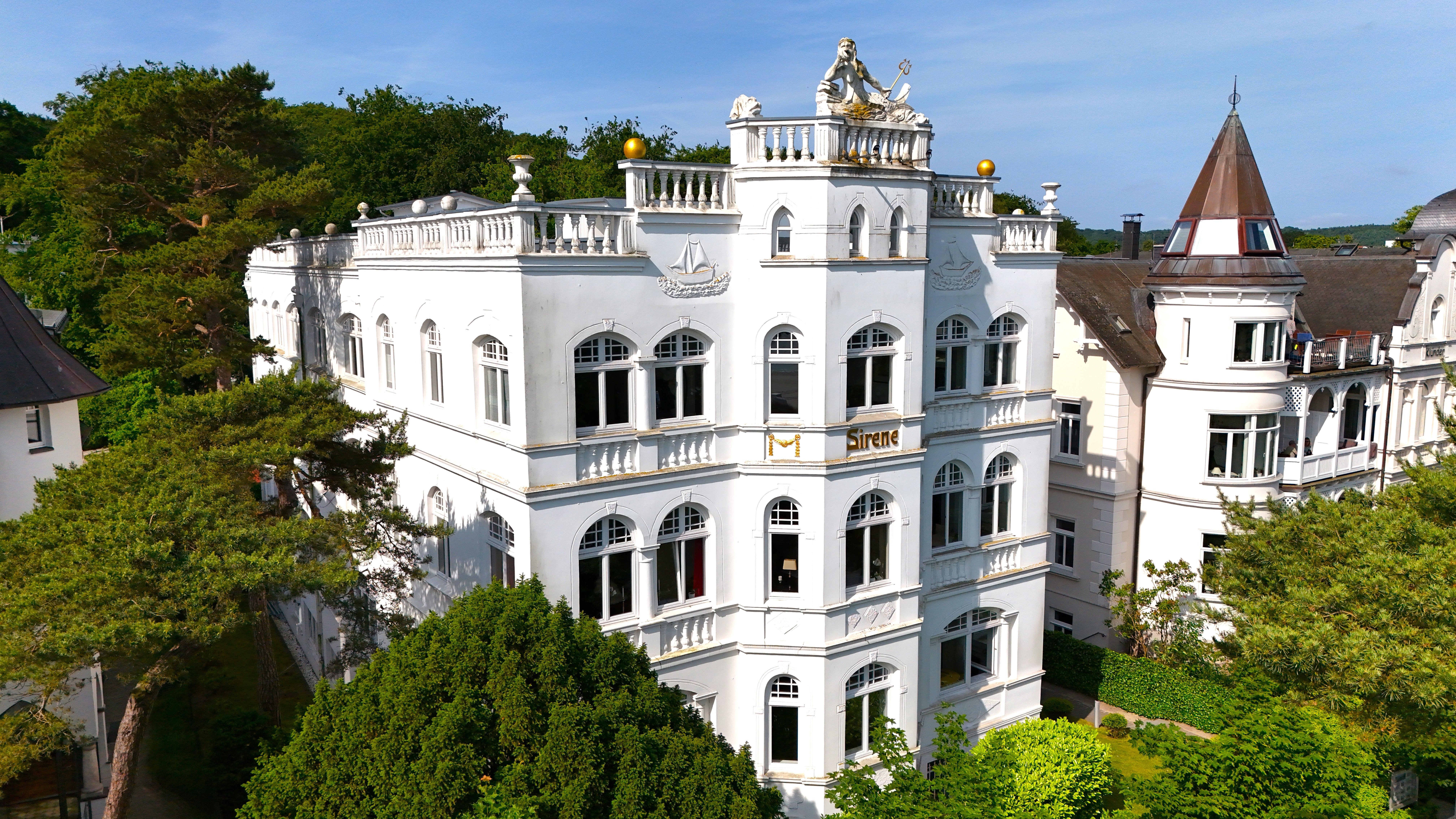 Die Villa Sirene ein eindrucksvolles Zeugnis der Bäderarchitektur direkt an der Strandpromenade von Binz. Dieses liebevoll restaurierte Haus vereint historischen Charme mit dezentem, modernem Komfort. Die klassische Fassade spiegelt die Eleganz vergangener Zeiten wider innen überzeugt das Haus durch gepflegte Gemeinschaftsbereiche, moderne Ausstattung und viel Liebe zum Detail.