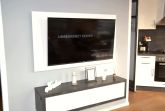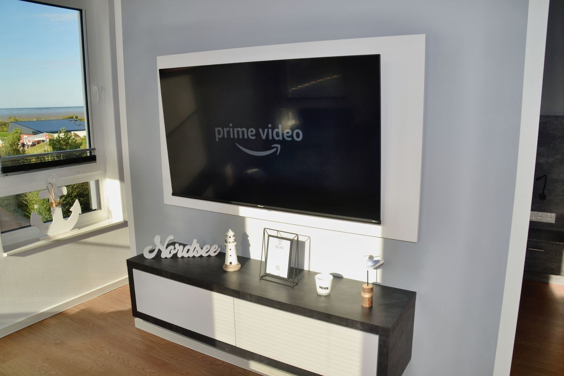 Das geschmackvoll eingerichtete Schlafzimmer ist mit einem komfortablen Doppelbett und einem Smart-TV ausgestattet und verspricht ruhige Nächte. Die elektronischen Außenrollos sorgen für Privatsphäre und eine angenehme Dunkelheit zum Schlafen. Das moderne Badezimmer mit Dusche rundet das Angebot ab und bietet zusätzlichen Komfort.