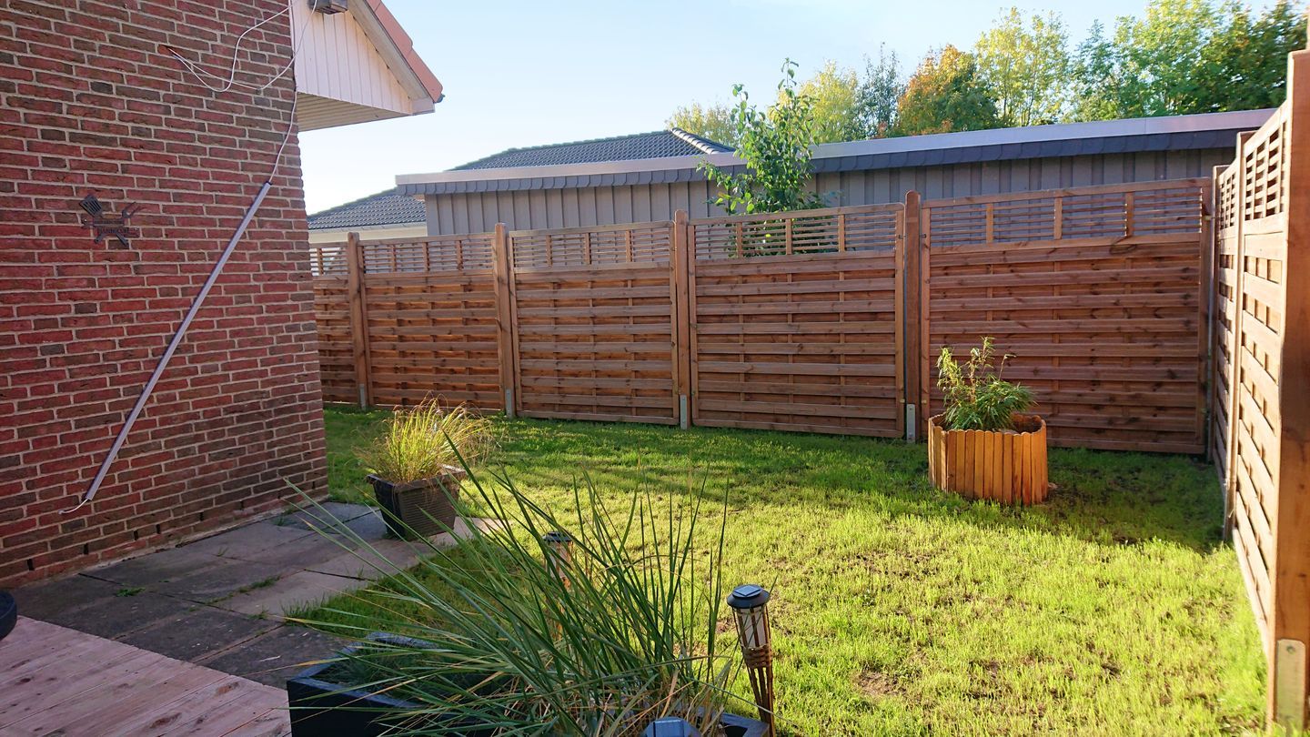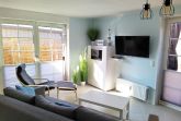 Ein besonderes Highlight ist der Zugang vom Wohnzimmer zur eigenen Terrasse mit Garten, wo Sie Gartenmöbel und ein Strandkorb erwarten – perfekt für sonnige Frühstücke, ruhige Nachmittage oder laue Abende im Freien.