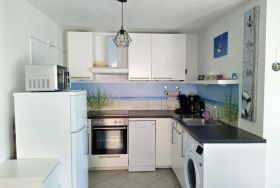 Freuen Sie sich auf ein gemütliches Wohnzimmer mit offener Küche und Essbereich, in dem Sie gemeinsam kochen, essen und entspannen können. Zwei liebevoll eingerichtete Schlafzimmer sorgen für erholsamen Schlaf – eines mit Doppelbett, das andere mit einem Etagenbett, ideal für Kinder.