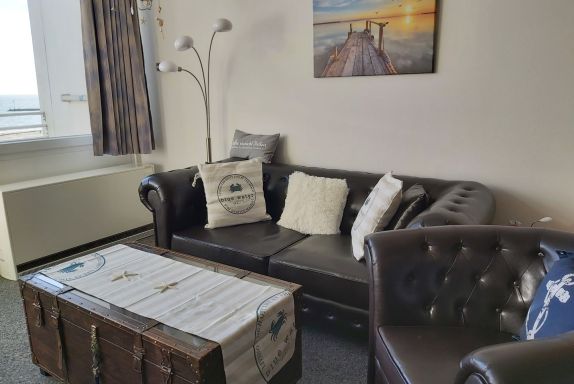 Ein besonderes Highlight ist der Balkon mit dem unvergleichlichen Ausblick über den Südstrand – hier genießen Sie Ihre Auszeit mit Sonne, Meeresrauschen und Fernblick.
