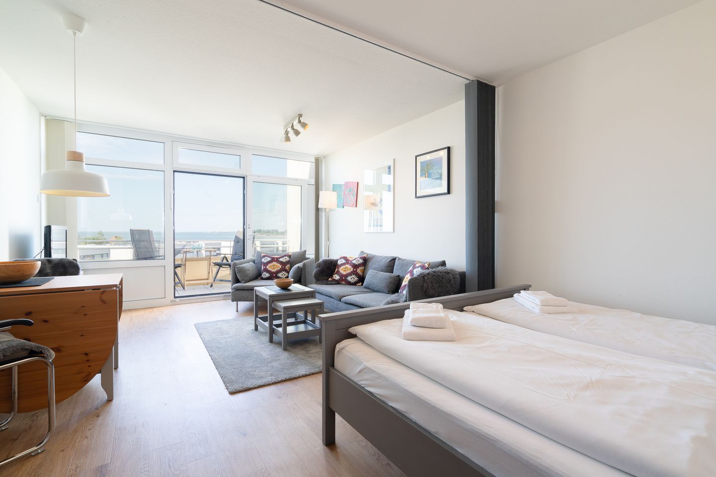 Sie suchen eine gemütliche Auszeit am Meer? Dann ist diese stilvolle 1-Zimmer-Ferienwohnung genau das Richtige für Sie! Im 4. Obergeschoss direkt am kilometerlangen Südstrand gelegen, erwartet Sie ein traumhafter Blick über die Ostsee, den Sie jeden Tag aufs Neue genießen können.