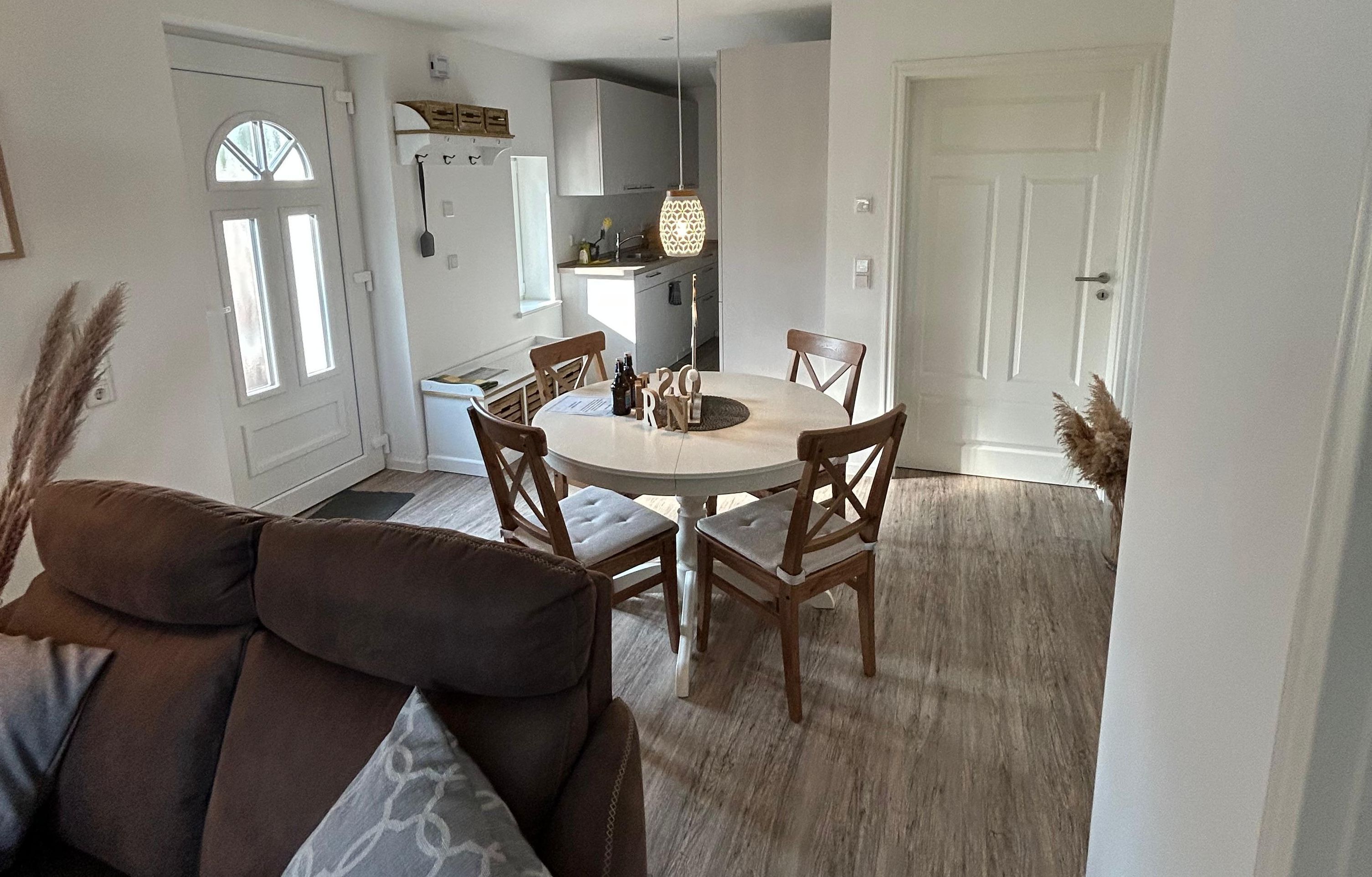 Die ebenerdige Ferienwohnung Steuerbord auf dem Johanneshof für bis zu 4 Personen (plus 1 Kleinkind) ist im behaglichen Landhausstil gestaltet und bietet den Komfort einer Fußbodenheizung. Die Wohnung ist nach den neuesten Energiestandards modernisiert: