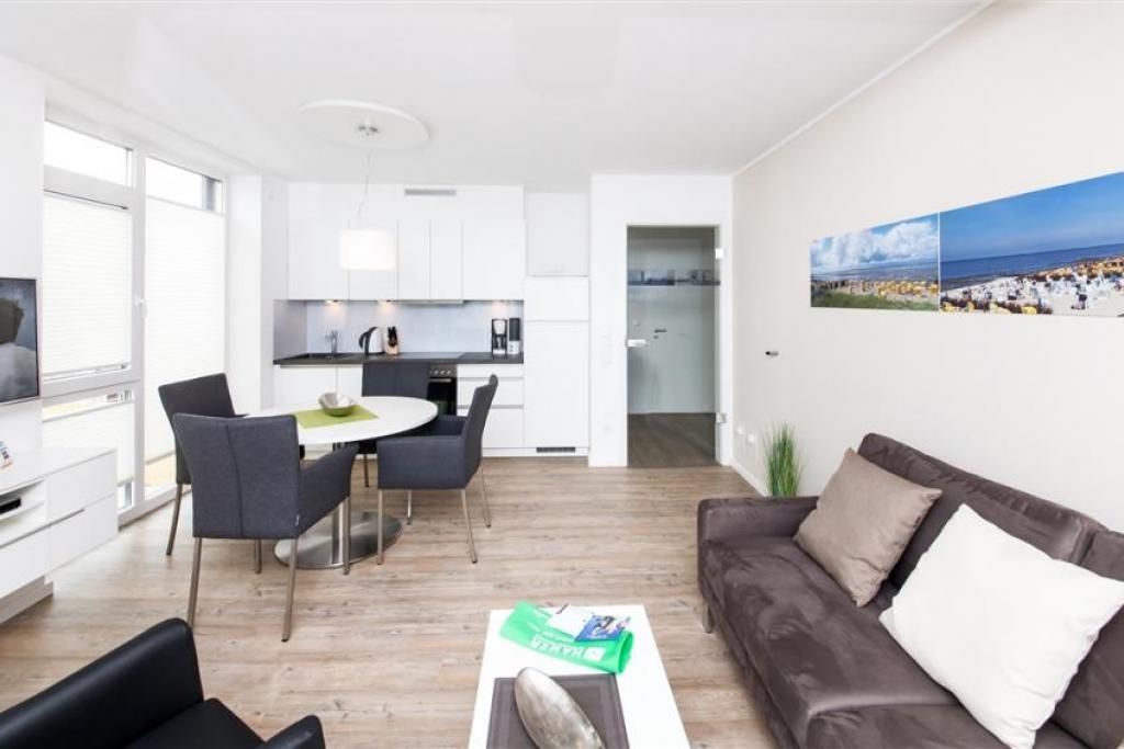 Moderne 2-Raum-Wohnung -1.Etage- im Herzen Duhnens gelegen. Die vollständige Küchenzeile mit Mikro, Back., Geschirrsp. etc. garantiert höchsten Komfort. Wohnzimmer mit schönem Balkon, 3D-SAT-TV, Blue-Ray-DVD, Kompaktanlage, kostenloses W-Lan-Internet, separates Schlafzimmer mit Außenjalousien und hochwertigem Doppelbett, allergikerfreundlich, ebenerdige Dusche/WC, Föhn, reservierter Außenstellplatz hinter dem Haus, keine Haustiere und natürlich Nichtraucher.