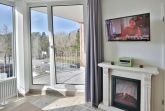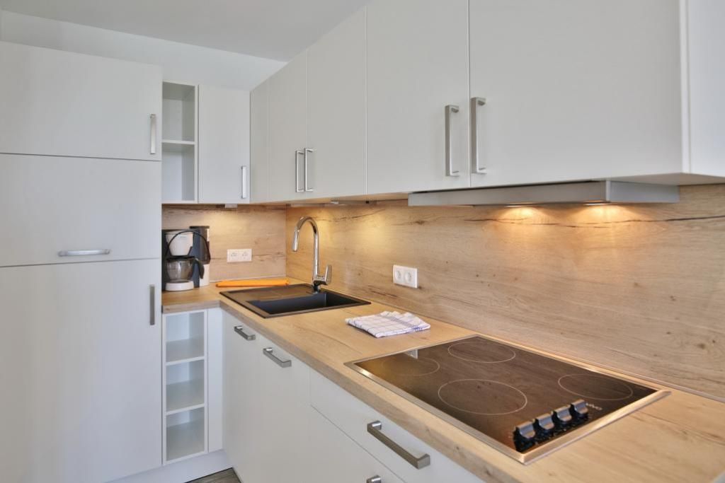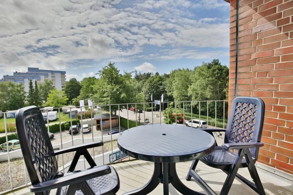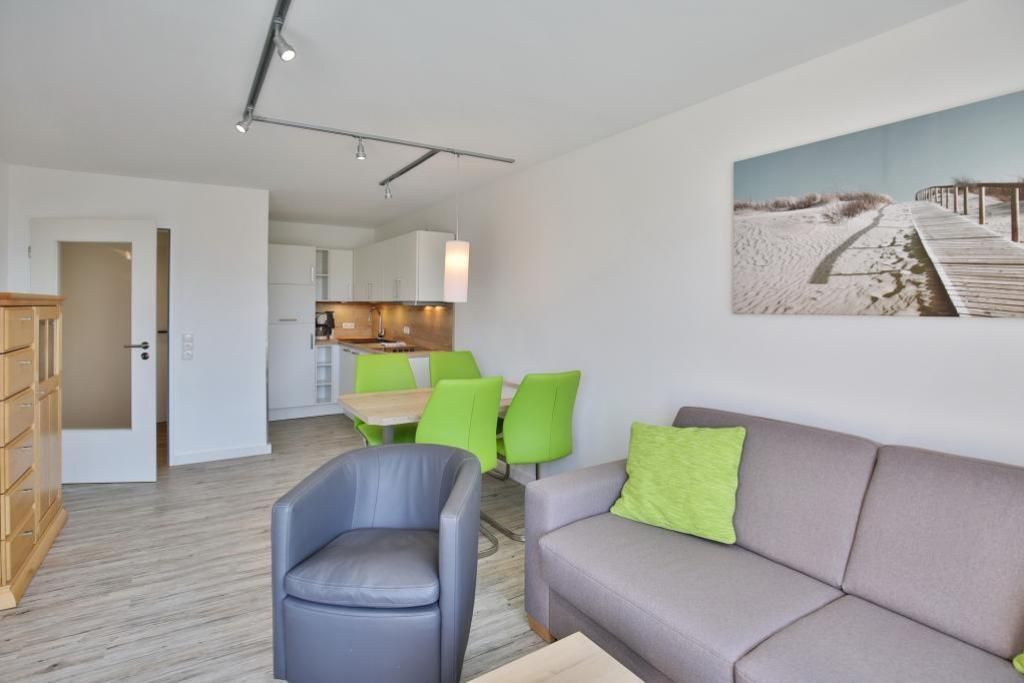 Schöne 2-Zimmer-Ferienwohnung über ca. 40m², 3. Etage mit Personenaufzug, vollständig ausgestattet bis max. 3 Pers., 1 Schlafzimmer mit 2 Einzelbetten, 1 kombiniertes Wohn/Schlafzimmer mit hochwertigem Schlafsofa, Elektrokamin, Sat-TV, kostenloses W-Lan, Radio mit CD, moderne Küchenzeile mit Geschirrspüler u. Mikrowelle, neues Du/WC, Föhn, großzügiger Sonnenbalkon zur Westseite (mit Balkonmöbeln & Sonnenschirm, saisonabhängig), extragroßer Pkw-Stellplatz in der Tiefgarage, keine Haustiere und natürlich Nichtraucher.