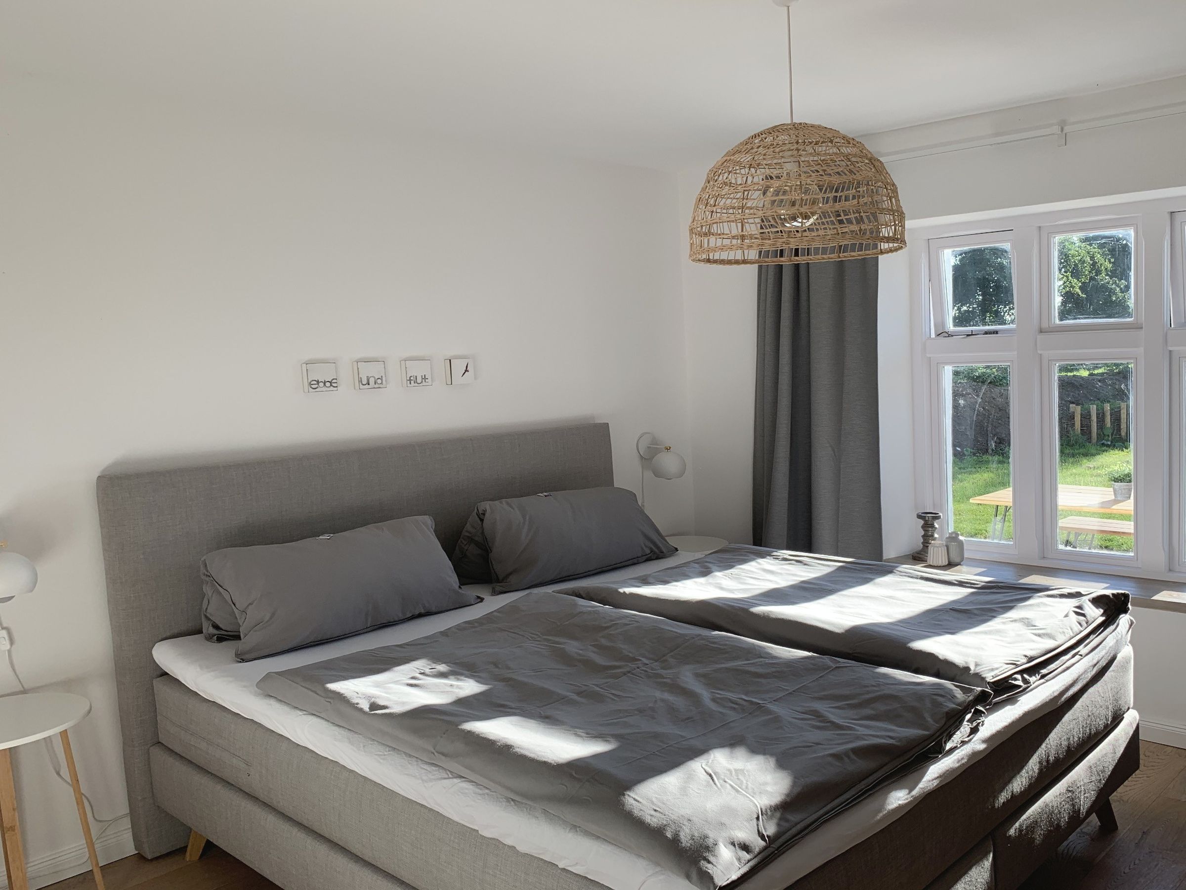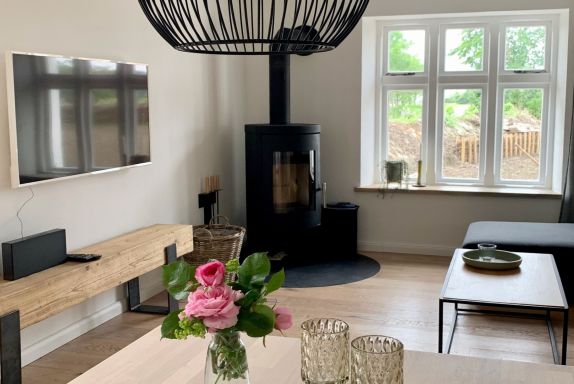 Dieses Haus liegt etwa 50m vom Hof entfernt. Wir haben es 2020 saniert und können euch damit eine exklusive Wohneinheit anbieten. Das im nordischen Stil eingerichtete Haus hat eine ca. 100 qm große Grundfläche auf zwei Etagen. Drei Schlafzimmer ermöglichen den Platz für eine Großfamilie von bis zu ca. 6-7 Personen. Das Haus bietet eine große voll ausgestattete Küche und ein großer Wohnessraum mit Kamin lässt alle zusammenkommen. Zudem bietet das Haus einen großen Garten mit Blick auf die umliegenden Felder. Zwei Terrassen und eine eigene Außensauna stehen zur Verfügung.