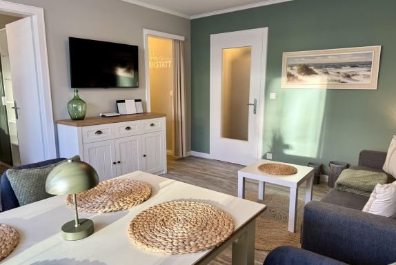 Das ca. 36 m² große App. Dünennest bietet Platz für 2 bis 4 Personen und liegt in idealer Lage ‒ in einer ruhigen Straße parallel zur belebten Friedrichstraße und nur einen Münzwurf vom Strand entfernt. Die Unterkunft befindet sich in einem gepflegten Haus mit Fahrstuhl und ist auch fußläufig vom Bahnhof bequem erreichbar. Das App. verfügt über ein separates Schlafzimmer mit einem Doppelbett (160x200 cm) sowie einer Schlafcouch (140 x 200 cm) im Wohnbereich, die sich im Handumdrehen in eine zusätzliche Schlafgelegenheit verwandeln lässt. Der Wohn- und Essbereich ist modern eingerichtet und bietet Zugang zum Balkon, auf dem Sie gemütlich frühstücken oder den Abend ausklingen lassen können. Für Ihre Selbstverpflegung steht Ihnen eine kleine Küche zur Verfügung, ausgestattet mit allen wichtigen Utensilien ‒ bitte bedachten Sie, dass kein Backofen vorhanden ist. Ein Tageslichtduschbad rundet das Angebot ab. Nutzen Sie gerne das kostenfreie WLAN. Öffentliche, kostenpflichtige Parkmöglichkeiten befinden sich in umliegender Nähe. Haustiere sind herzlich willkommen.