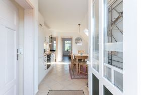 Die FeWo ist online buchbar und befindet sich als Einliegerwohnung im Einfamilienhaus mit separatem Eingang. Ein kostenfreier Parkplatz direkt an der Wohnung steht zur Verfügung. Das Grundstück ist komplett eingefriedet. Reinigungsservice während des Aufenthalts ist auf Anfrage möglich. Informationen über die Region und zu Veranstaltungen liegen aus.