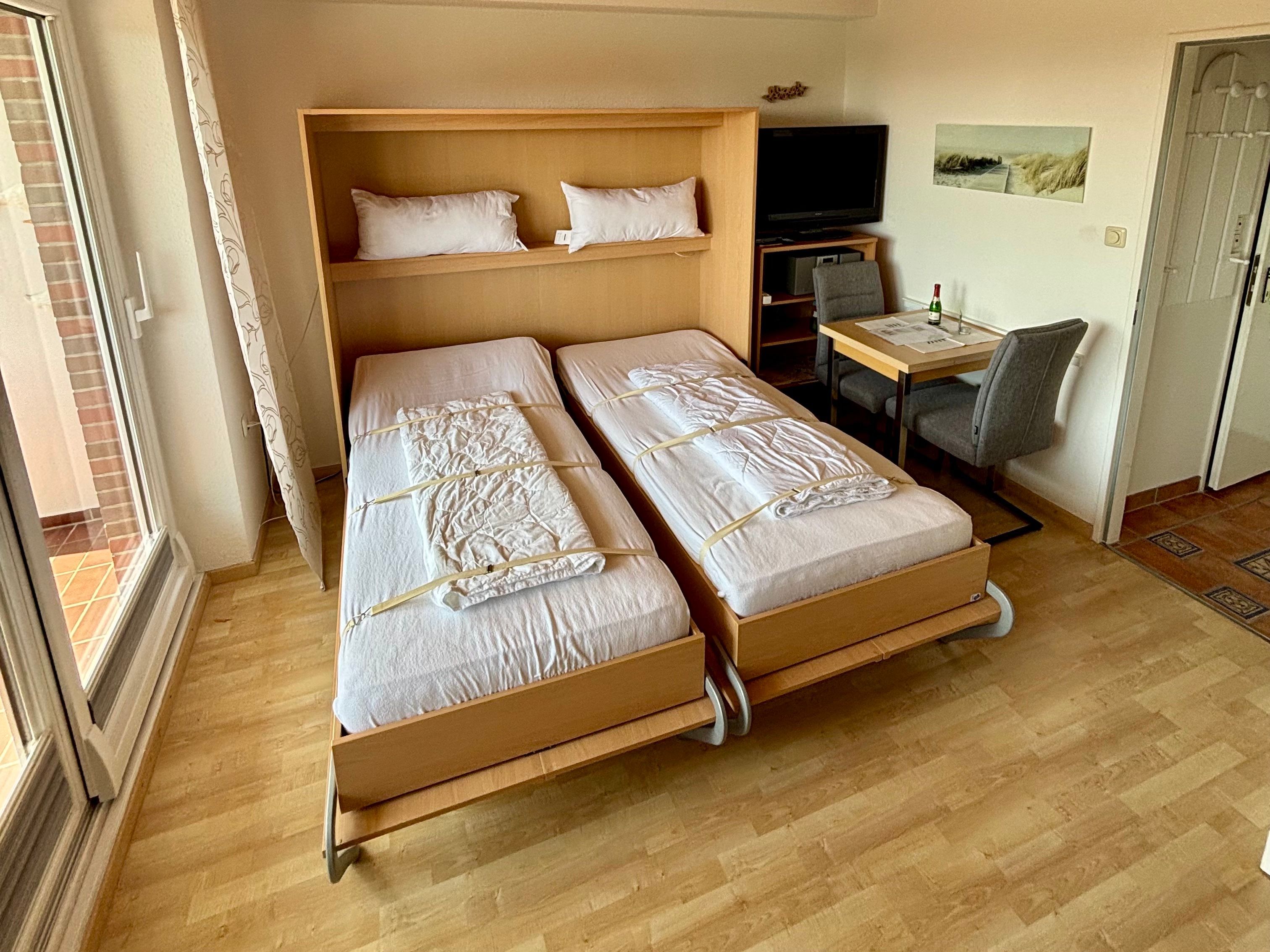 • Hochwertiges Schrankbett mit getrennten Matratzen