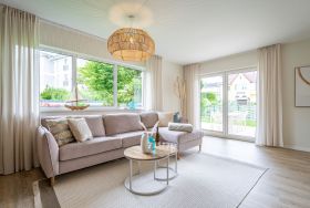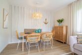 Ankommen, durchatmen, wohlfühlen: Im stilvollen Ferienhaus Strandnest in Ahlbeck genießen Sie entspannte Urlaubstage in bester Lage nur 190 Meter vom Strand entfernt und doch herrlich ruhig auf einem eingezäunten Grundstück mit 502 m². Das charmante Haus im Bungalowstil bietet auf 82 m² Platz für bis zu 4 Personen ideal für Paare oder Familien, die das Besondere suchen. Der helle, offene Wohnbereich ist das Herzstück des Hauses: gemütliche Sofaecke mit großem 55-Zoll-Flat-TV, eine moderne Bluetooth-Box für Ihre Lieblingsmusik und ein Essplatz für vier Personen laden zum Verweilen ein. Direkt daneben liegt die komfortabel ausgestattete Küche mit allem, was Sie für kulinarische Ausflüge brauchen: Backofen, Cerankochfeld, Mikrowelle sowie ein Kühlschrank mit Gefrierfach praktisch und stilvoll zugleich. Die beiden Schlafzimmer sind mit hochwertigen Boxspringbetten (1,80 x 2,00 m), Flat-TV und viel Stauraum liebevoll eingerichtet für erholsame Nächte nach einem Tag am Meer. Im modernen Badezimmer erwartet Sie ein weiteres Highlight: eine Finnische Sauna, perfekt für wohlige Entspannung zu jeder Jahreszeit. Ein zusätzliches Gäste-WC mit Waschtrockner rundet den Komfort ab. Auf der sonnigen Süd-Terrasse (ca. 18 m²) können Sie bei frischer Meeresluft entspannen oder gemeinsam essen Gartenmöbel sind selbstverständlich vorhanden. Zwei Parkplätze auf dem Grundstück (Einfahrt eng), davon einer mit E-Ladesäule (kostenpflichtig), machen die Anreise unkompliziert. Und das Beste: WLAN nutzen Sie natürlich kostenlos. In den Sommermonaten steht Ihnen zusätzlich ein eigener Strandkorb am Strand zur Verfügung für entspannte Stunden direkt am Meer. Strandnest ein Ort zum Wiederkommen. Erleben Sie die perfekte Kombination aus Strandnähe, Komfort und nordischer Gelassenheit.