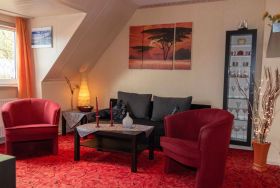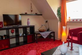 Gemütliche 2 Zimmer Ferienwohnung unter dem Dach mit Schlafzimmer, Wohnzimmer, Küche  und Bad.