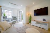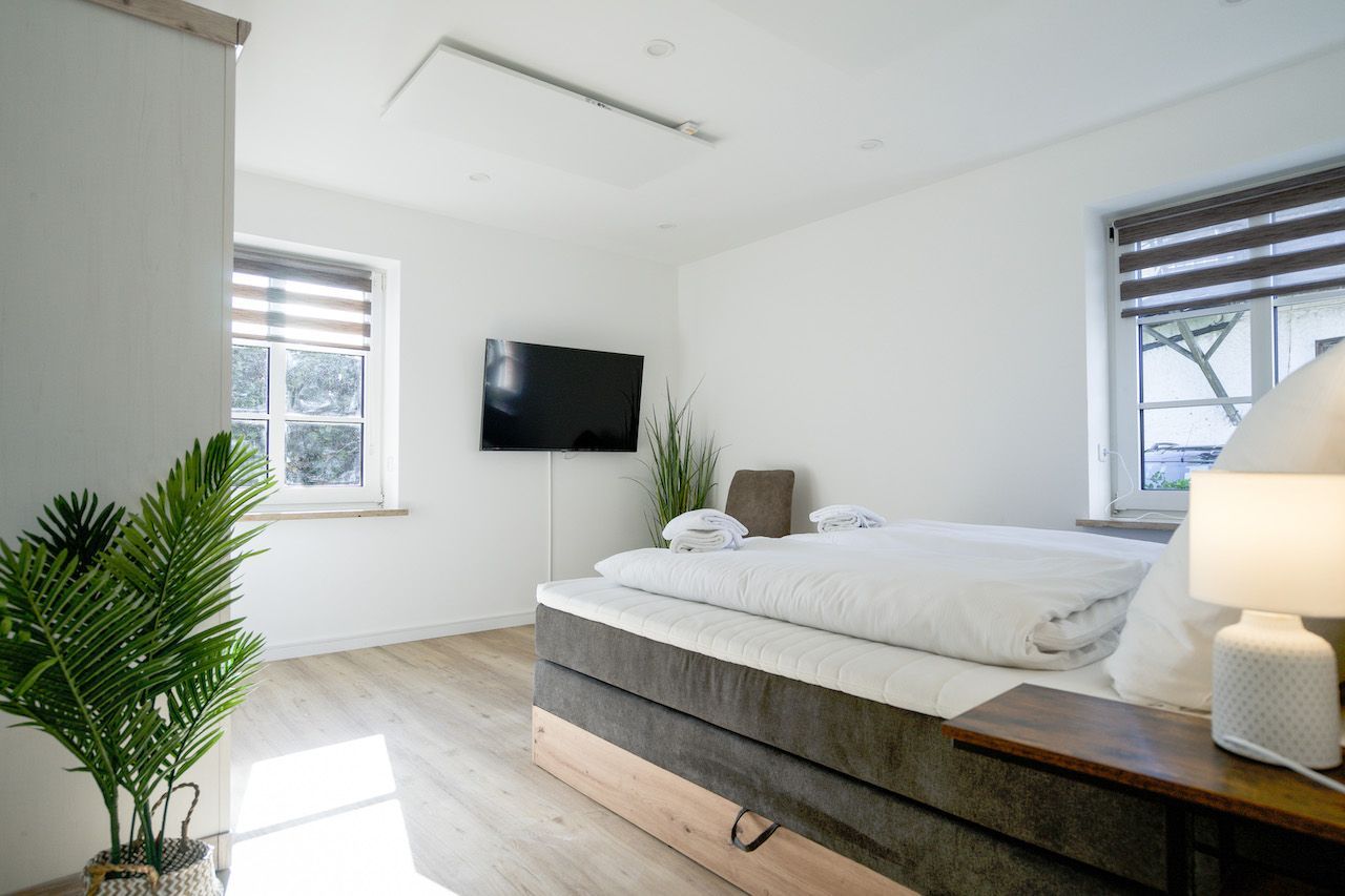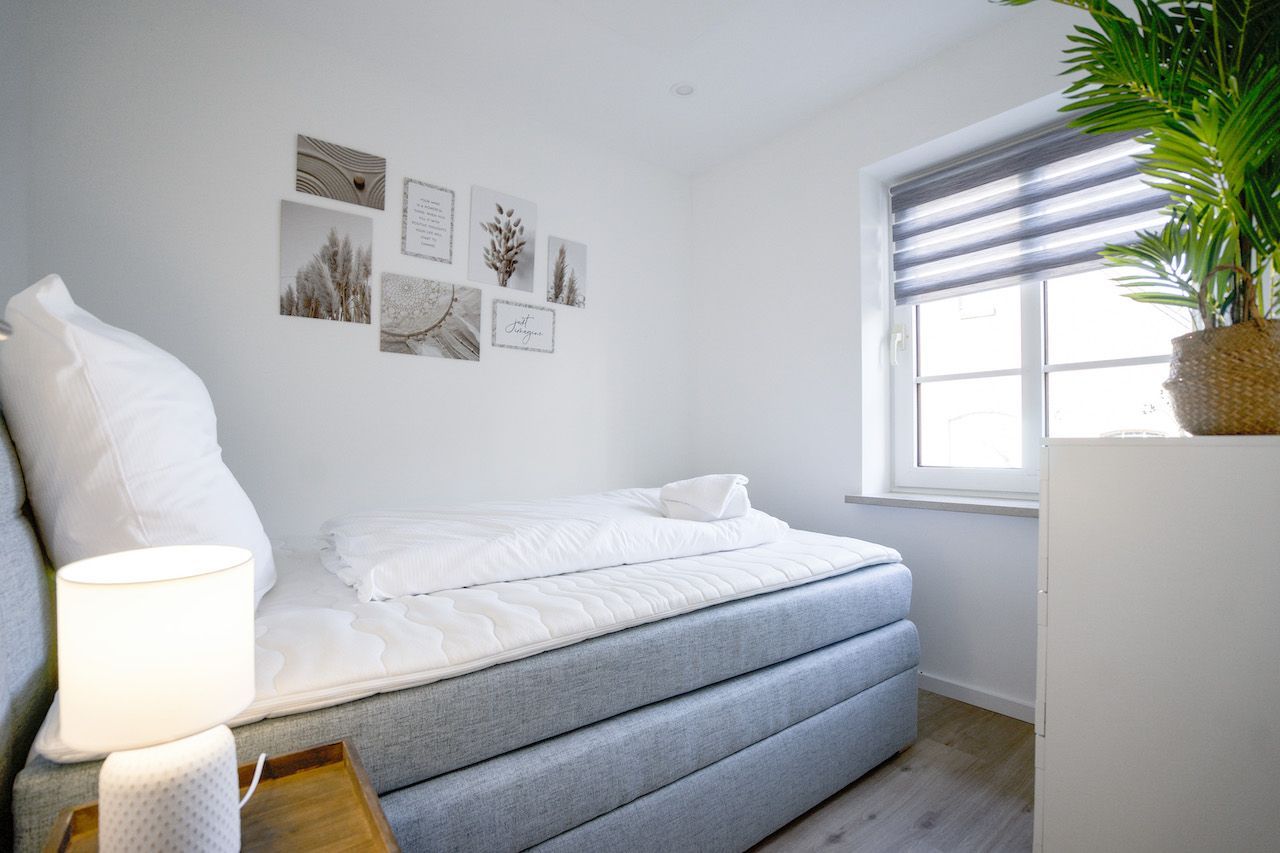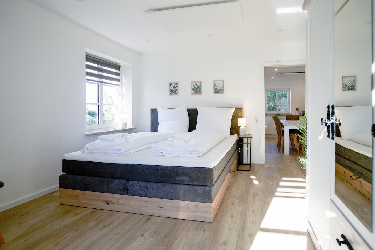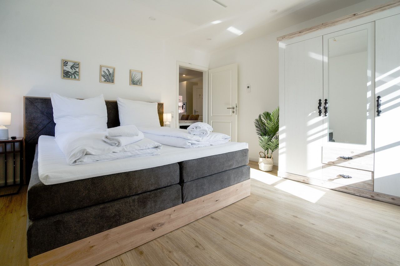 Das helle und geschmackvoll eingerichtete Appartement bietet Platz für bis zu sechs Personen. Die zwei Schlafzimmer (1 Doppelbett 180 x 200 und 1 franz. Doppelbett 160 x 200) sind jeweils mit einem Boxspringbett ausgestattet und verfügen über einen Smart-TV.